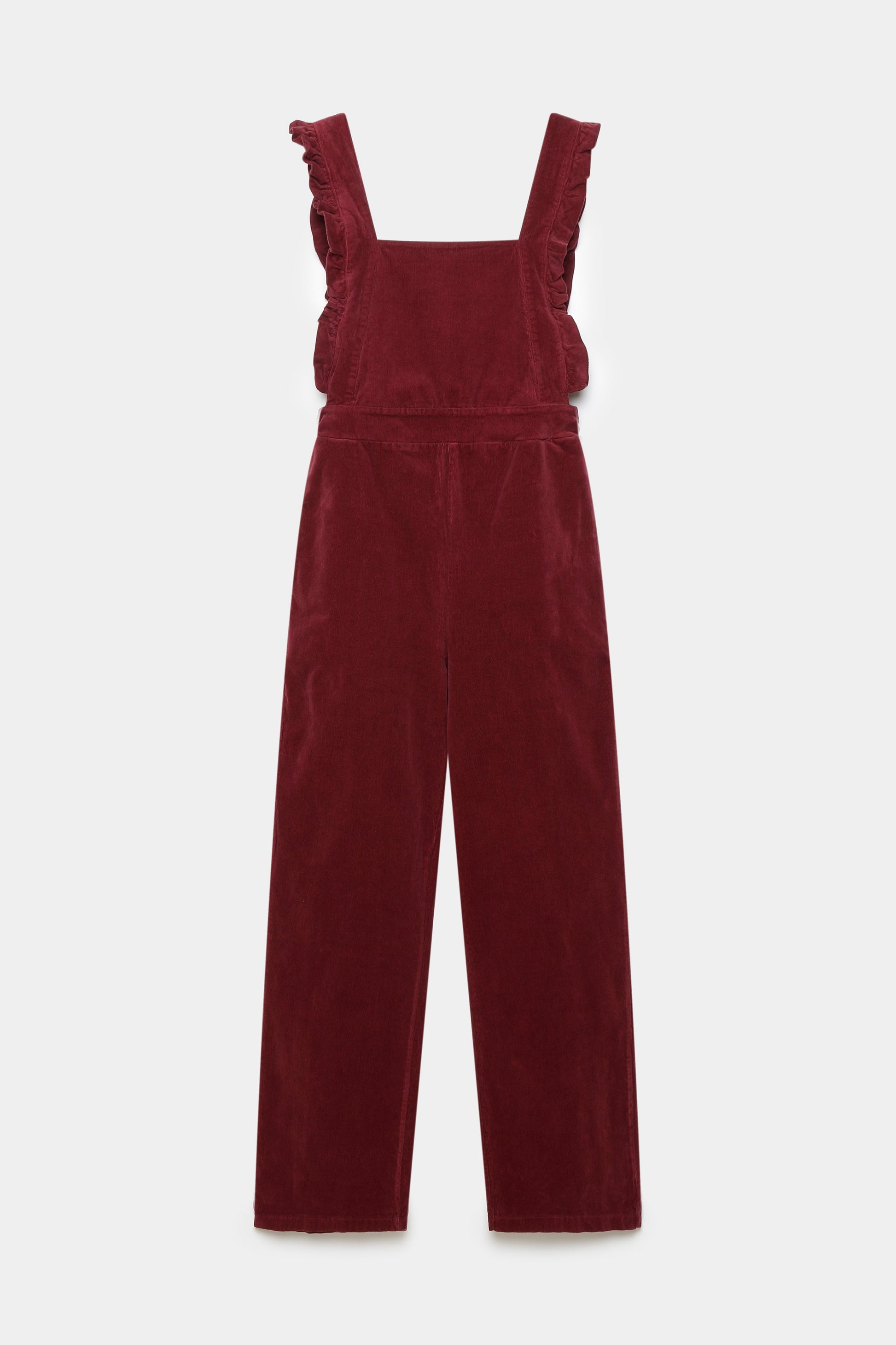 Tejido de algodón. Diseño recto. Diseño largo. Escote cuadrado. Tirantes anchos. Panel elástico. Cuatro bolsillos. Detalle de estrellas.