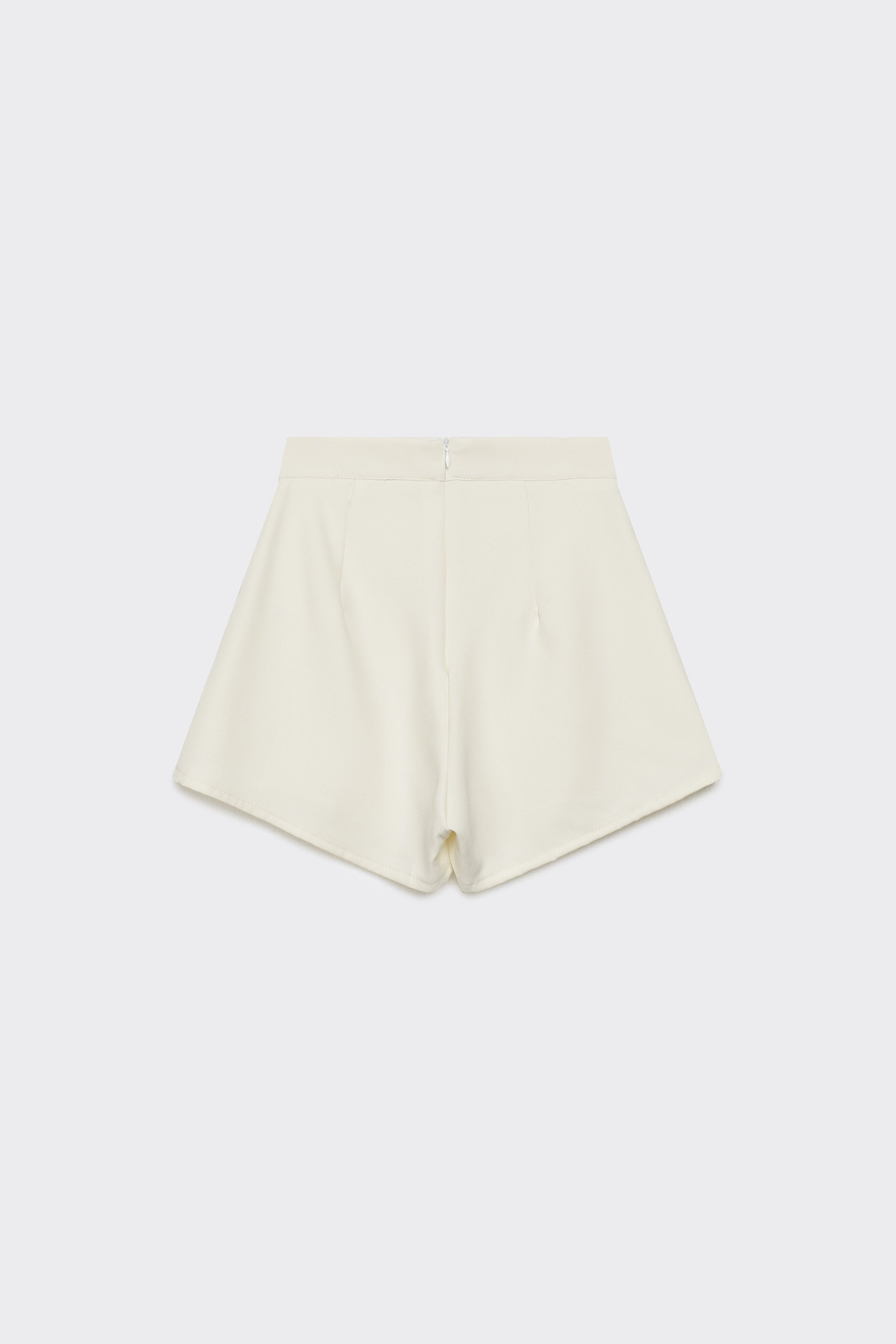 Shorts plisado. Diseño corto. Tiro medio. Cierre oculto de cremallera. Detalle pinzas. Solapas decorativas. Botones decorativos. Talla modelo: S. Altura modelo: 1,66 m.