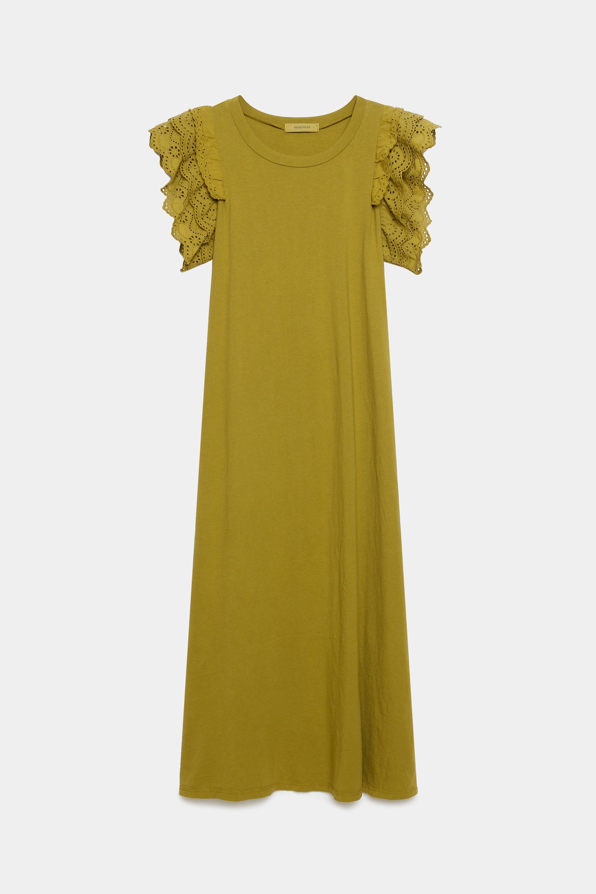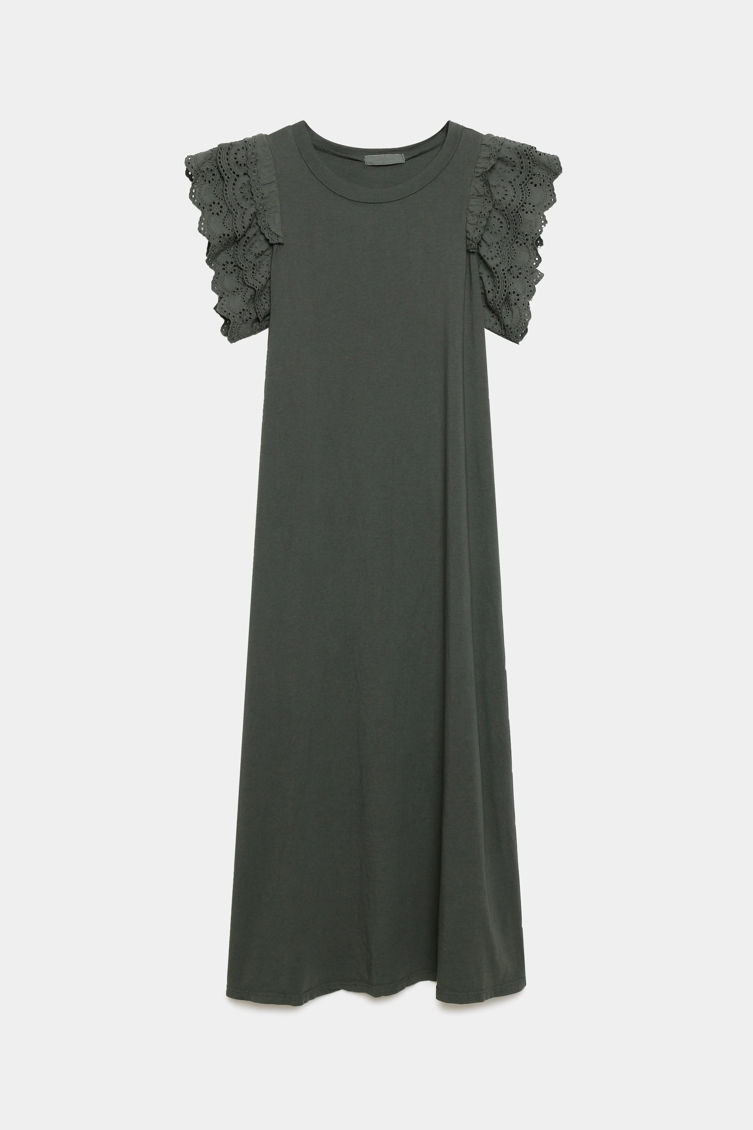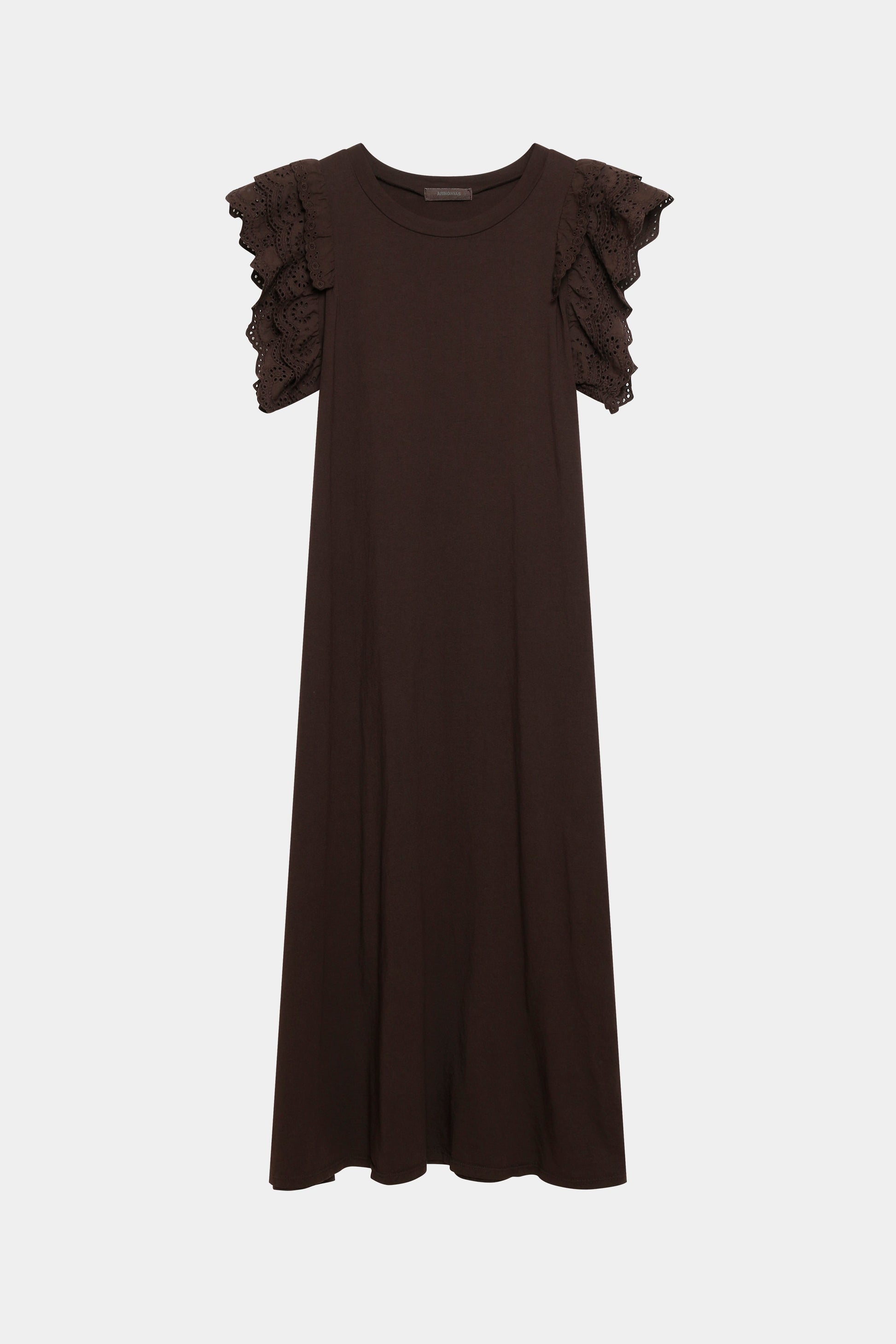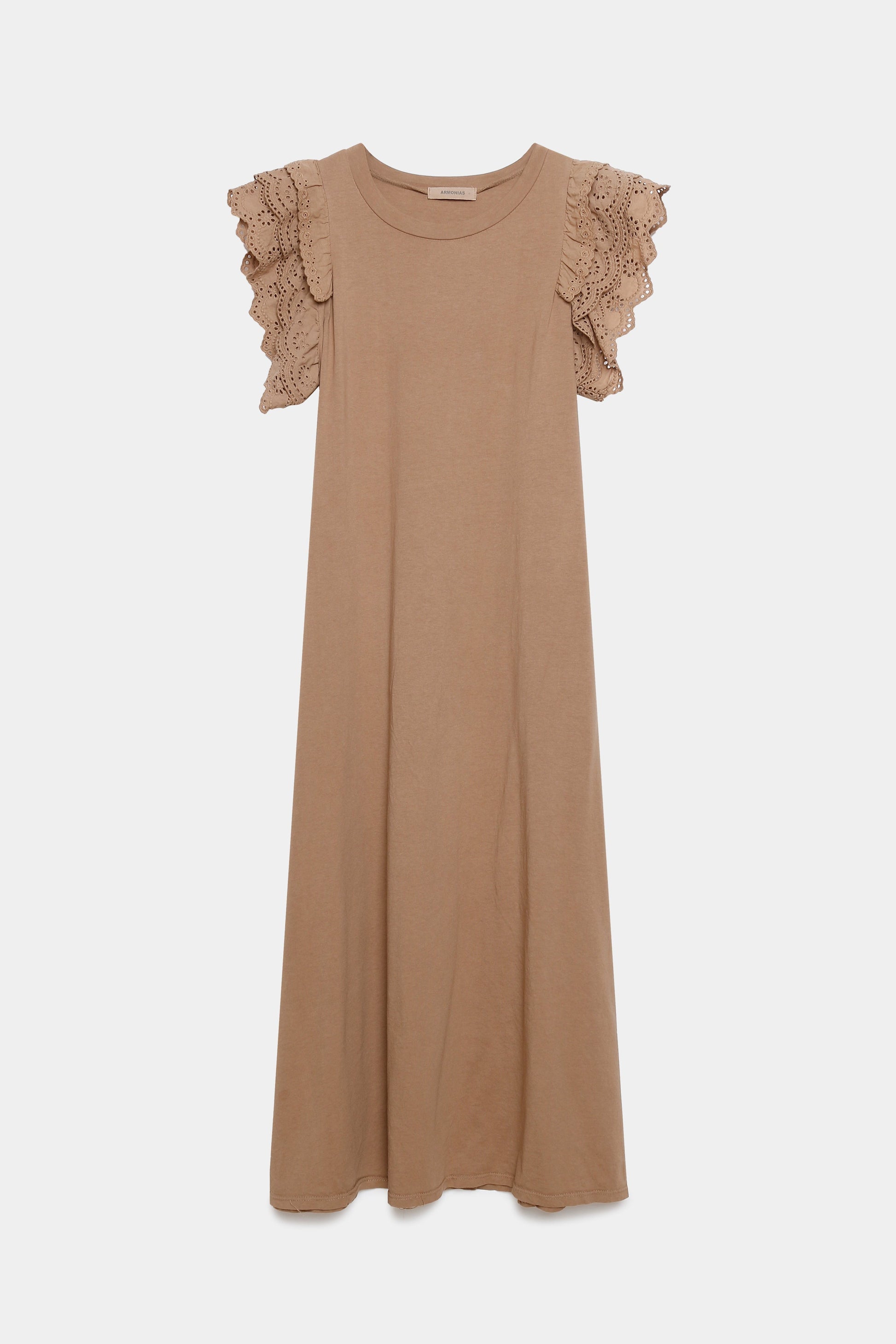 Tejido de algodón. Cuello redondo. Manga sisa. Diseño largo. Lateral derecho abierto.
