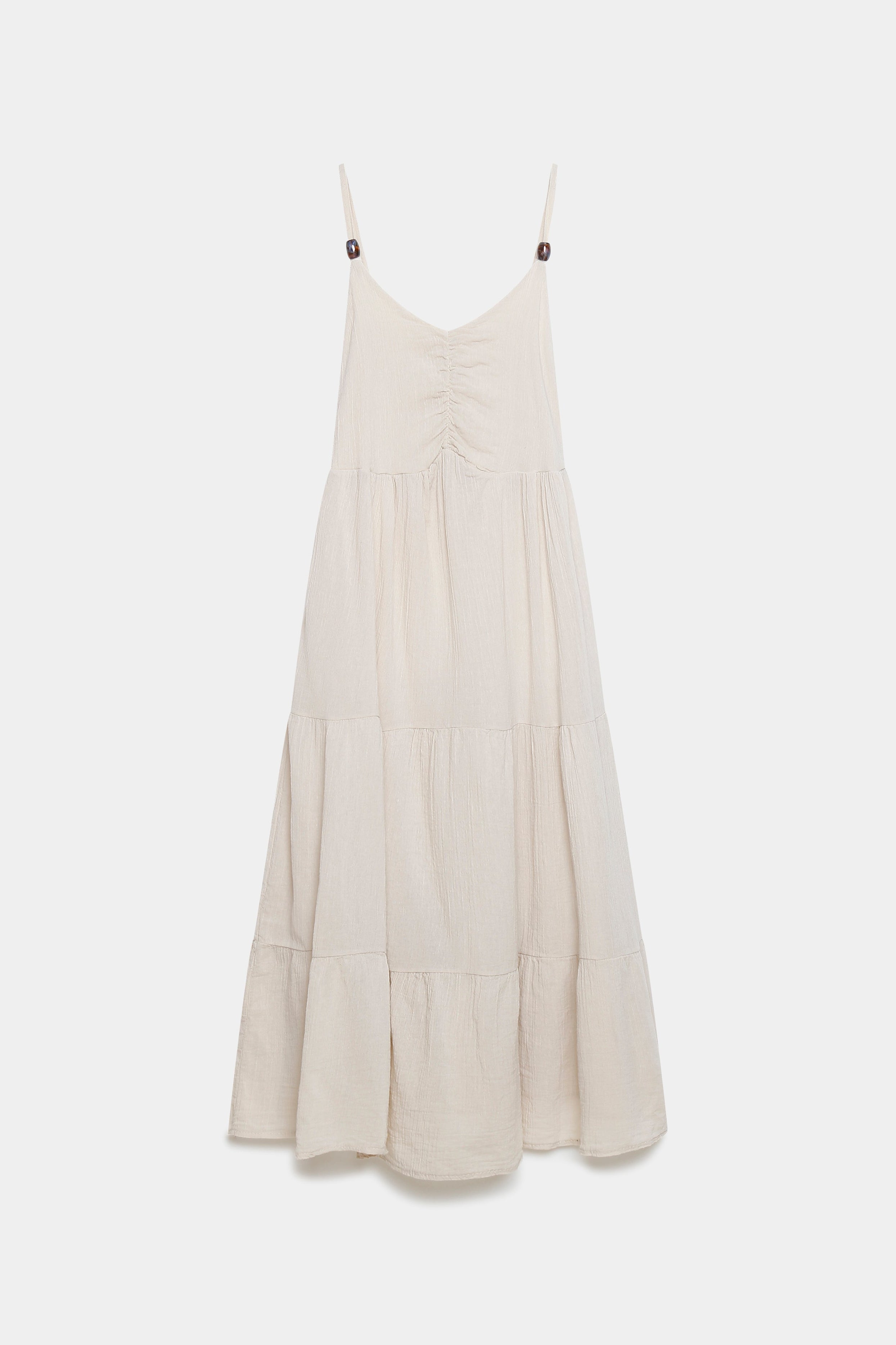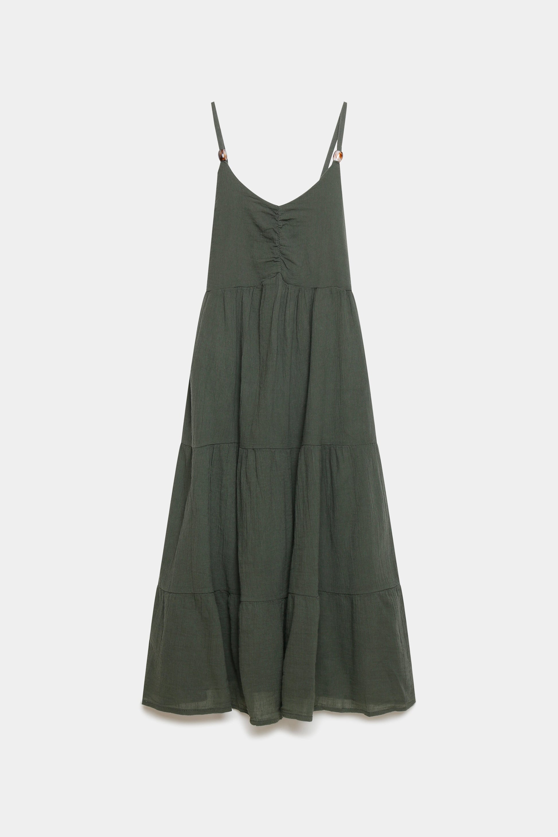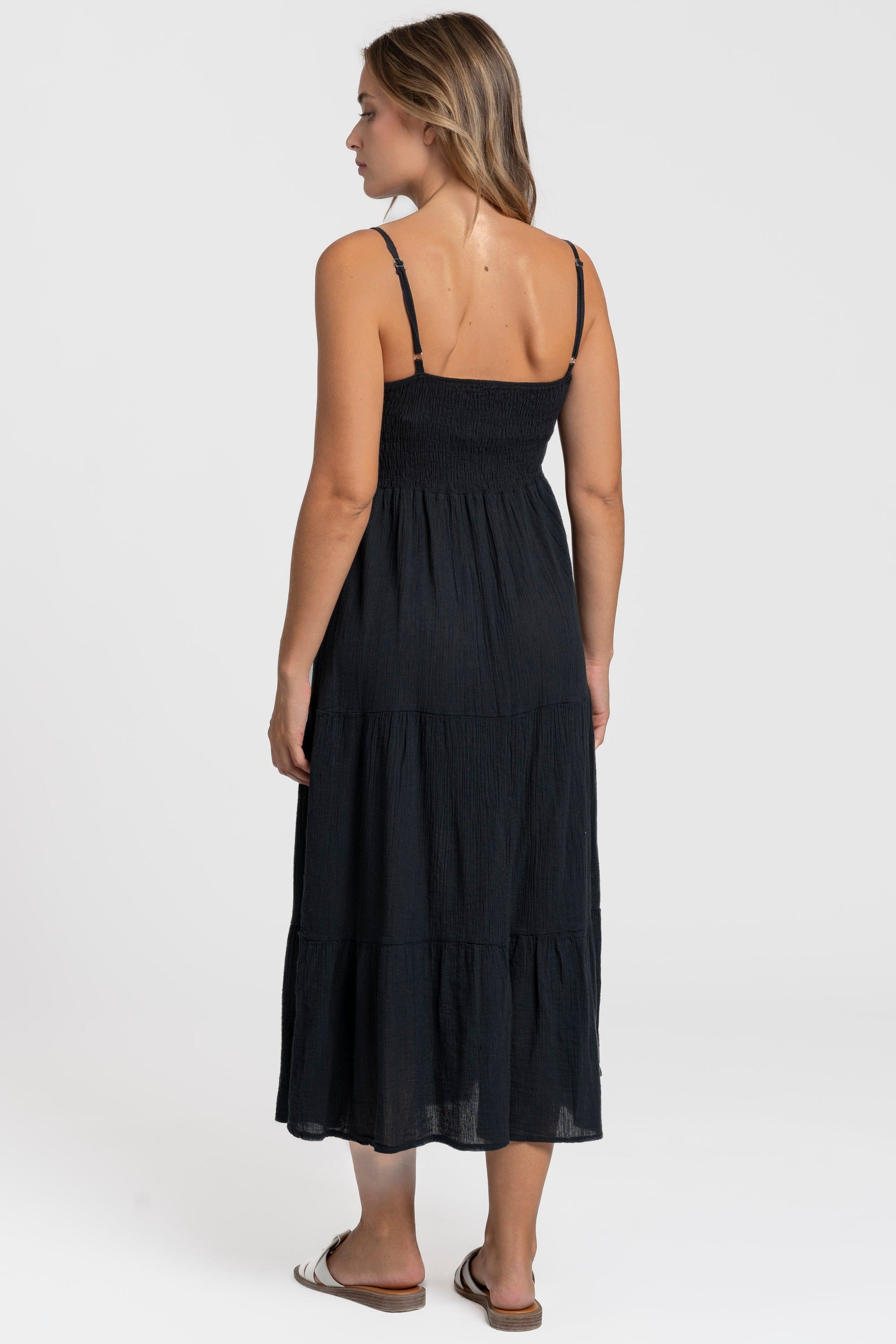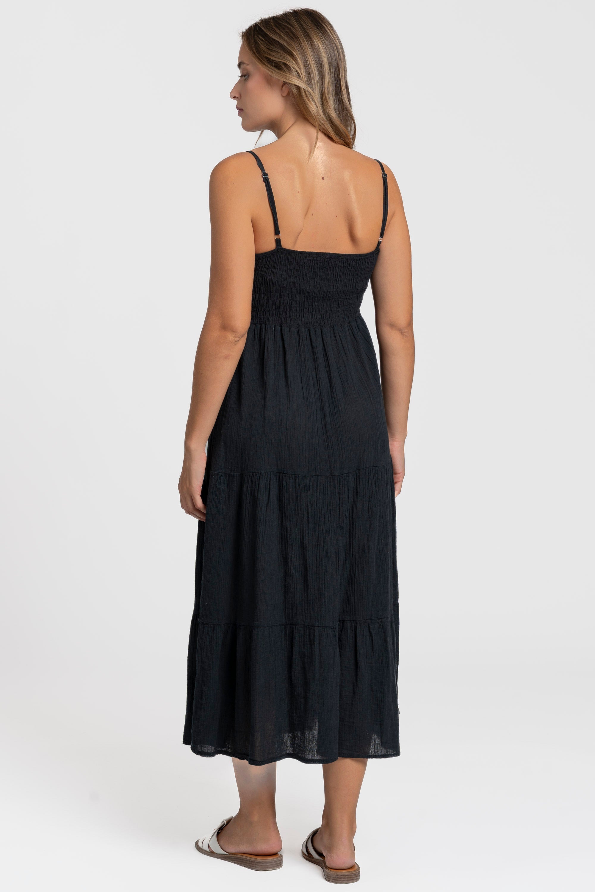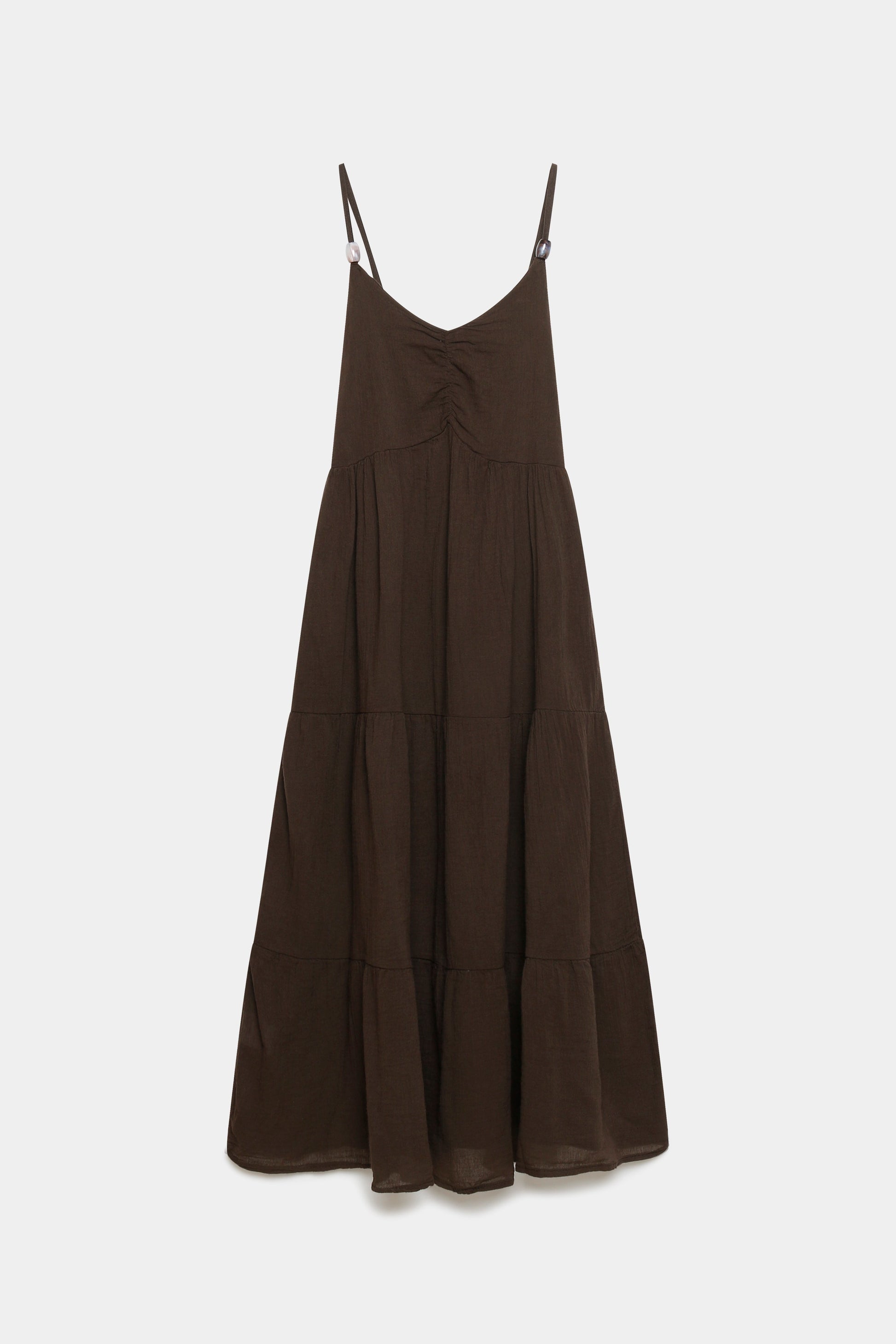 Tejido fluido. Tirantes finos ajustables. Diseño largo.