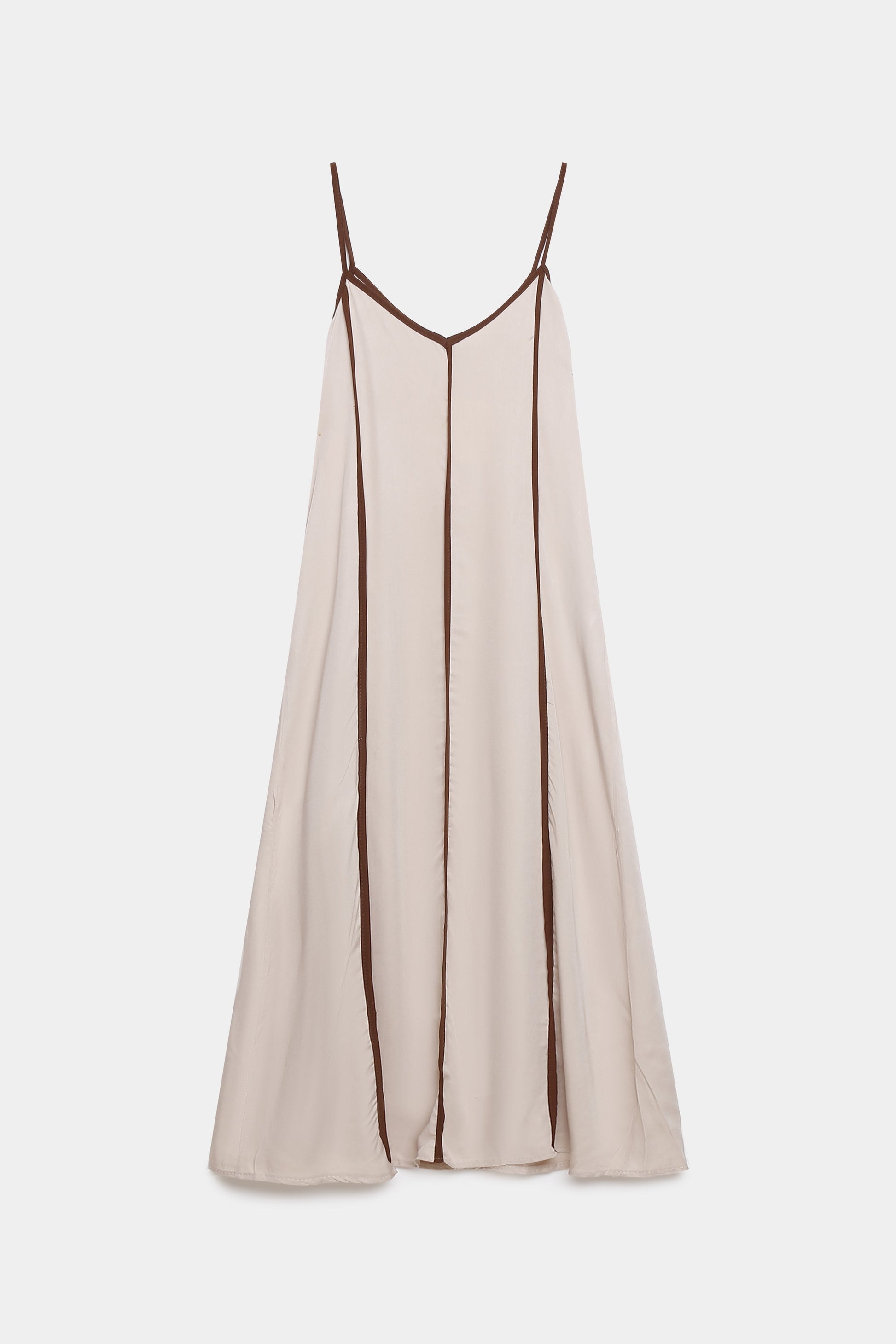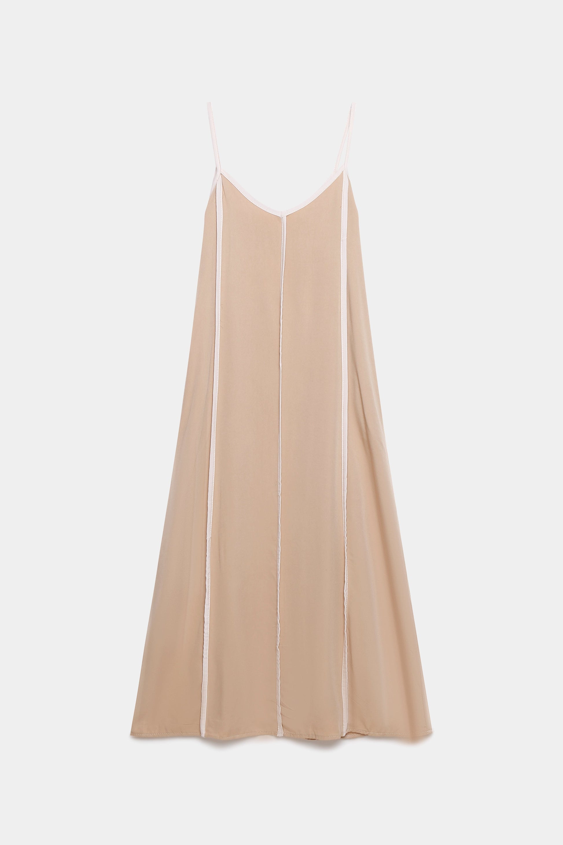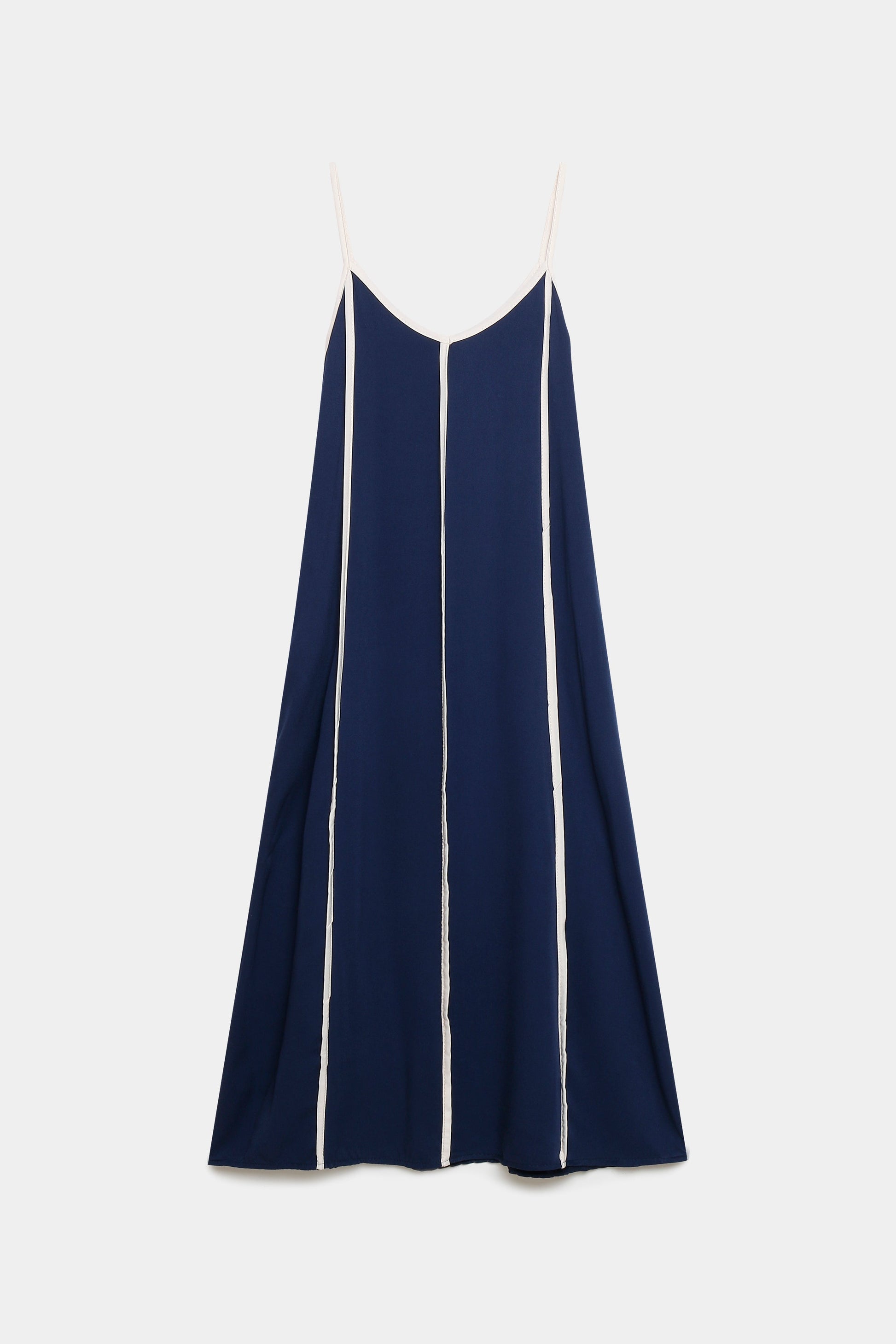 Tejido fluido. Tirantes finos. Detalle rayas. Diseño largo.