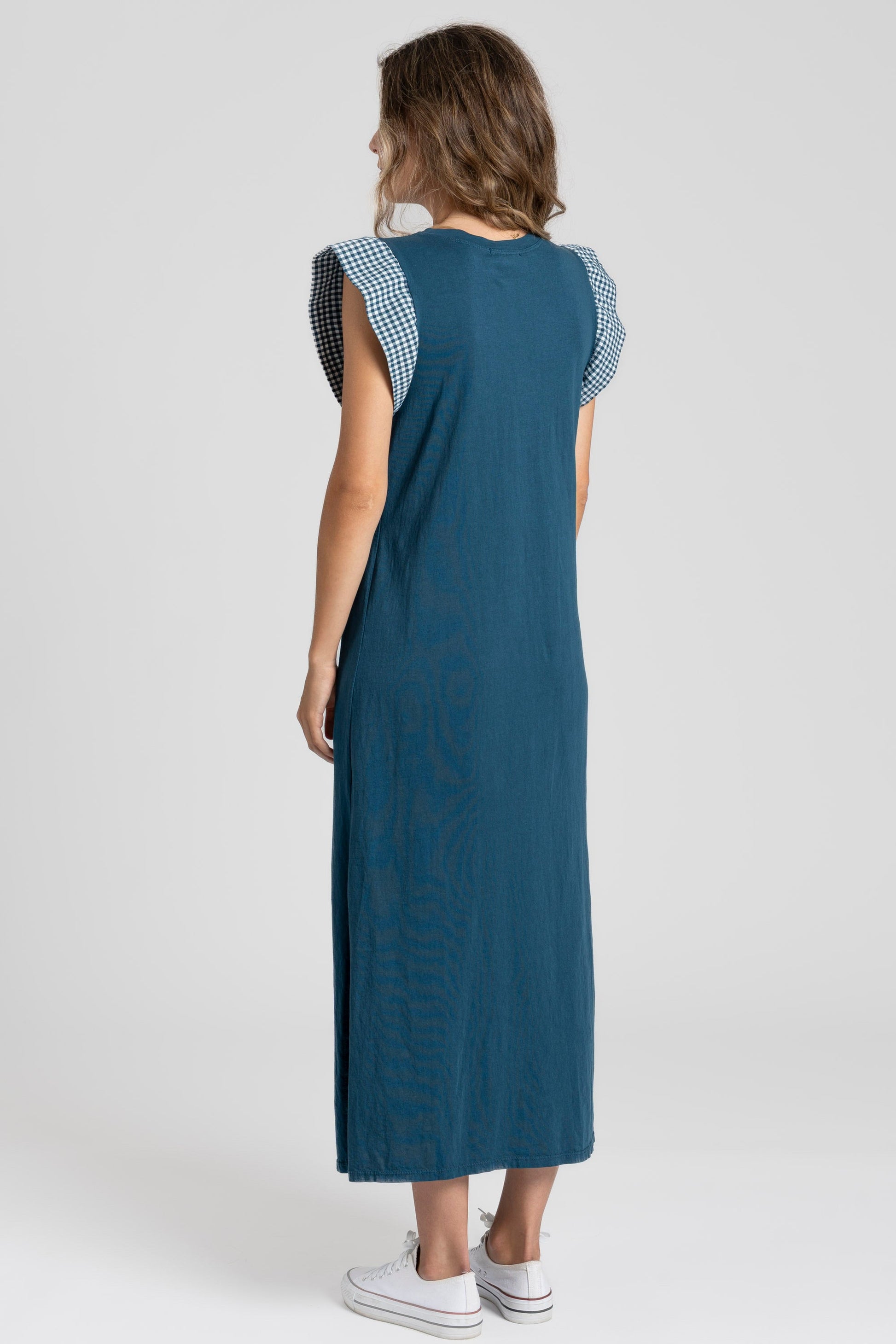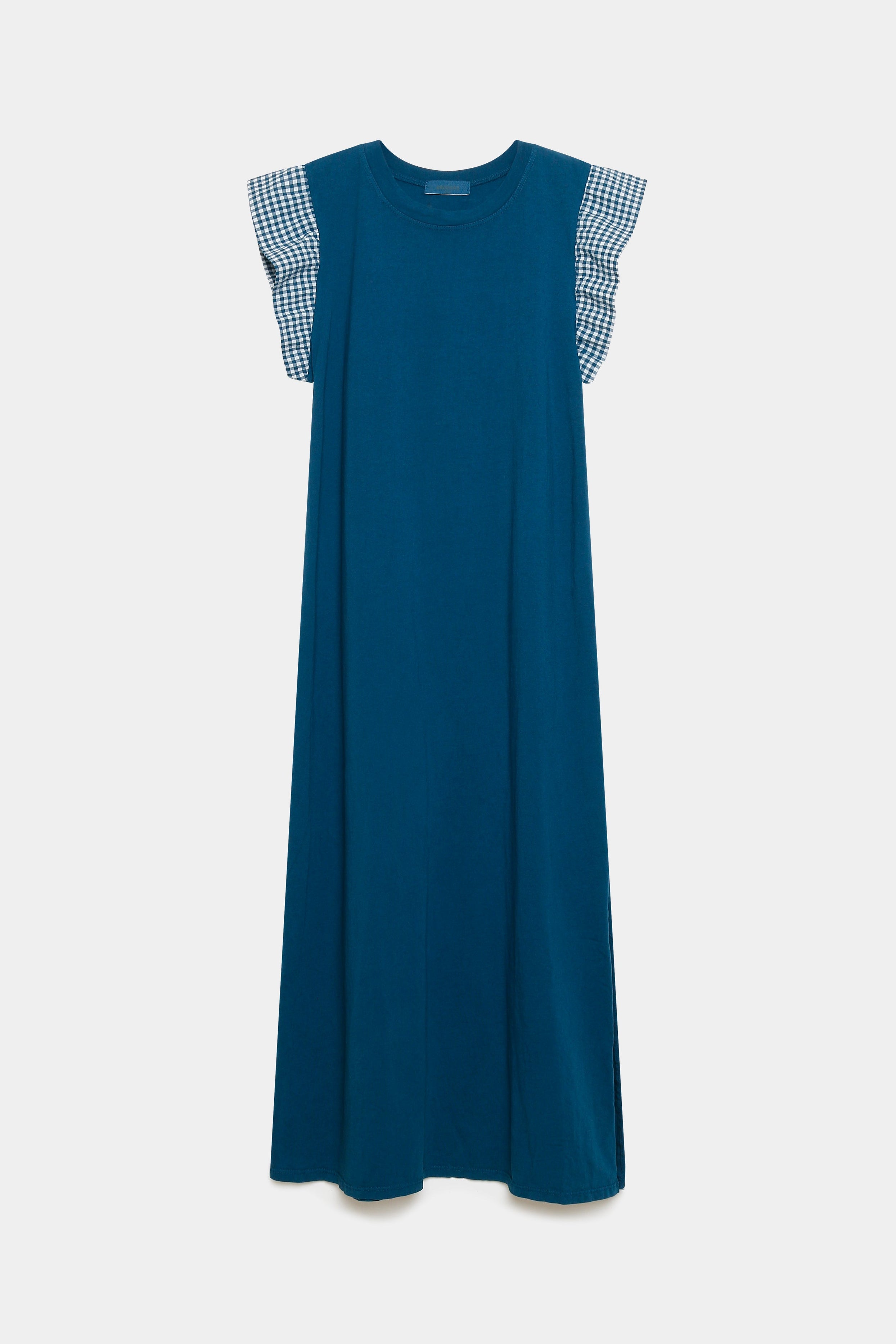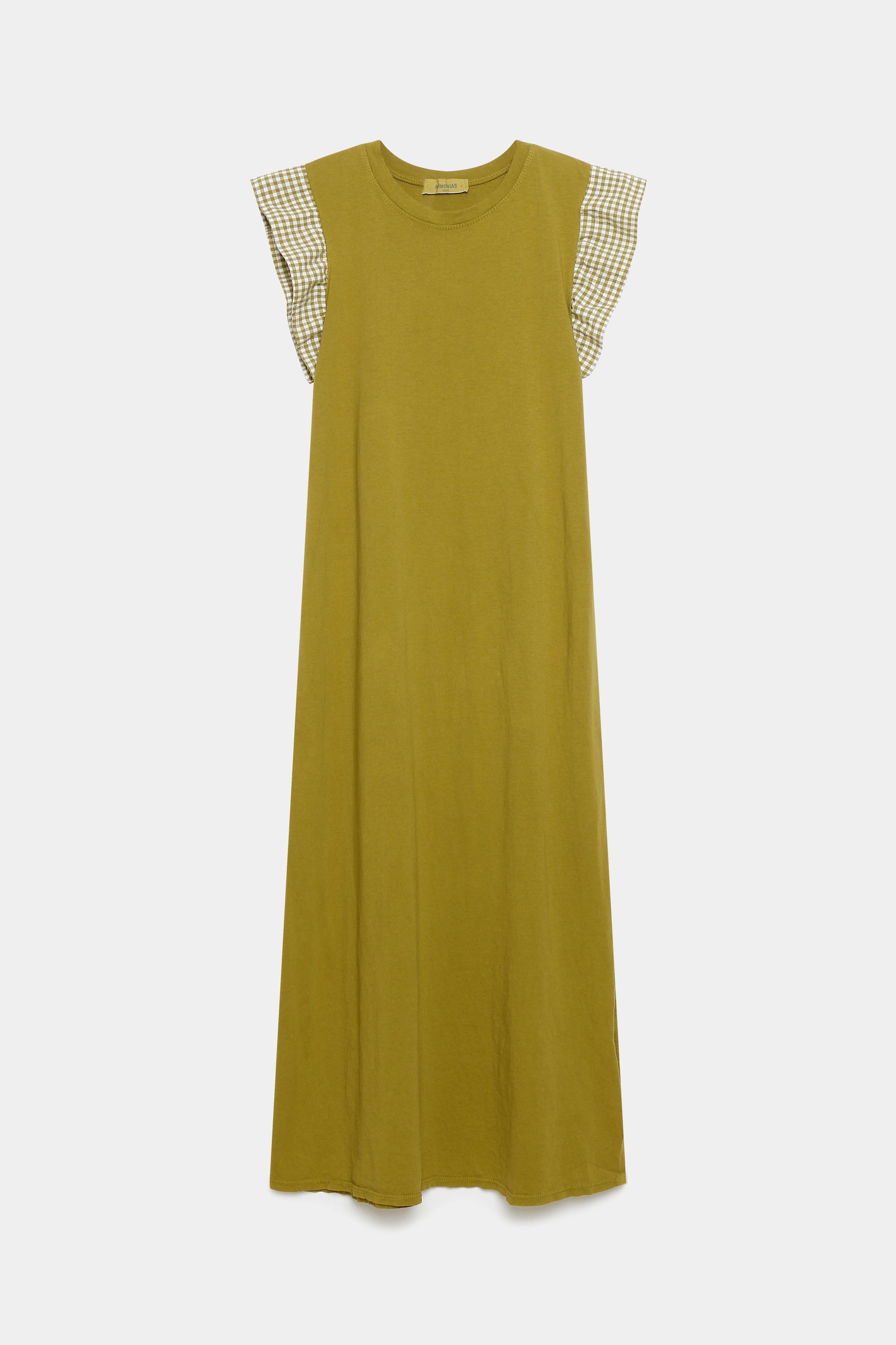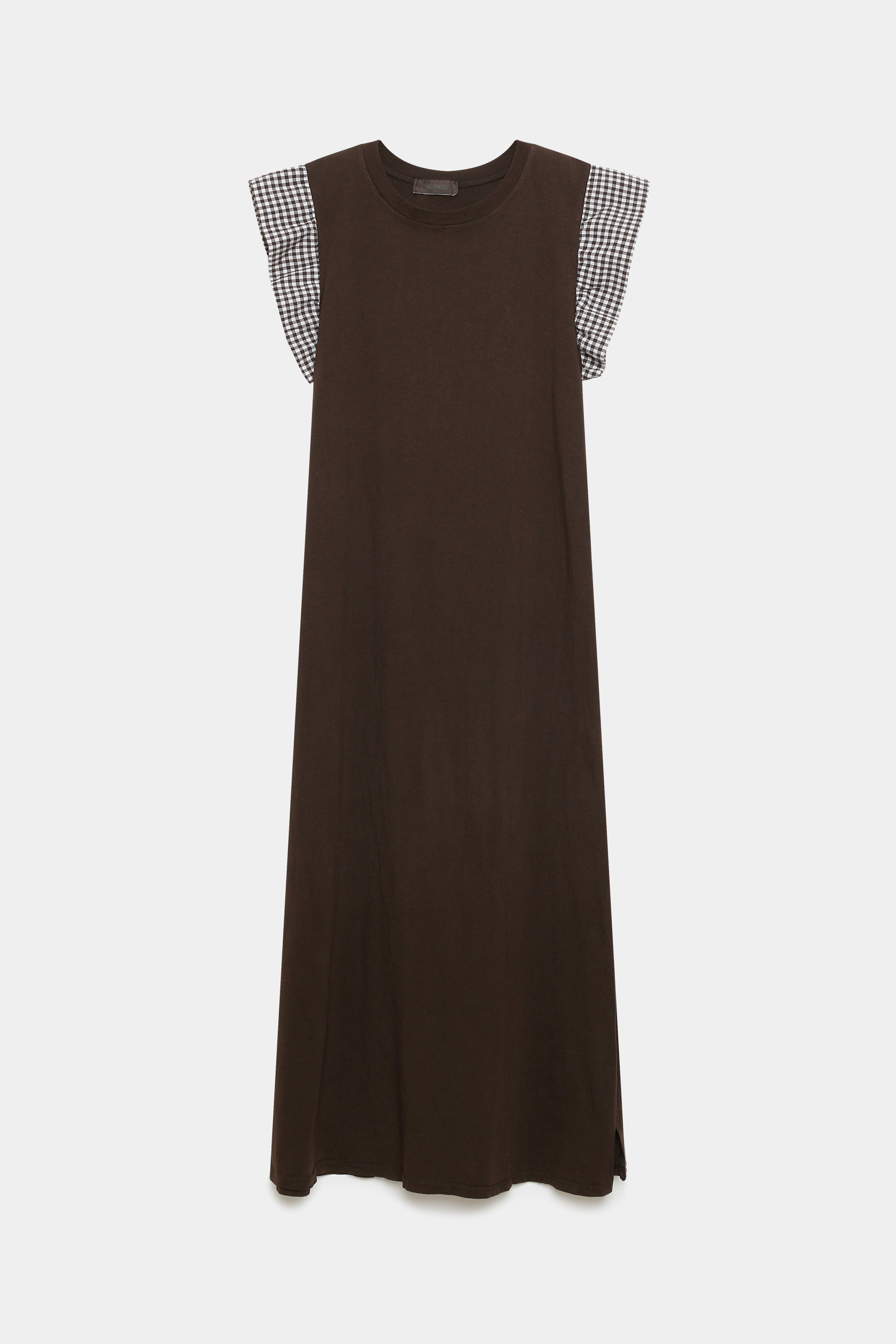 Tejido de algodón. Cuello redondo. Manga sisa. Abertura lateral. Diseño largo.