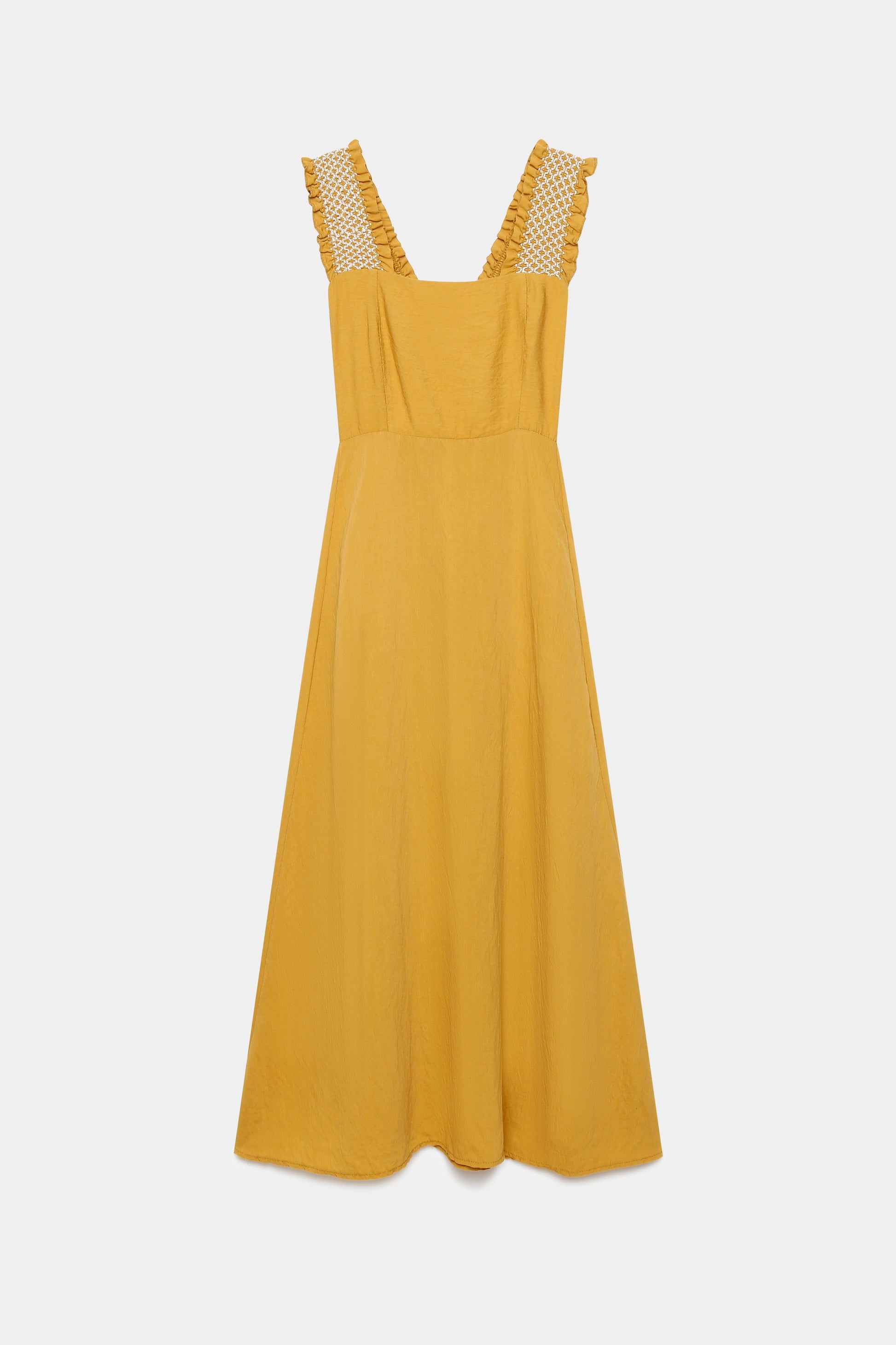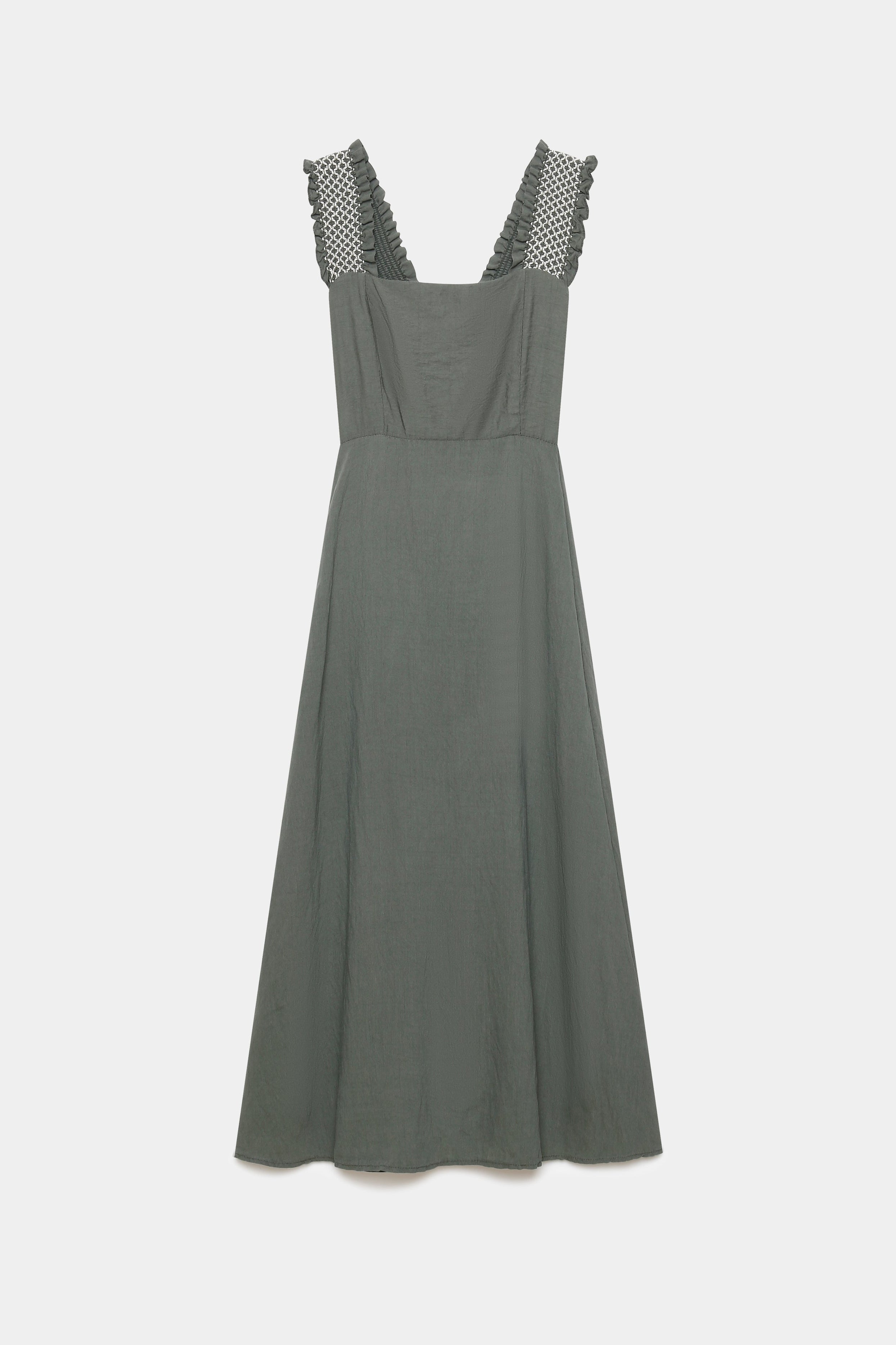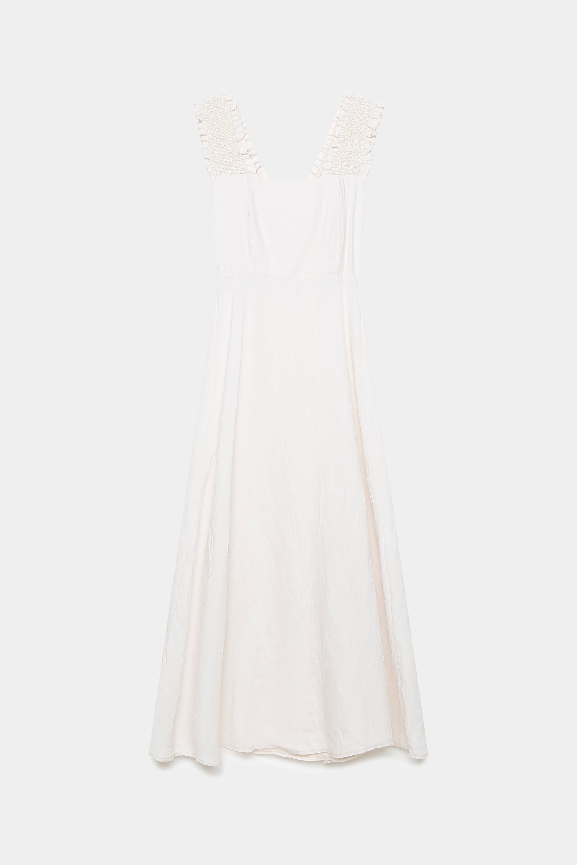 Tejido fluido. Escote recto. Tirantes anchos elásticos. Pecho elástico. Diseño midi.