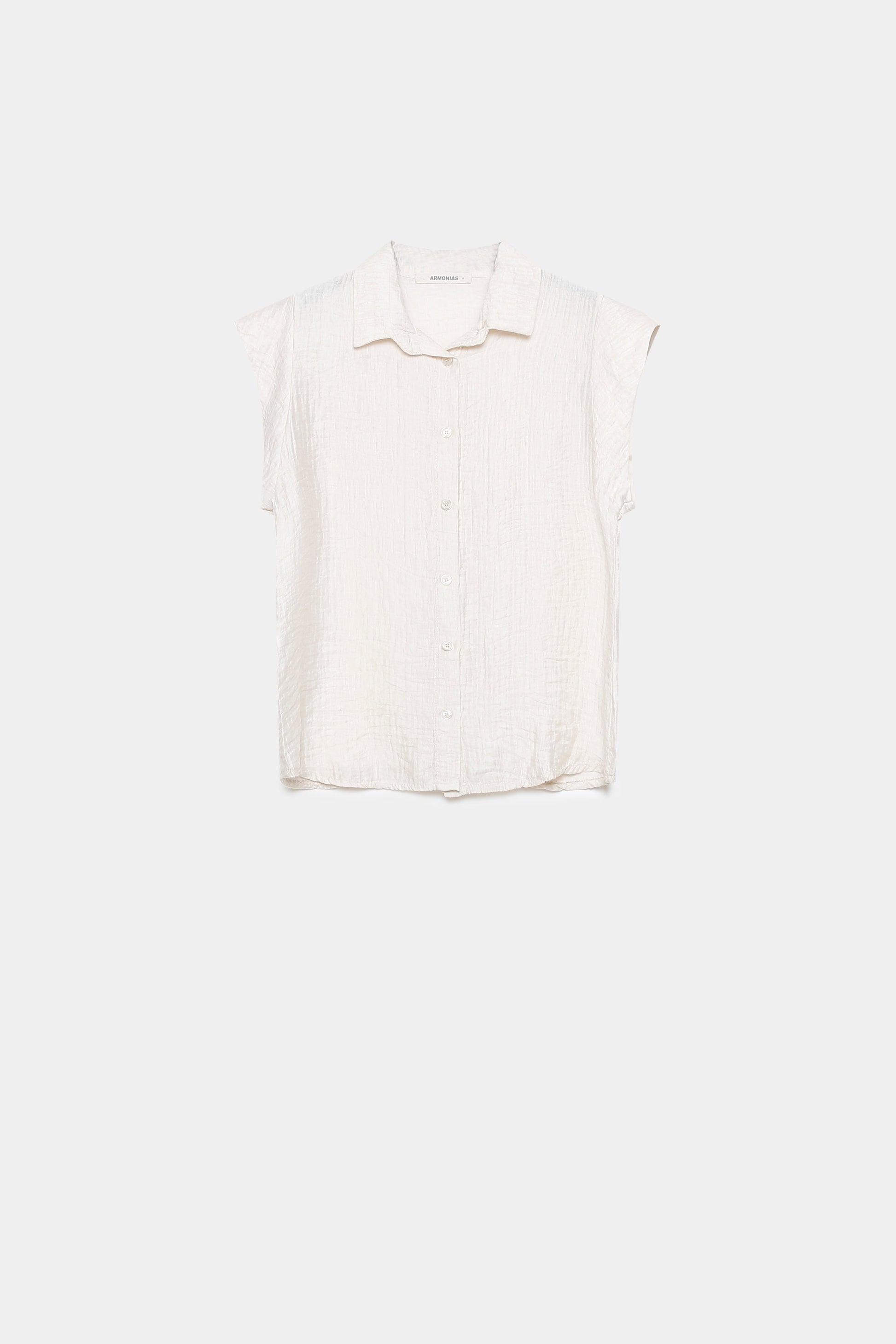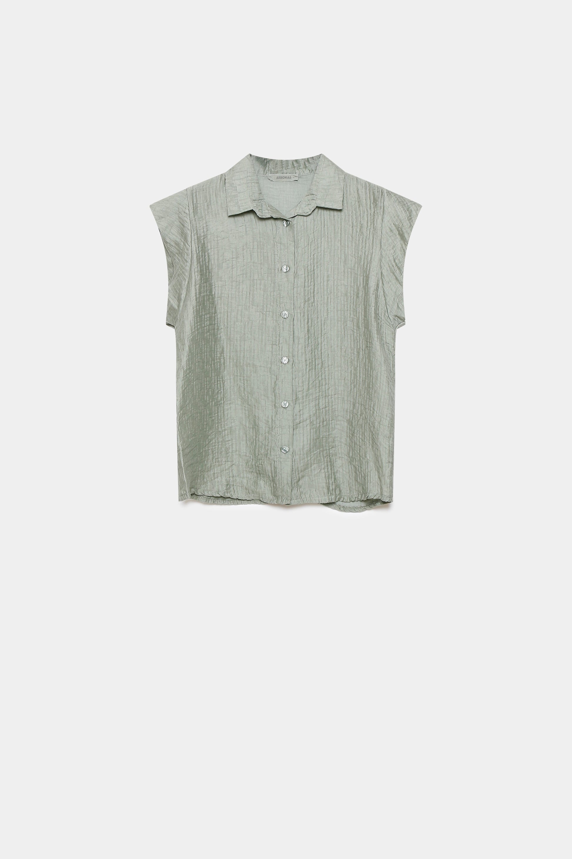 Tejido fluido. Cuello solapa. Cierre botones. Manga sisa.