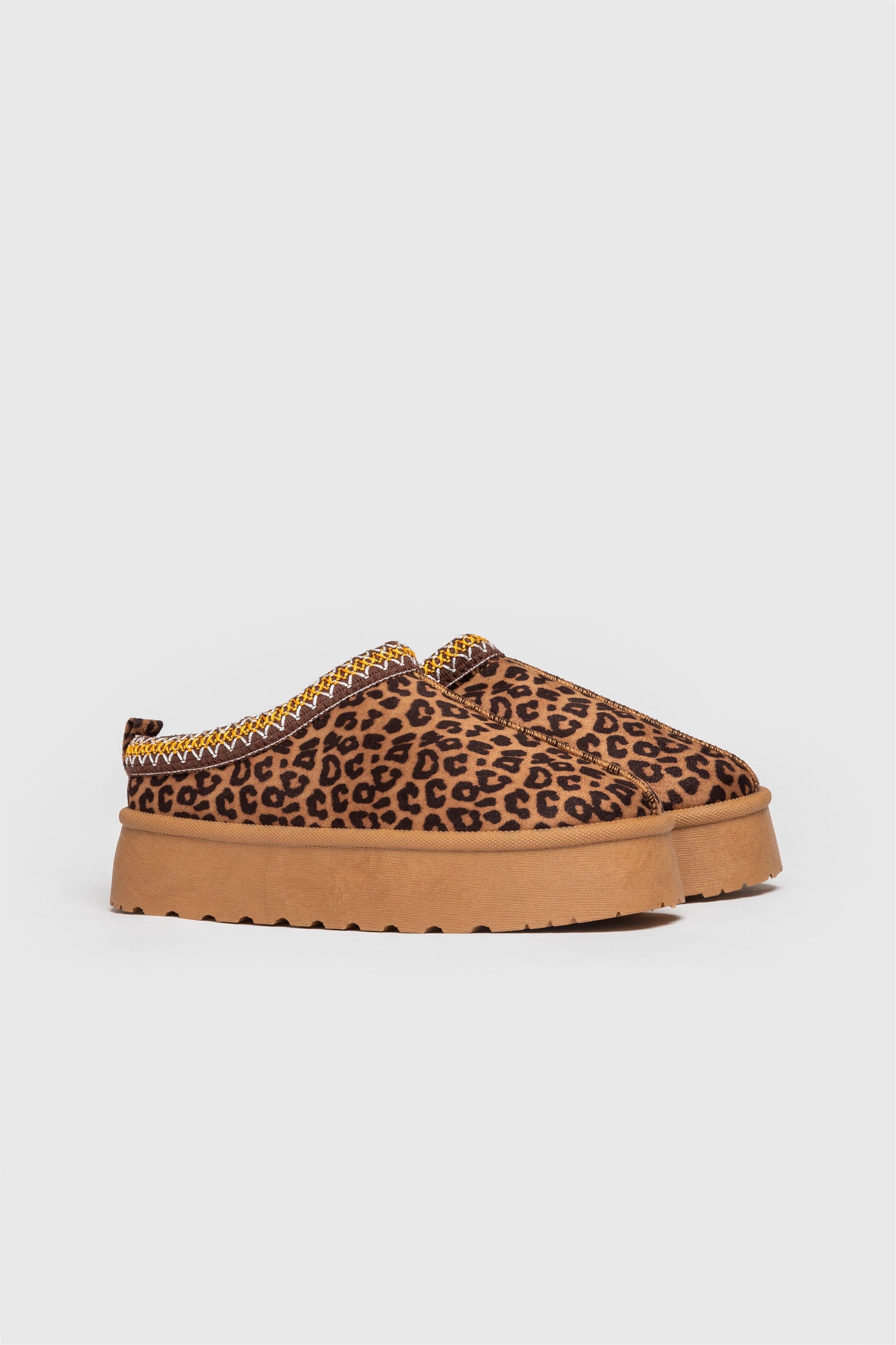 Zapato plano tipo zueco. Diseño estampado. Tejido ante sintético. Punta redondeada. Suela tipo plataforma. Suela caucho. Detalles costuras estampadas. Destalonados.