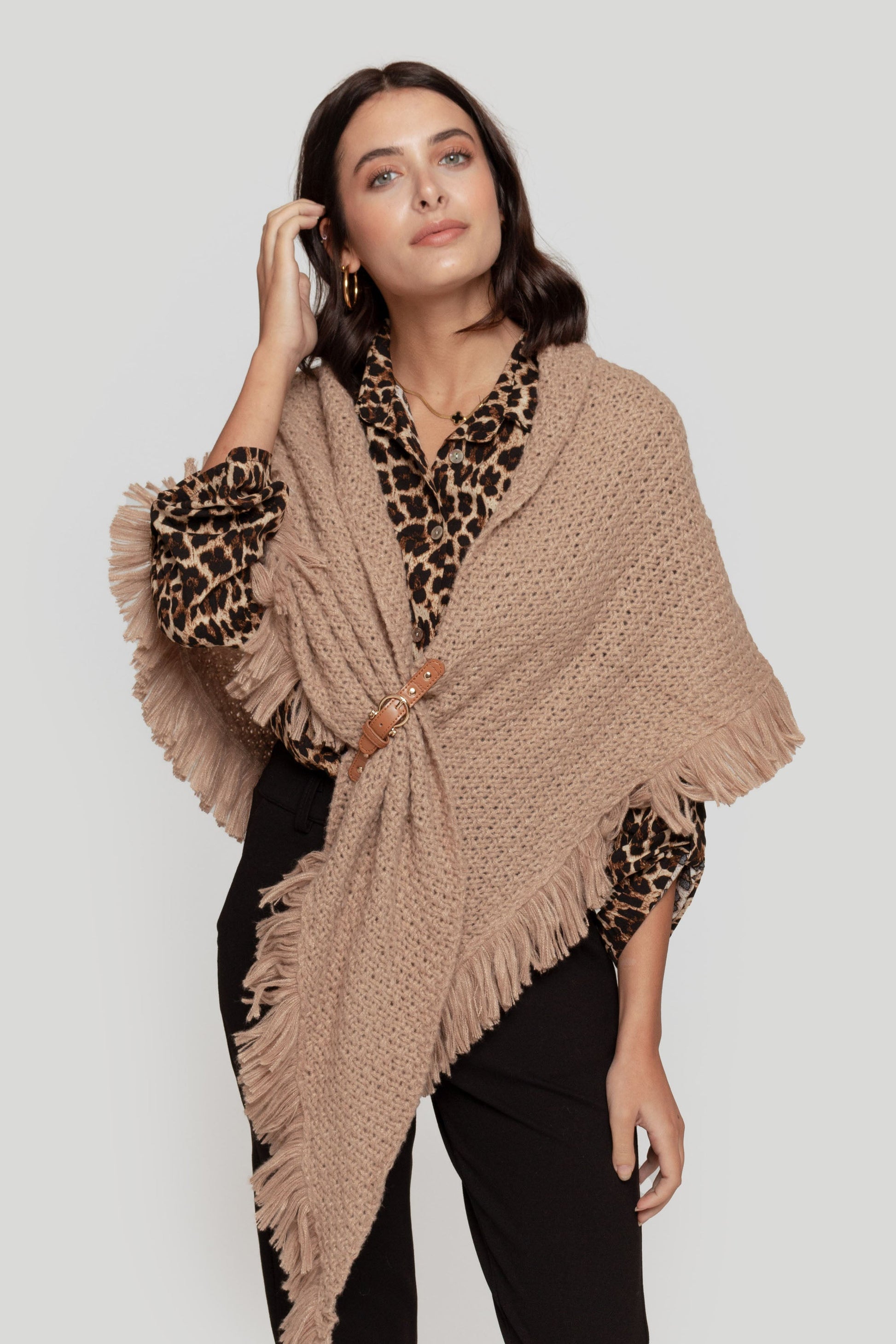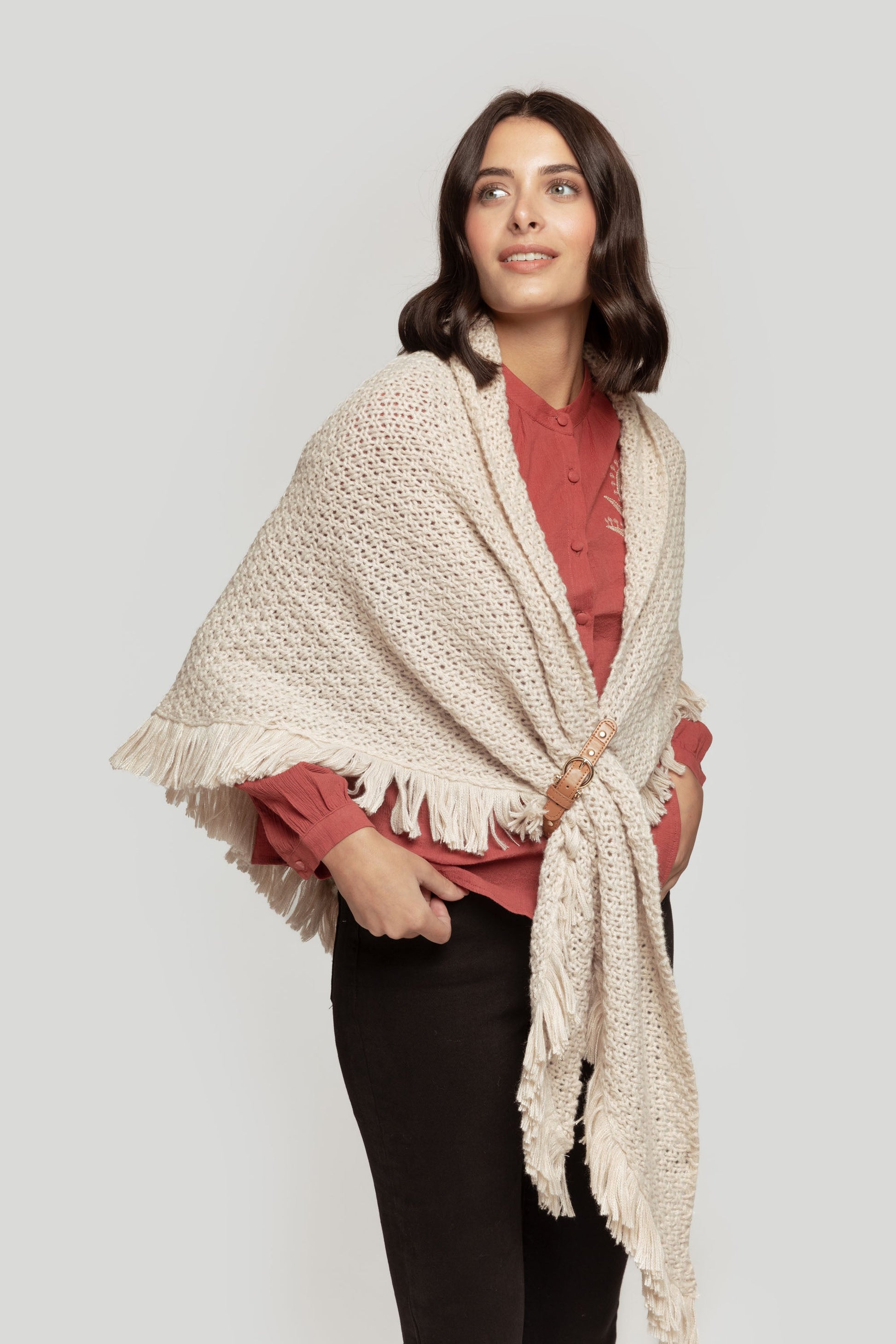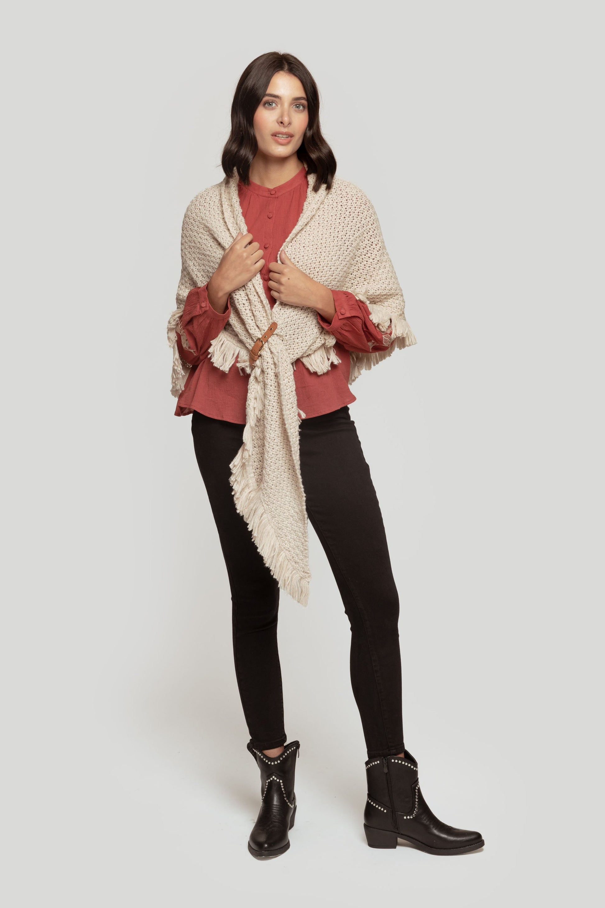 Tejido de punto. Diseño trenzado. Diseño pico. Diseño liso. Cierre de correa. Terminaciones flecos. Talla única.
