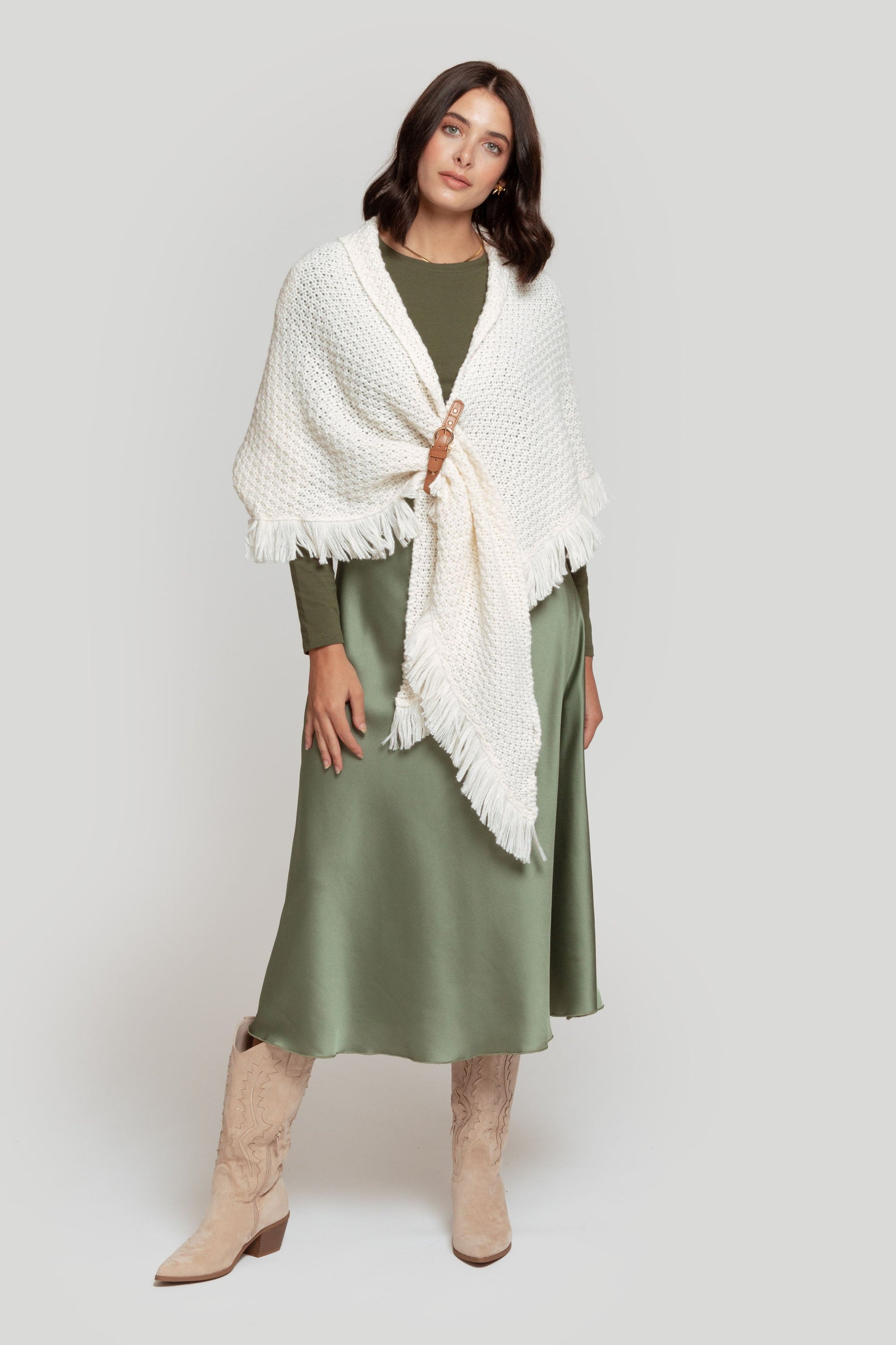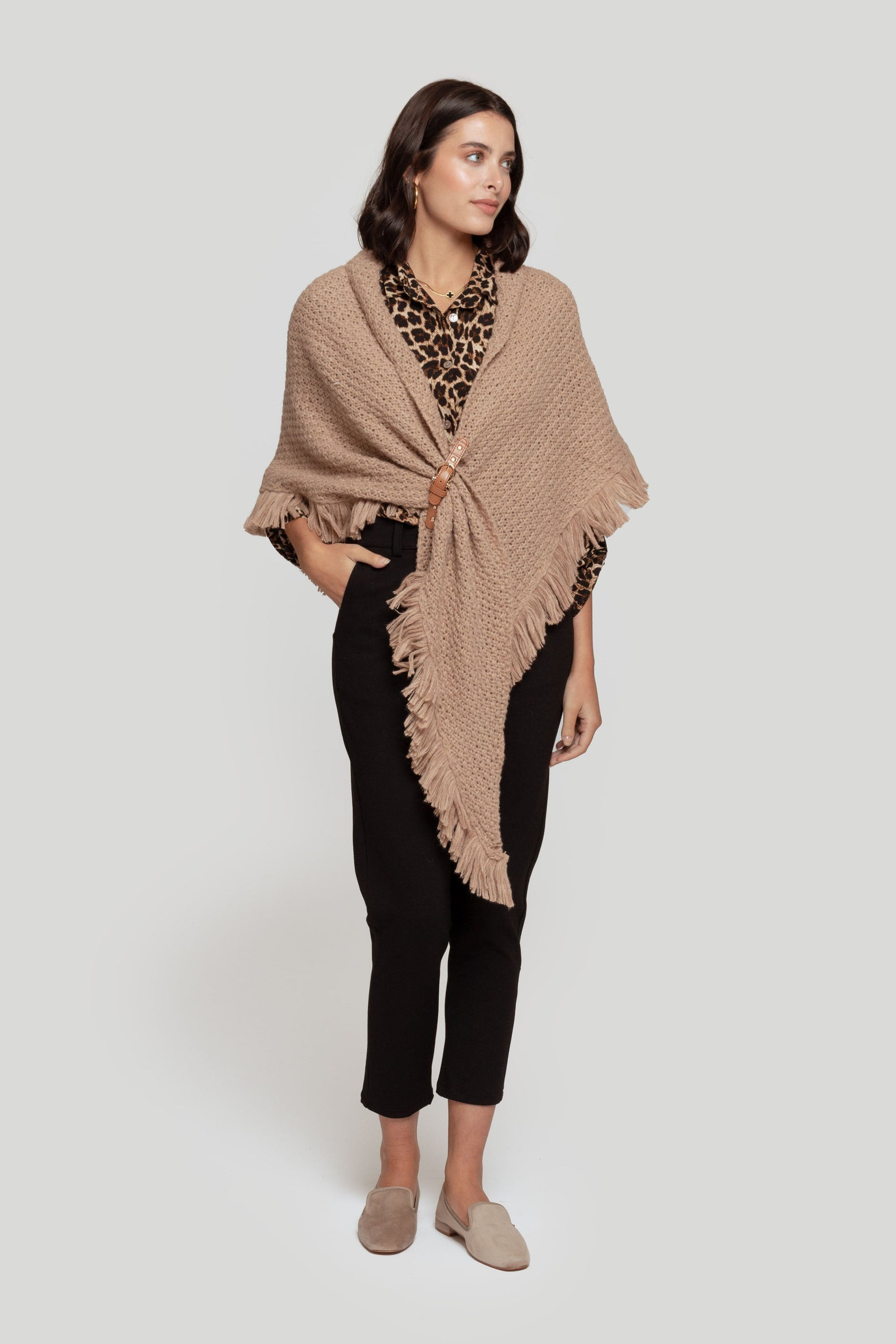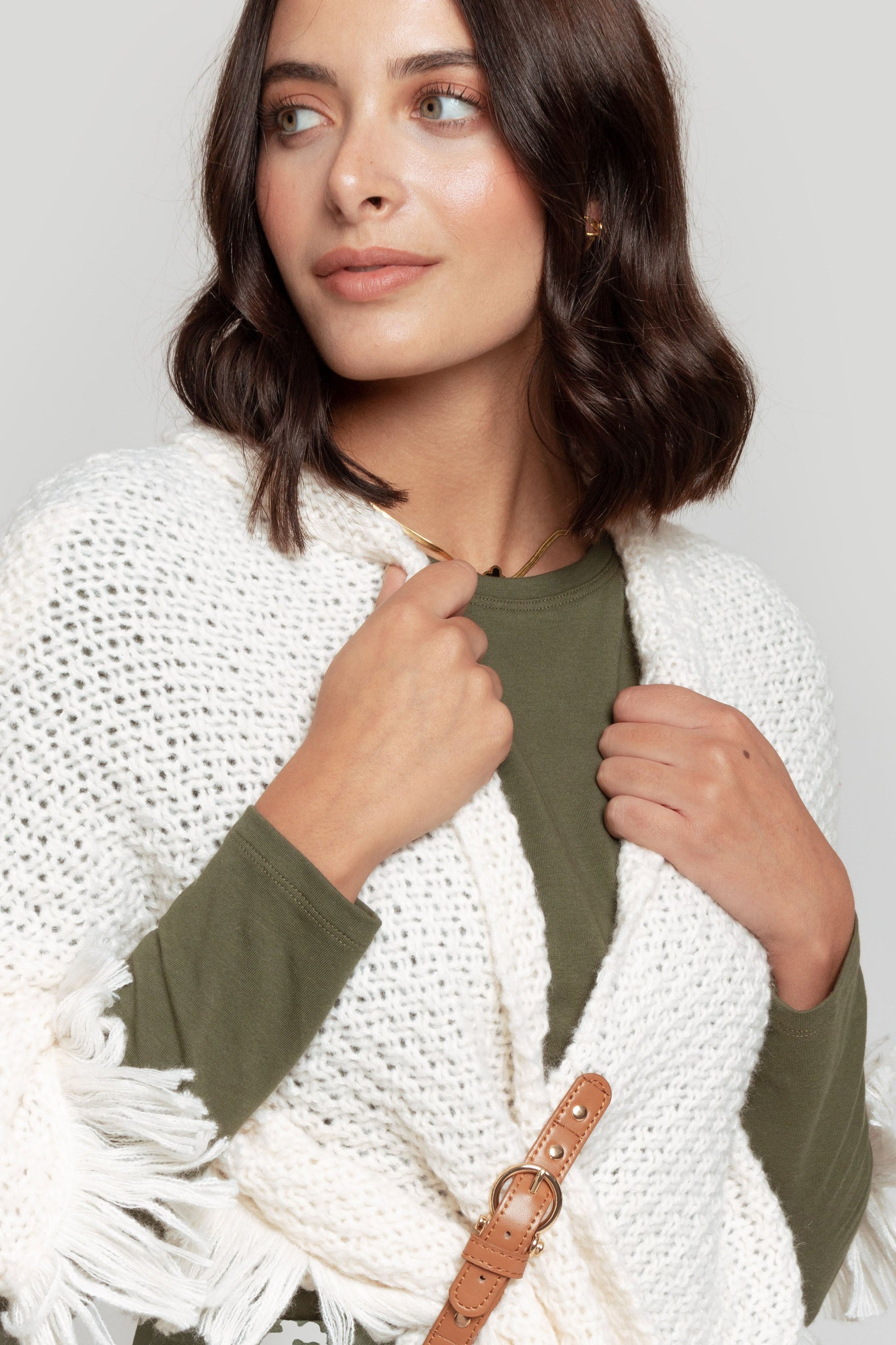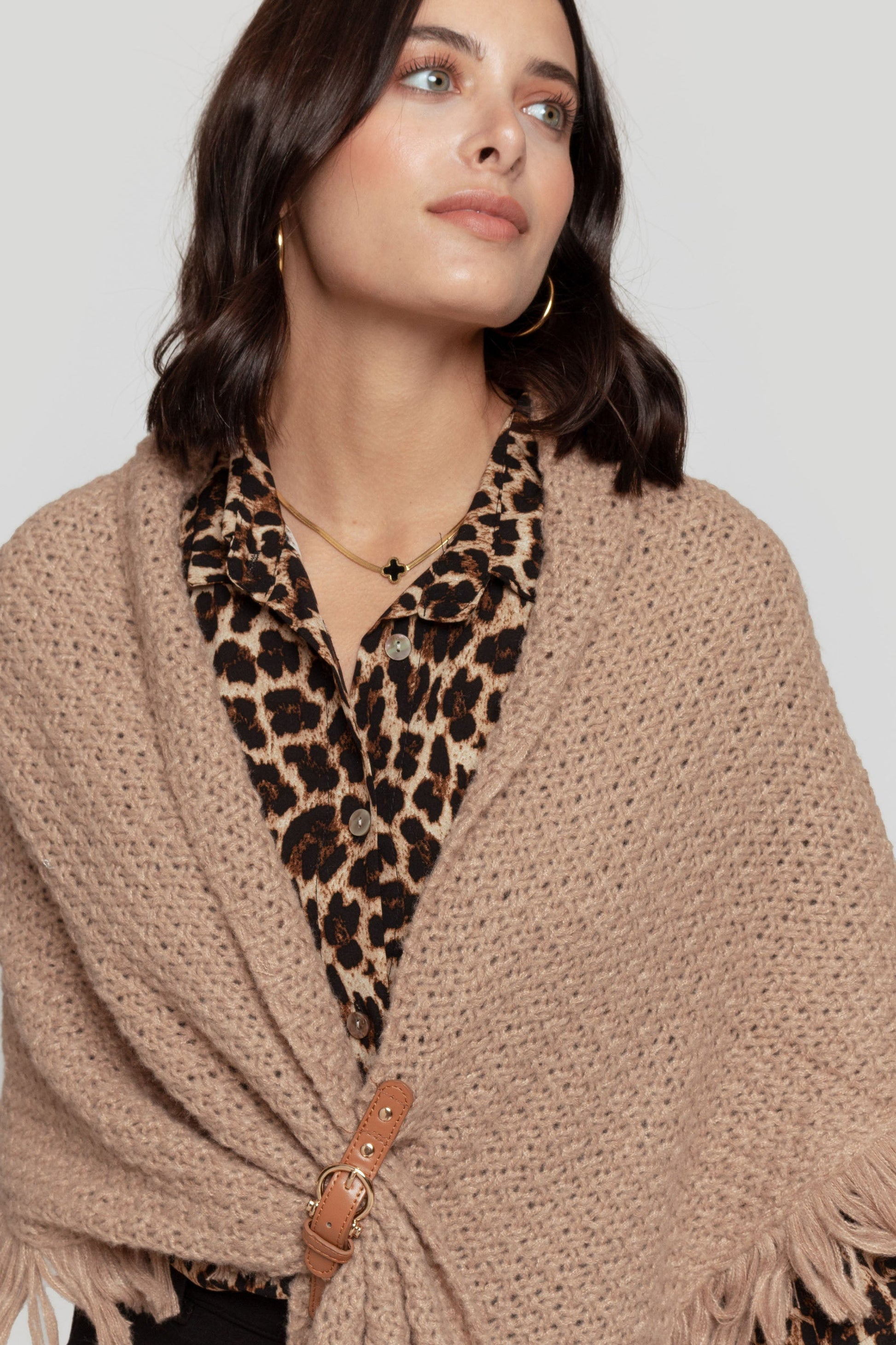 Tejido de punto. Diseño trenzado. Diseño pico. Diseño liso. Cierre de correa. Terminaciones flecos. Talla única.