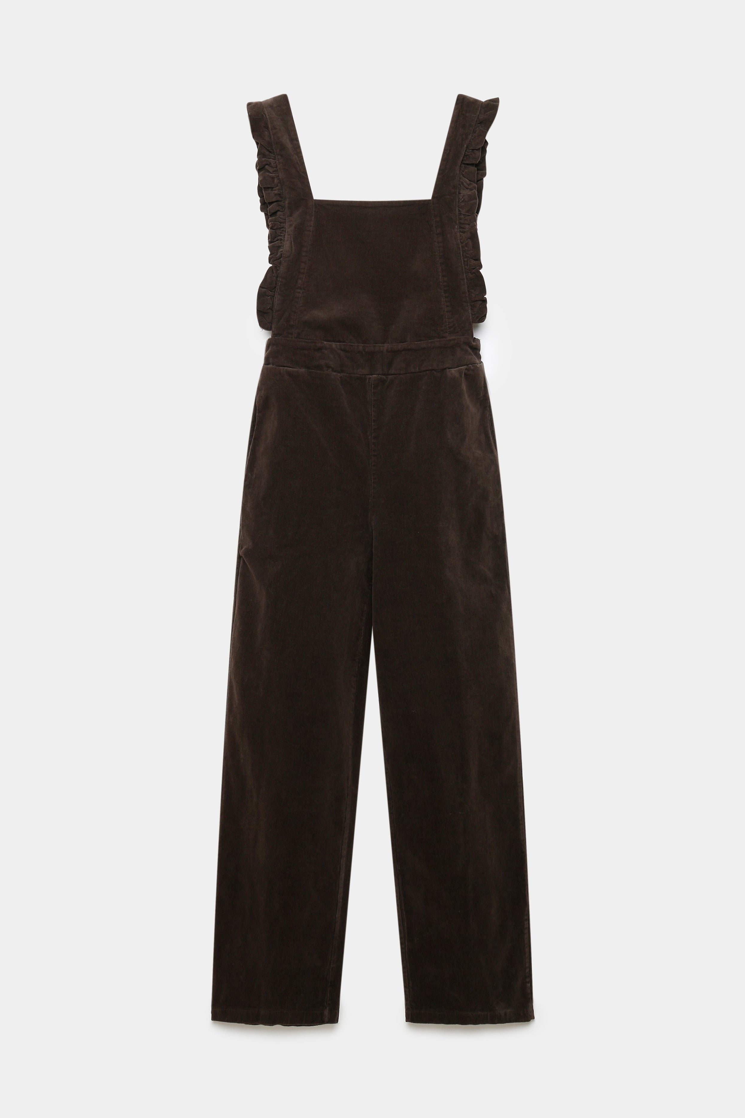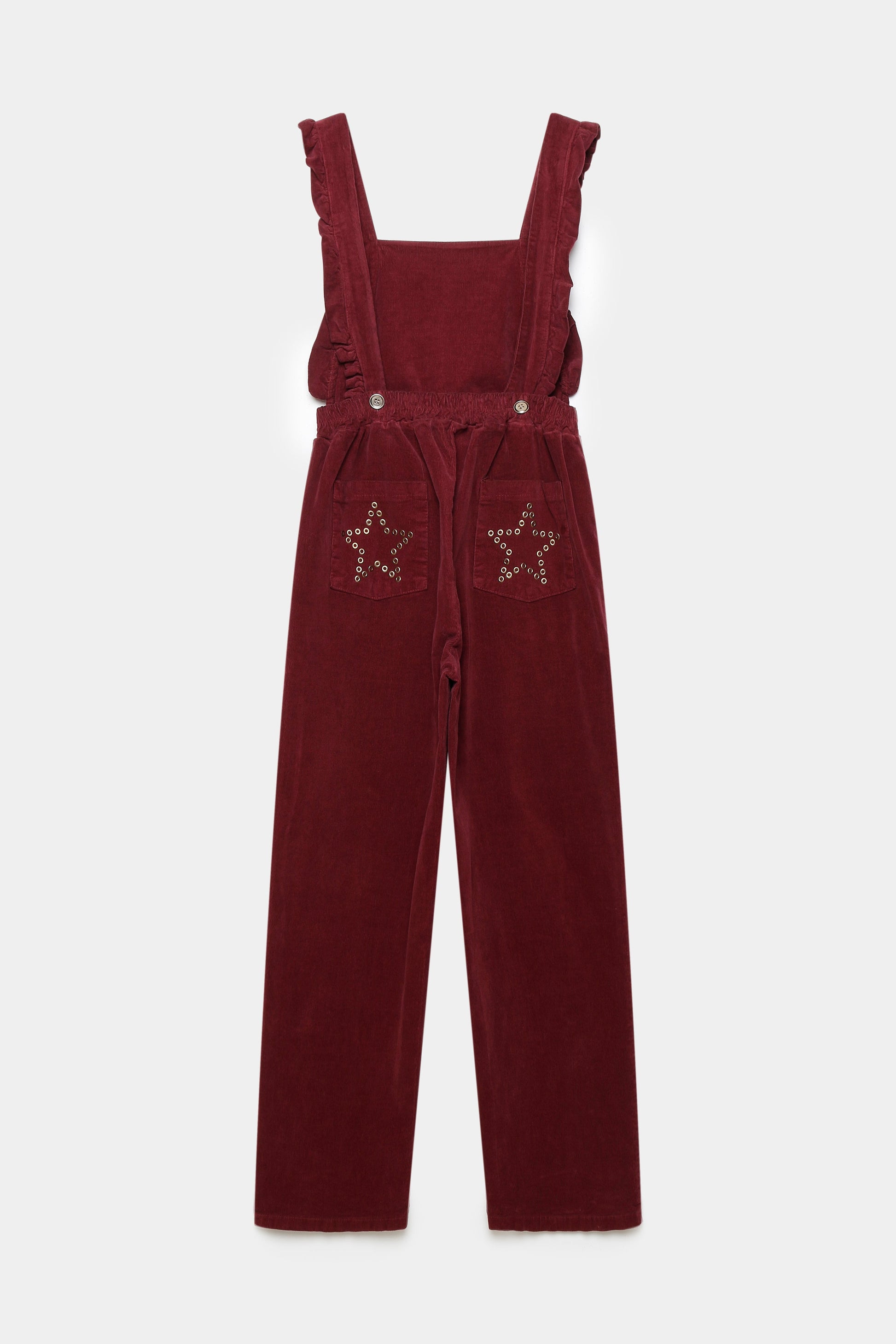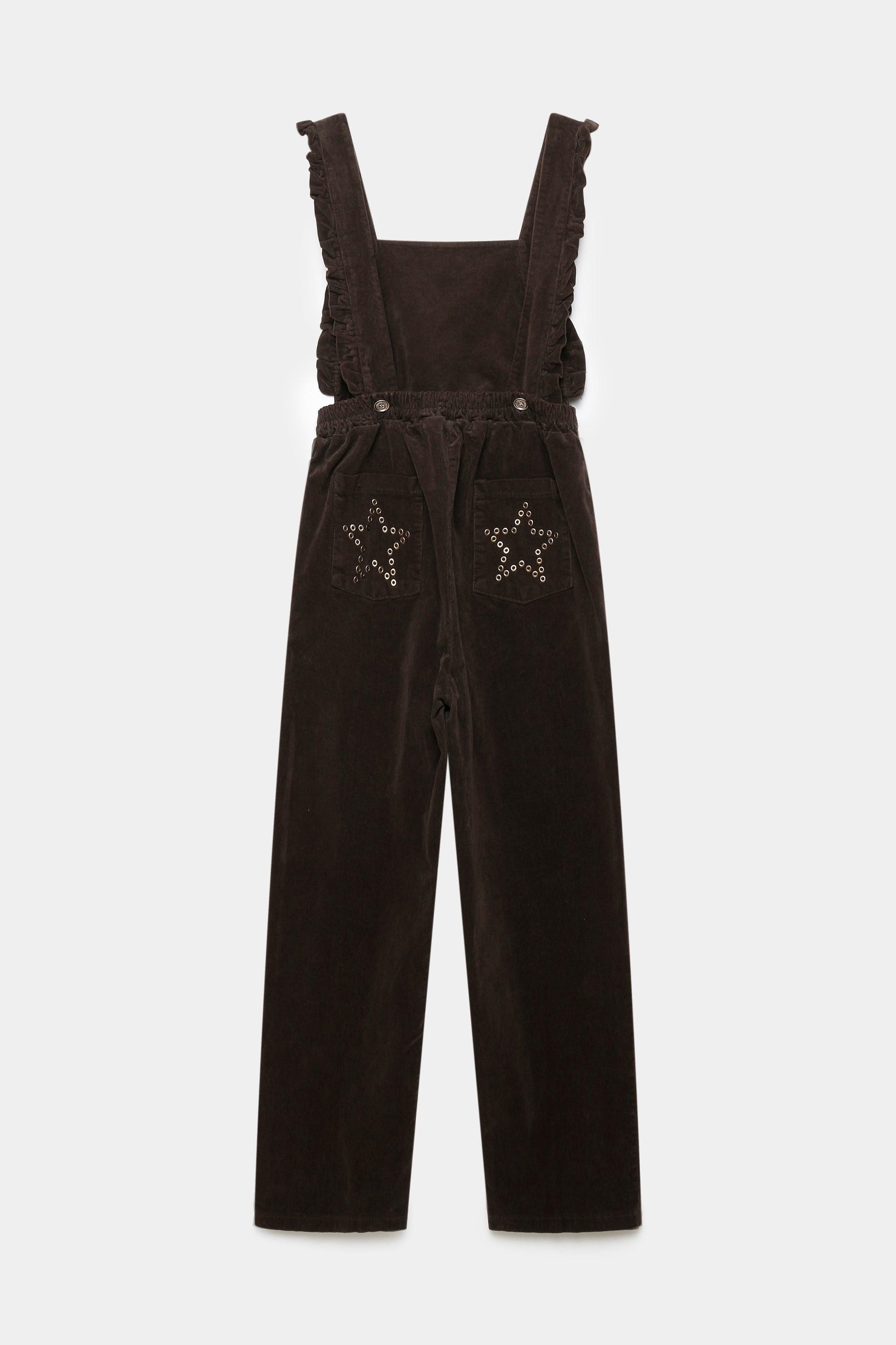 Tejido de algodón. Diseño recto. Diseño largo. Escote cuadrado. Tirantes anchos. Panel elástico. Cuatro bolsillos. Detalle de estrellas.