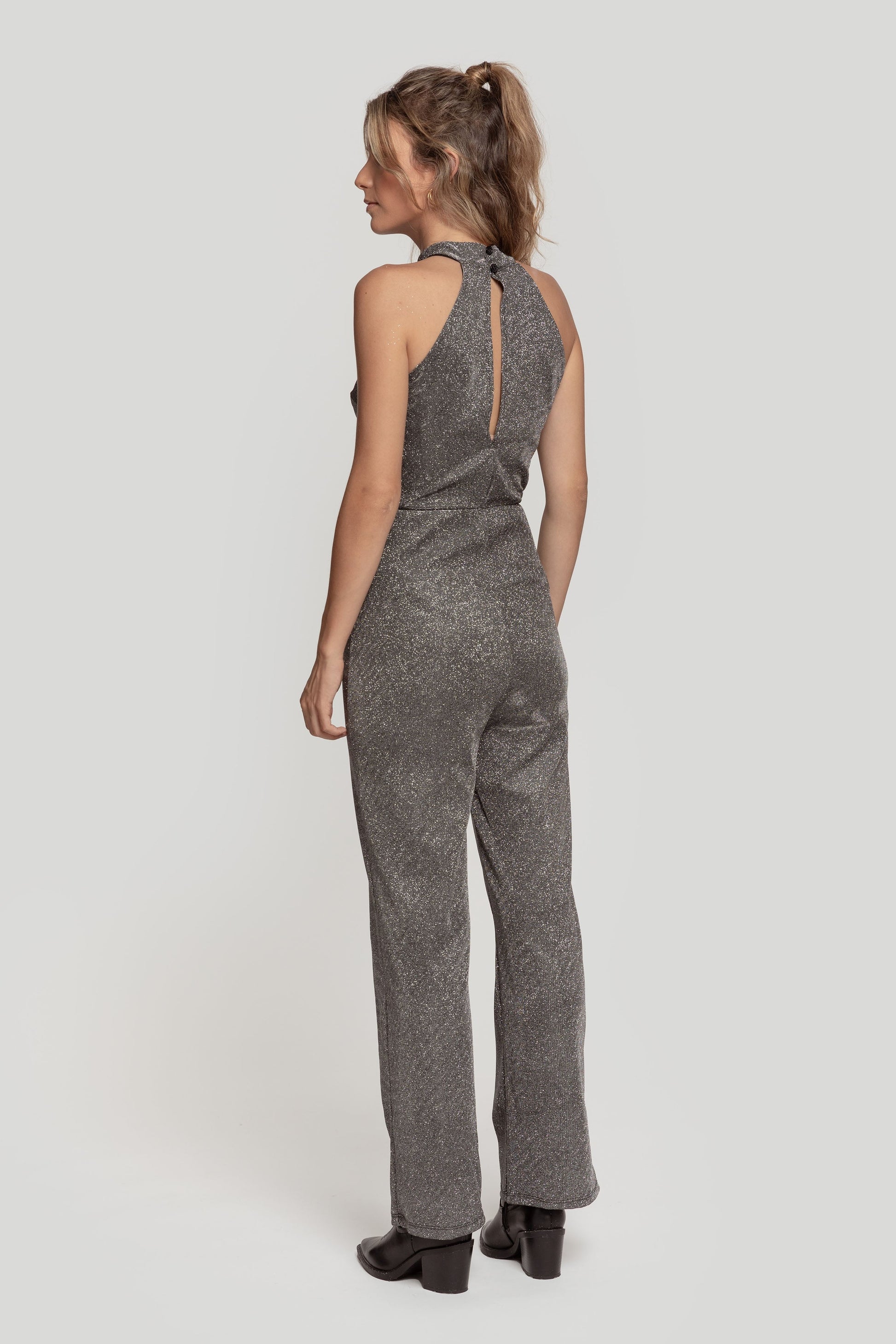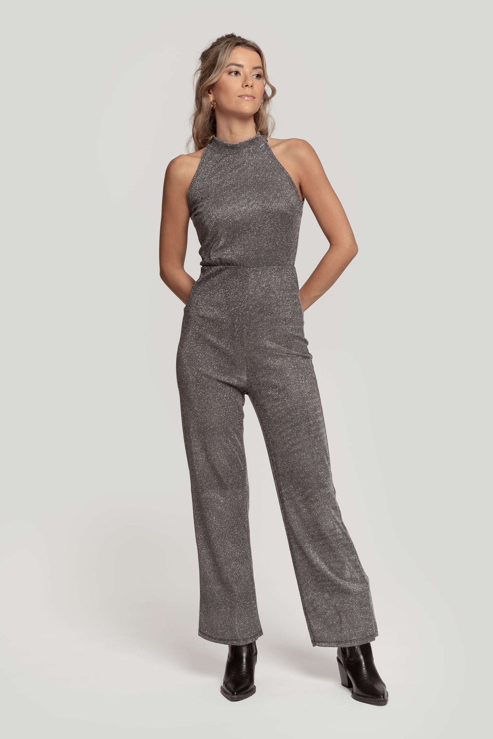 Tejido brillo. Diseño largo. Diseño recto. Cuello halter. Manga sisa. Cunturá con elástico. Colección fiesta. Talla modelo: S. Altura modelo 1,70 m.
