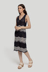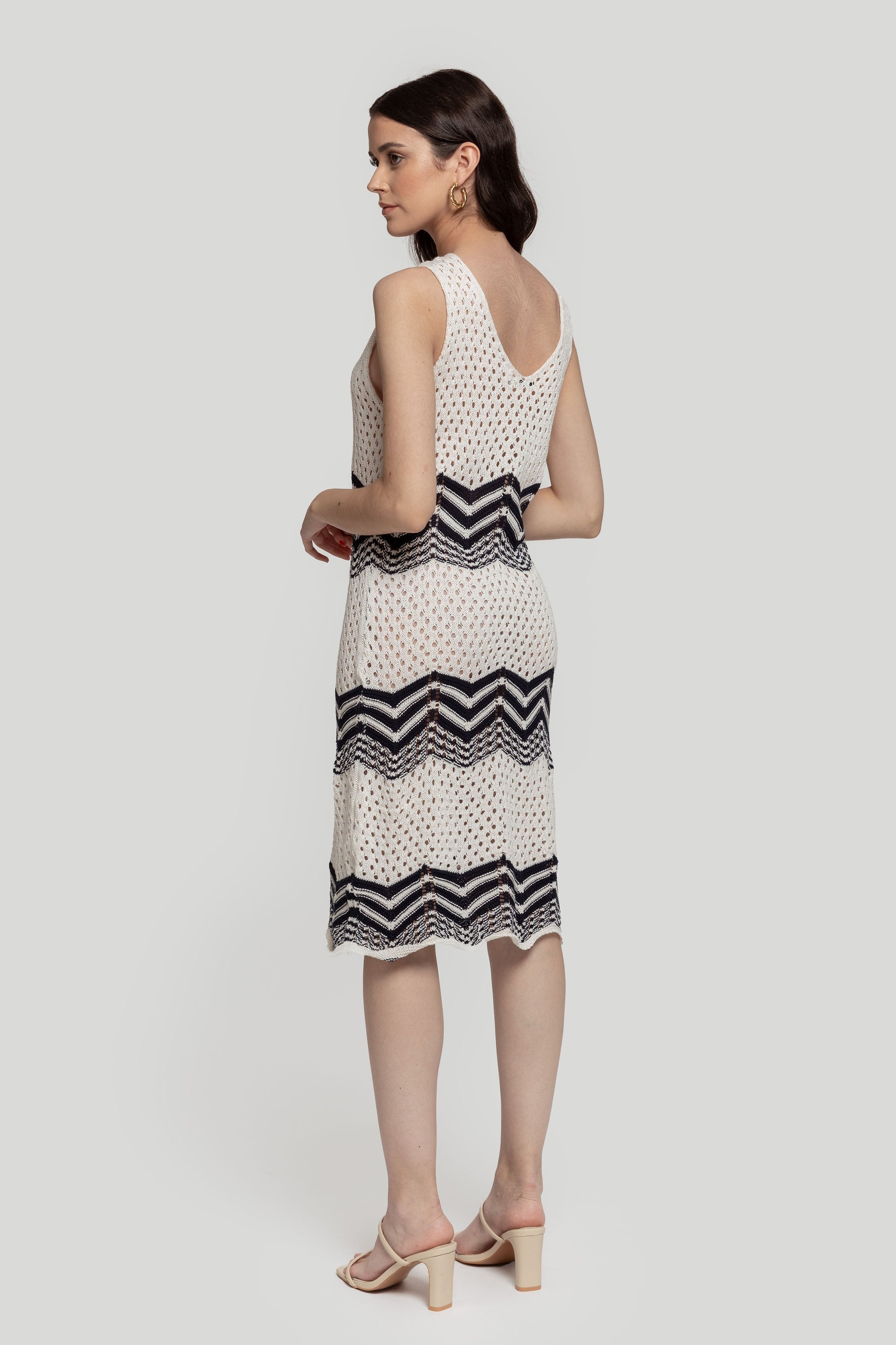 Tejido mezcla de algodón. Tejido de punto calado. Diseño recto. Diseño estampado. Diseño midi. Cuello pico. Sin mangas. Bajo asimétrico. Talla modelo: S. Altura modelo 1,67 m.