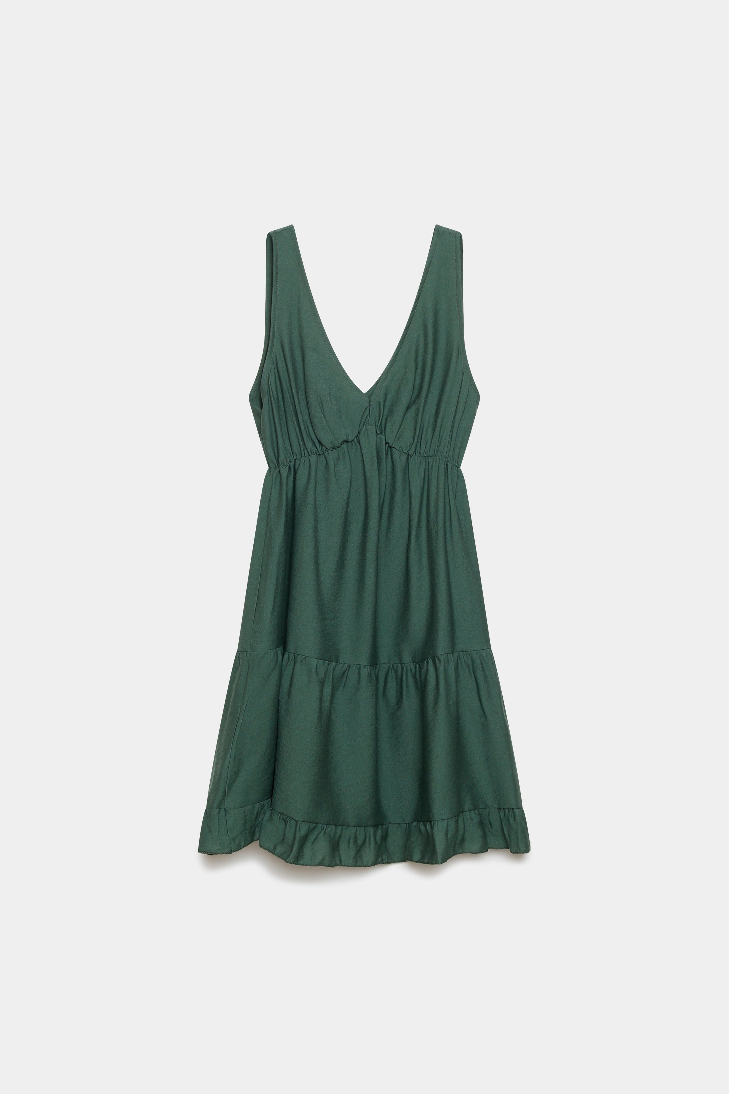 Tejido fluido. Tirantes anchos. Escote pico. Diseño corto.