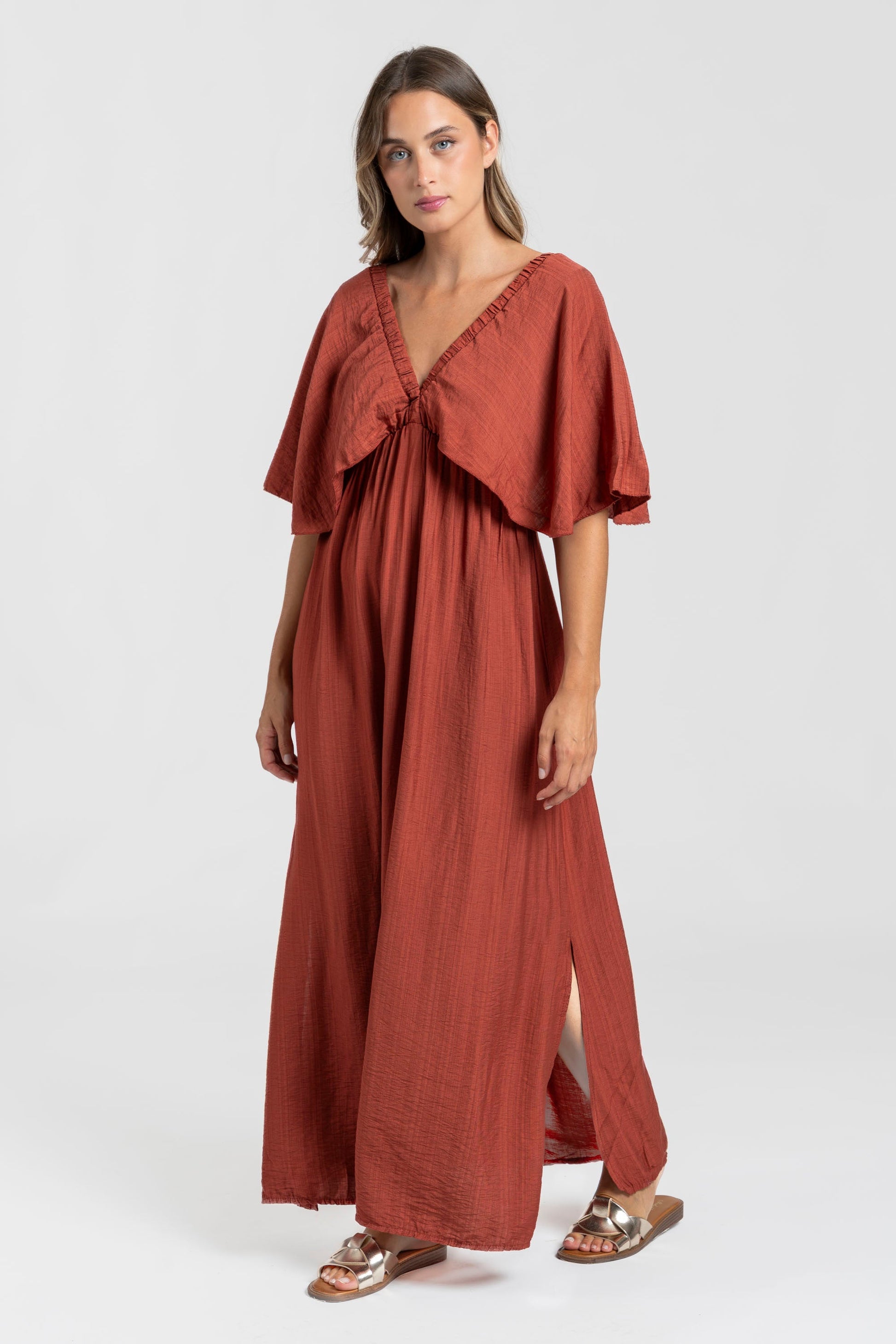 Tejido fluido. Escote pico. Manga corta. Diseño largo. Bajo con aperturas. Talla S. Altura modelo: 1.66 m