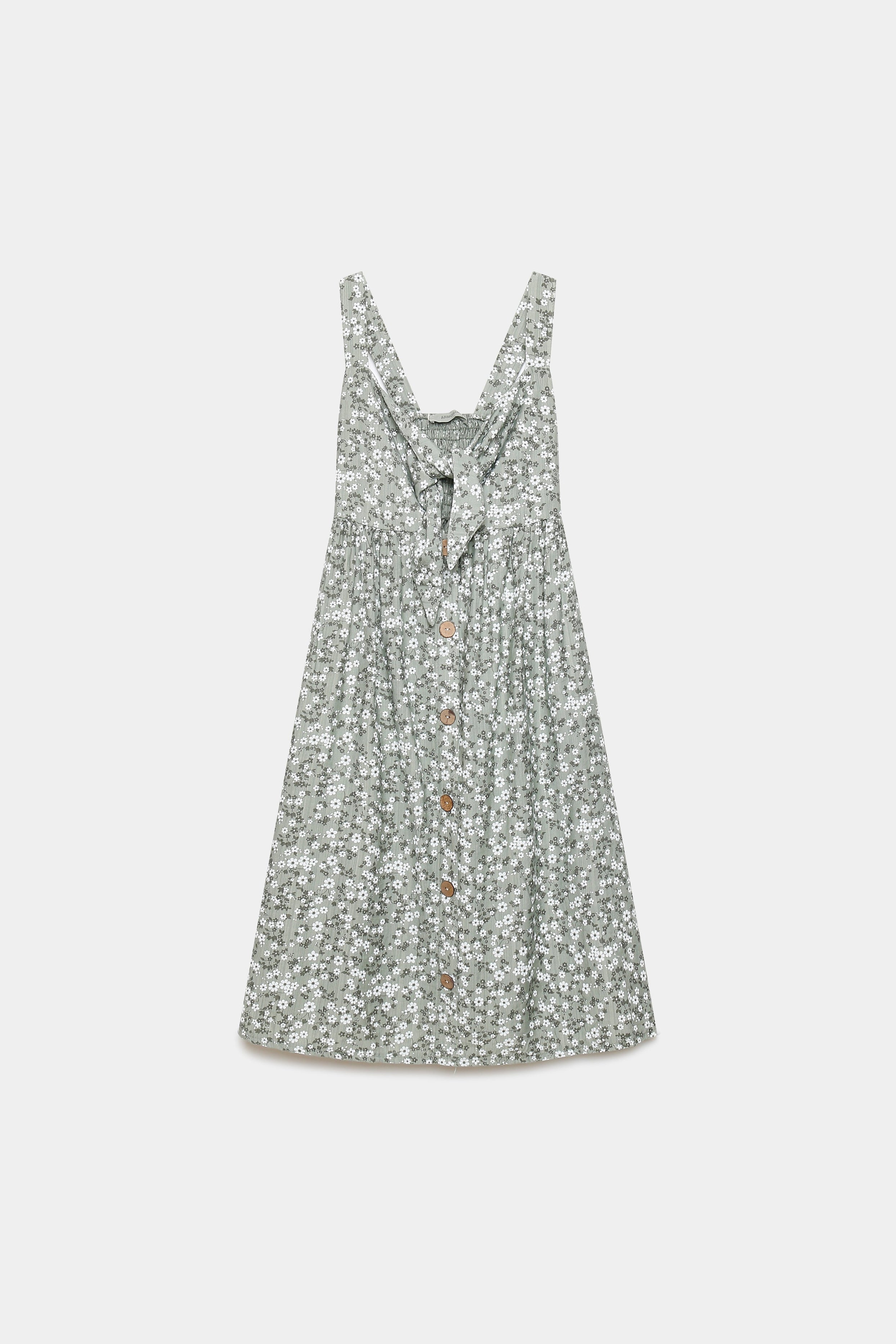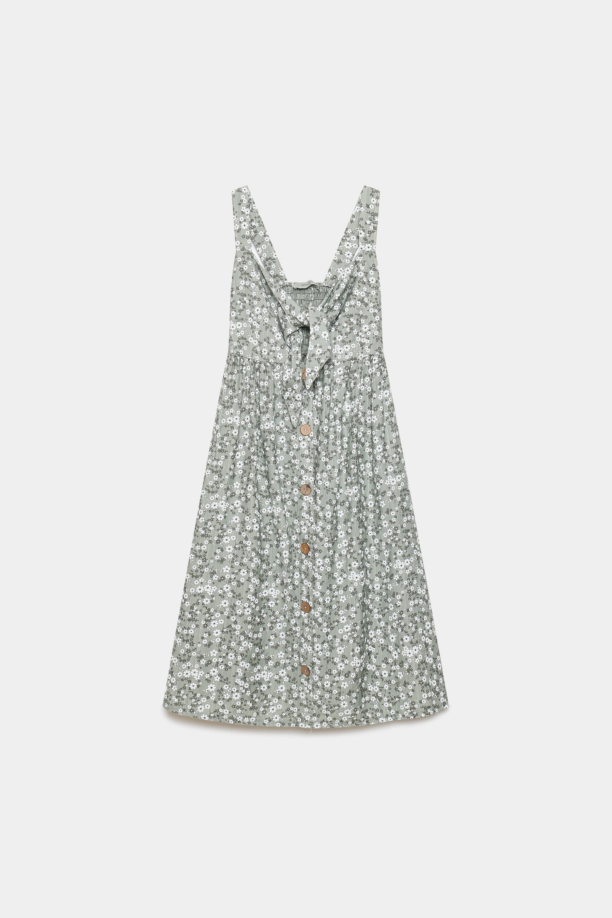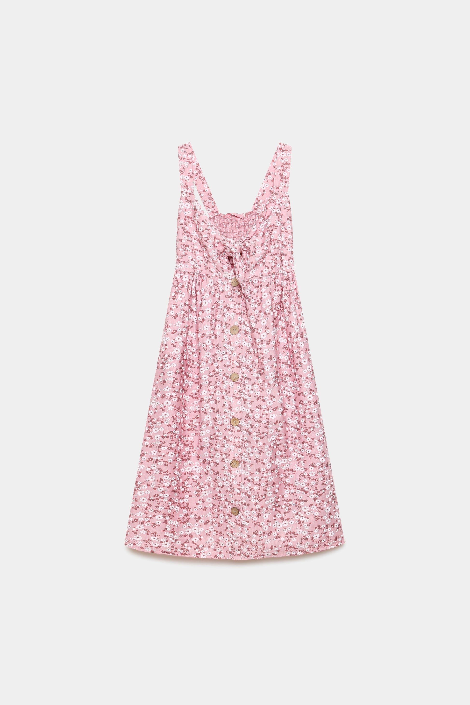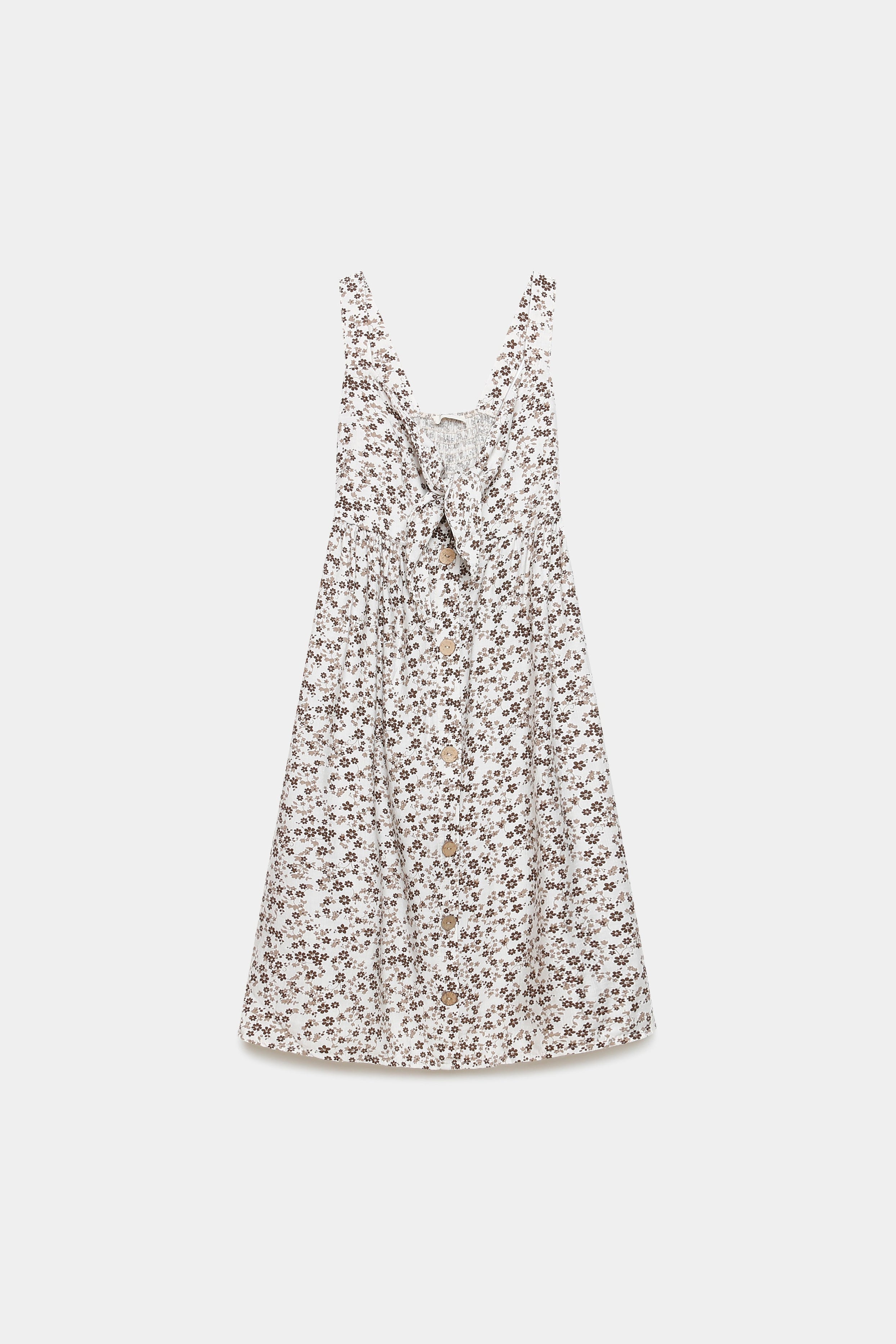 Tejido fluido. Diseño estampado. Tirantes anchos. Nudo en el pecho. Elástico en la espalda. Botones decorativos.