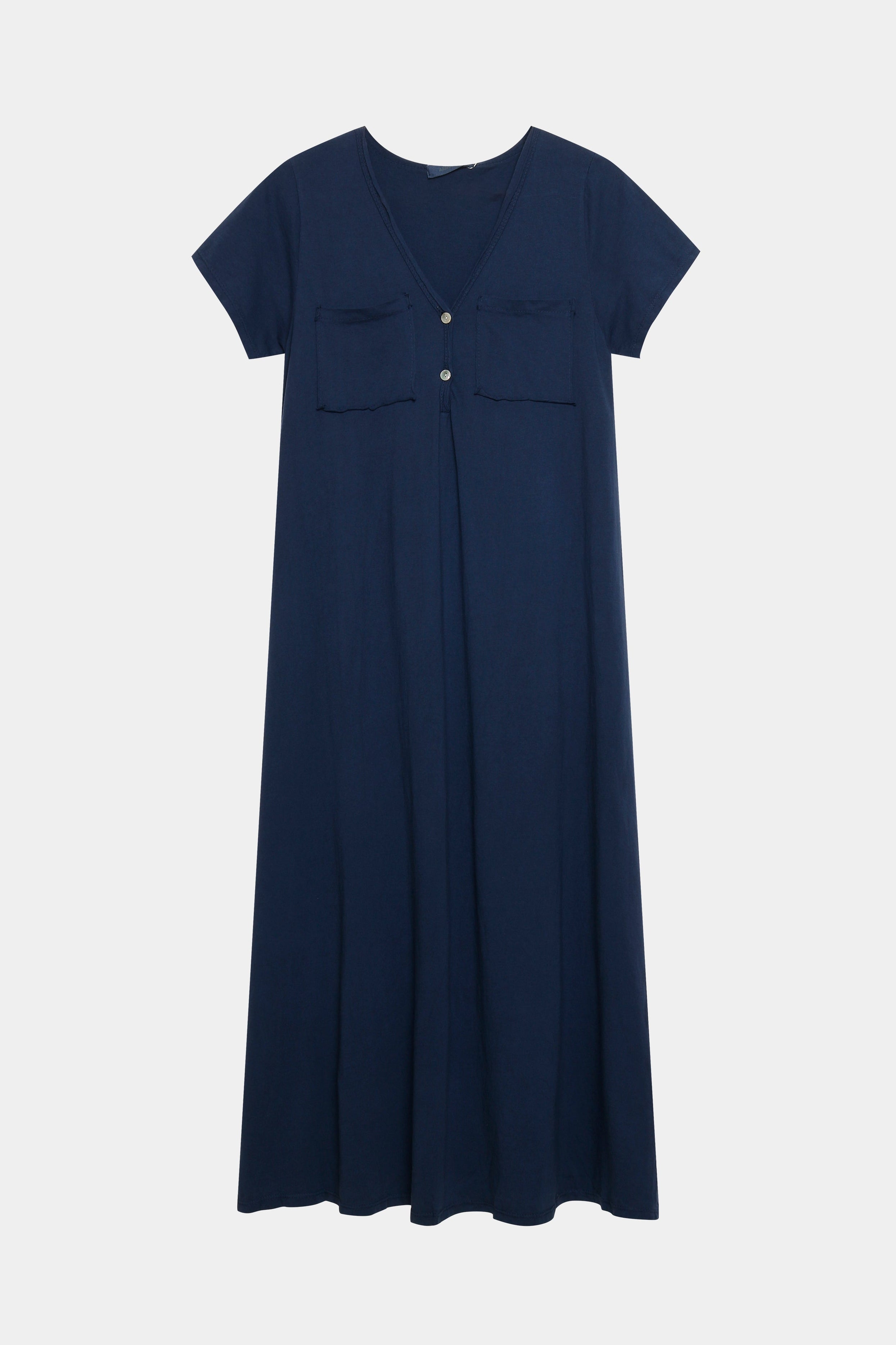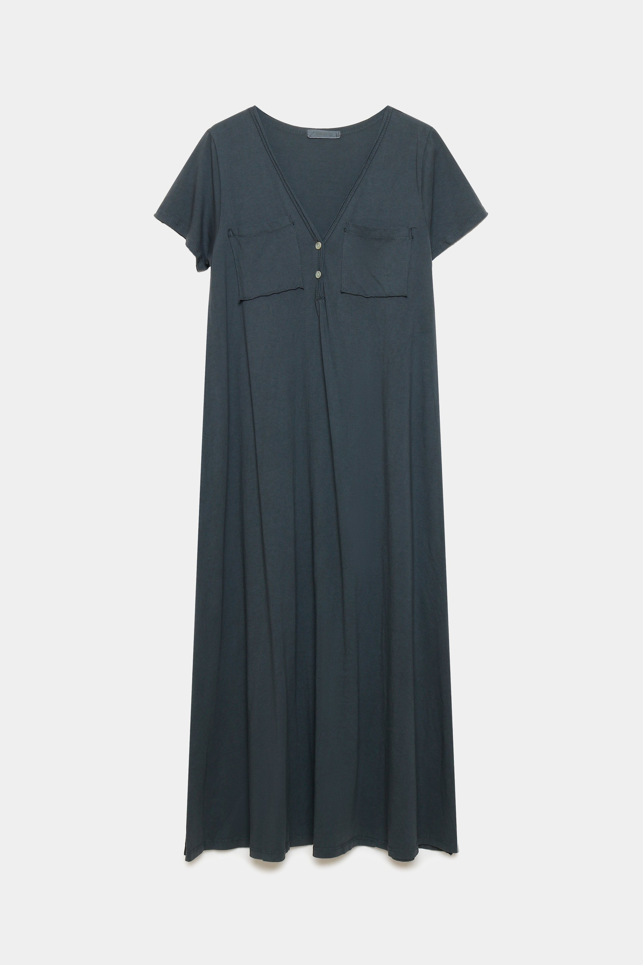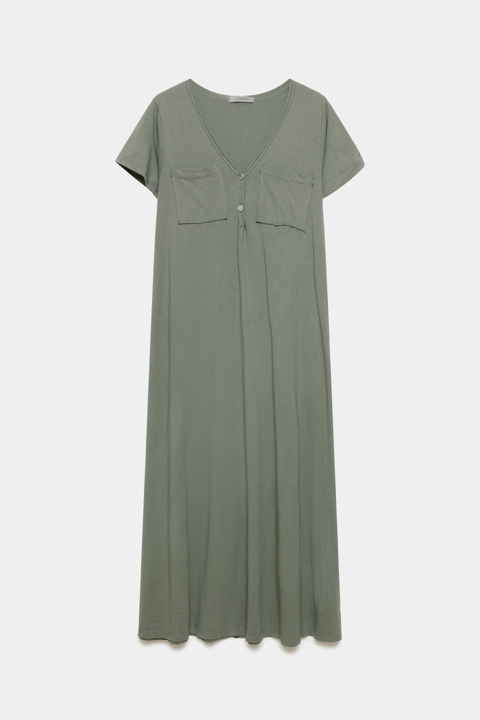 Tejido de algodón. Escote pico. Manga corta. Detalle botones. Bolsillos frontales. Aperturas laterales.