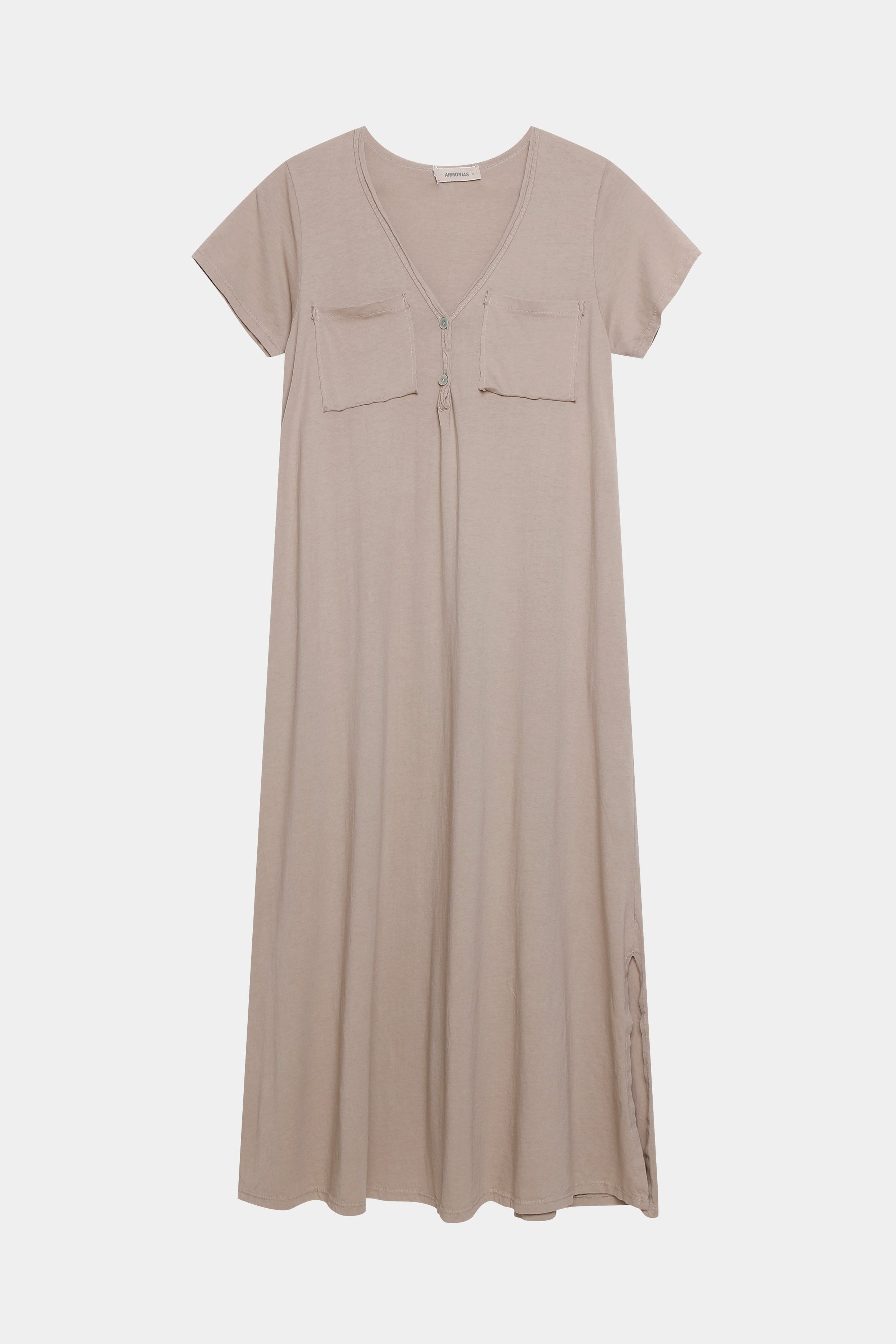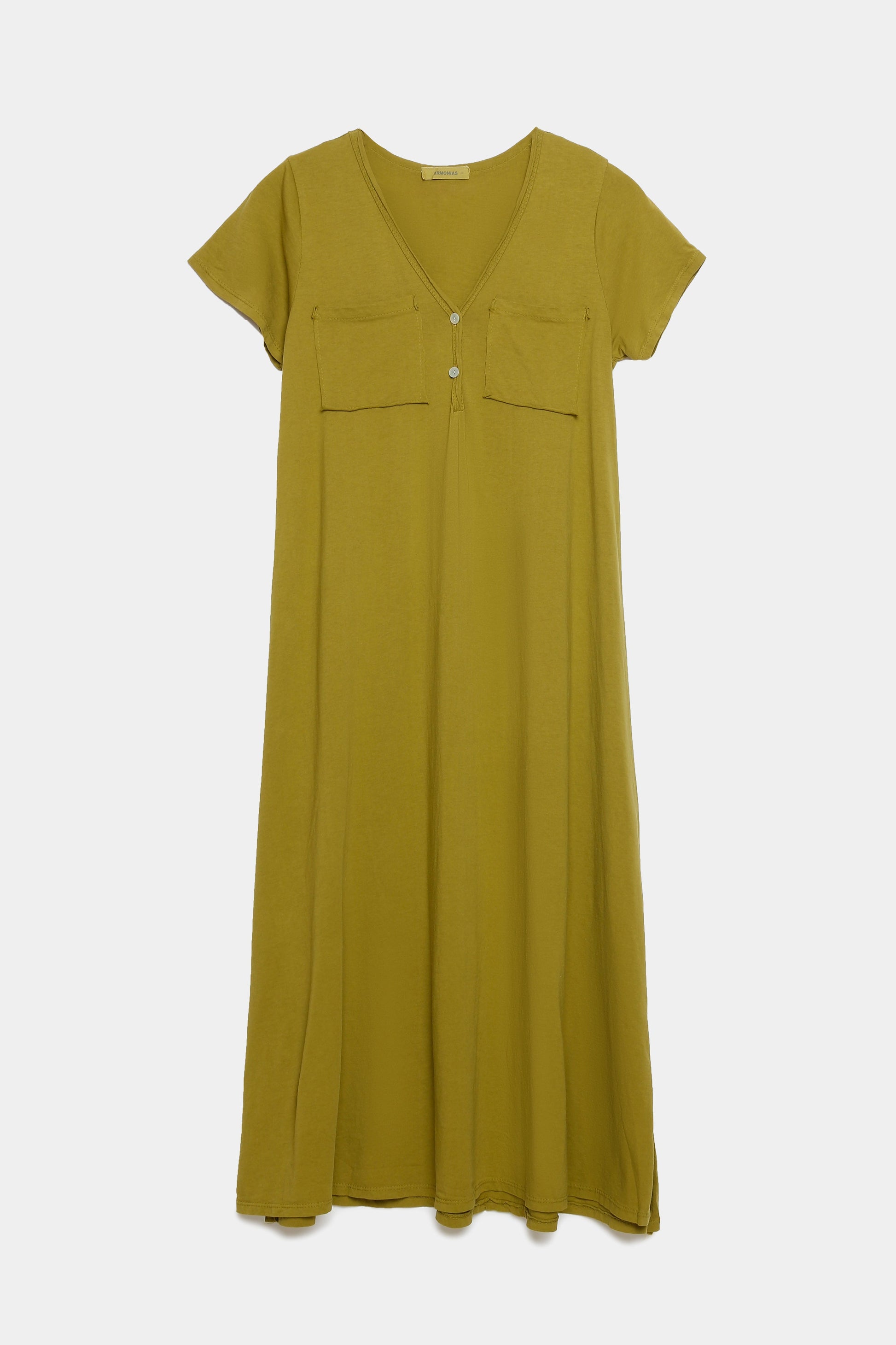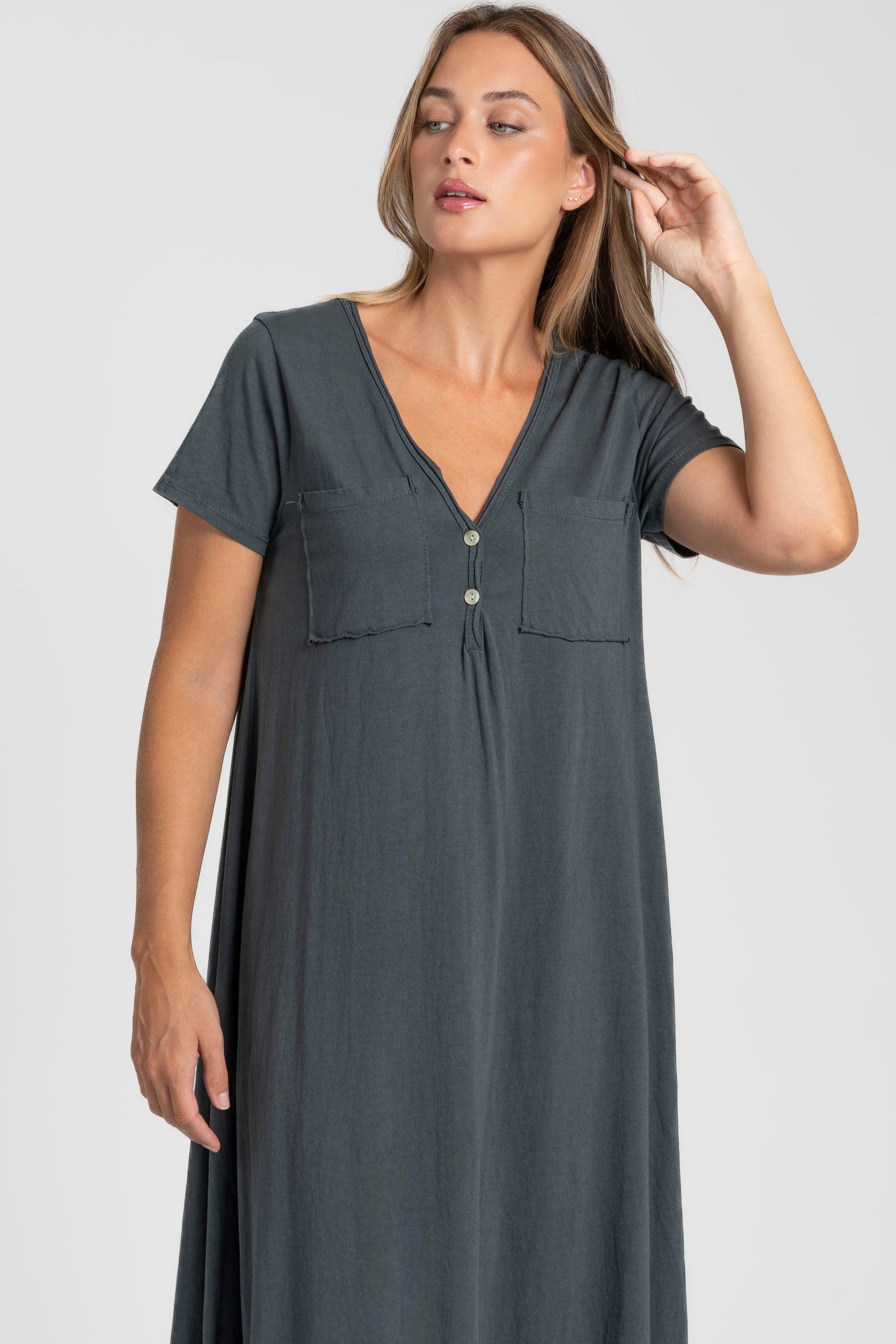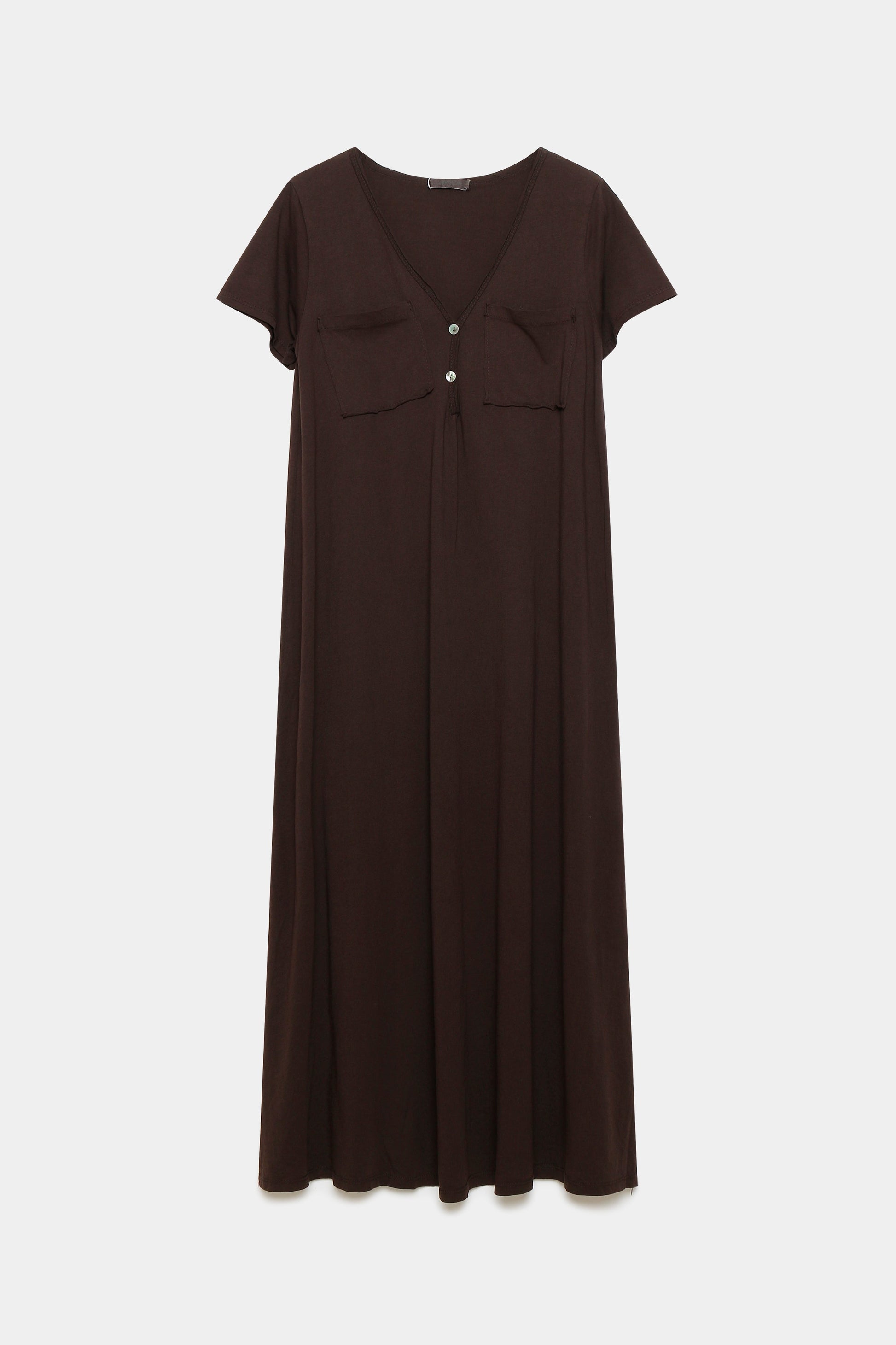 Tejido de algodón. Escote pico. Manga corta. Detalle botones. Bolsillos frontales. Aperturas laterales.
