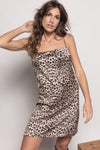 Vestido lencero corto, tejido en satén, diseño fluido, tirantes finos de strass reluciente. Modelo con escote de pico profundo, bajo de corte recto. Sin forrar. Talla modelo: S. Altura modelo: 1,73 m.