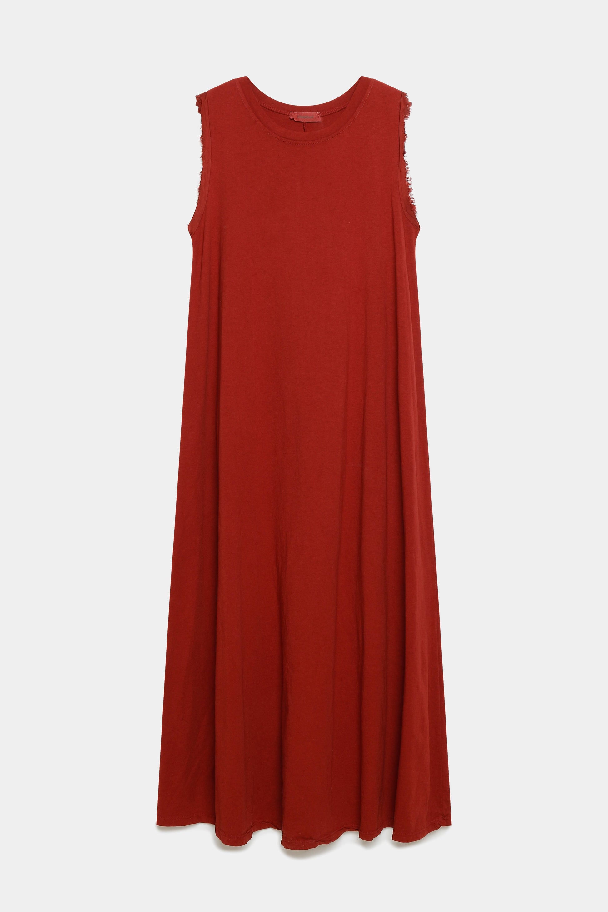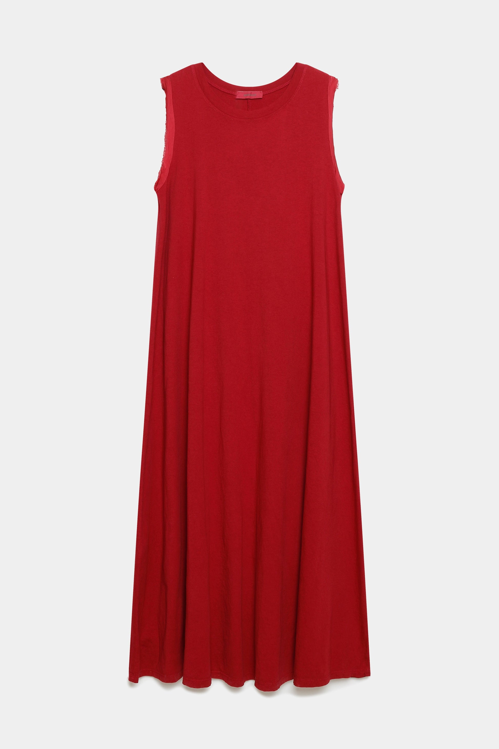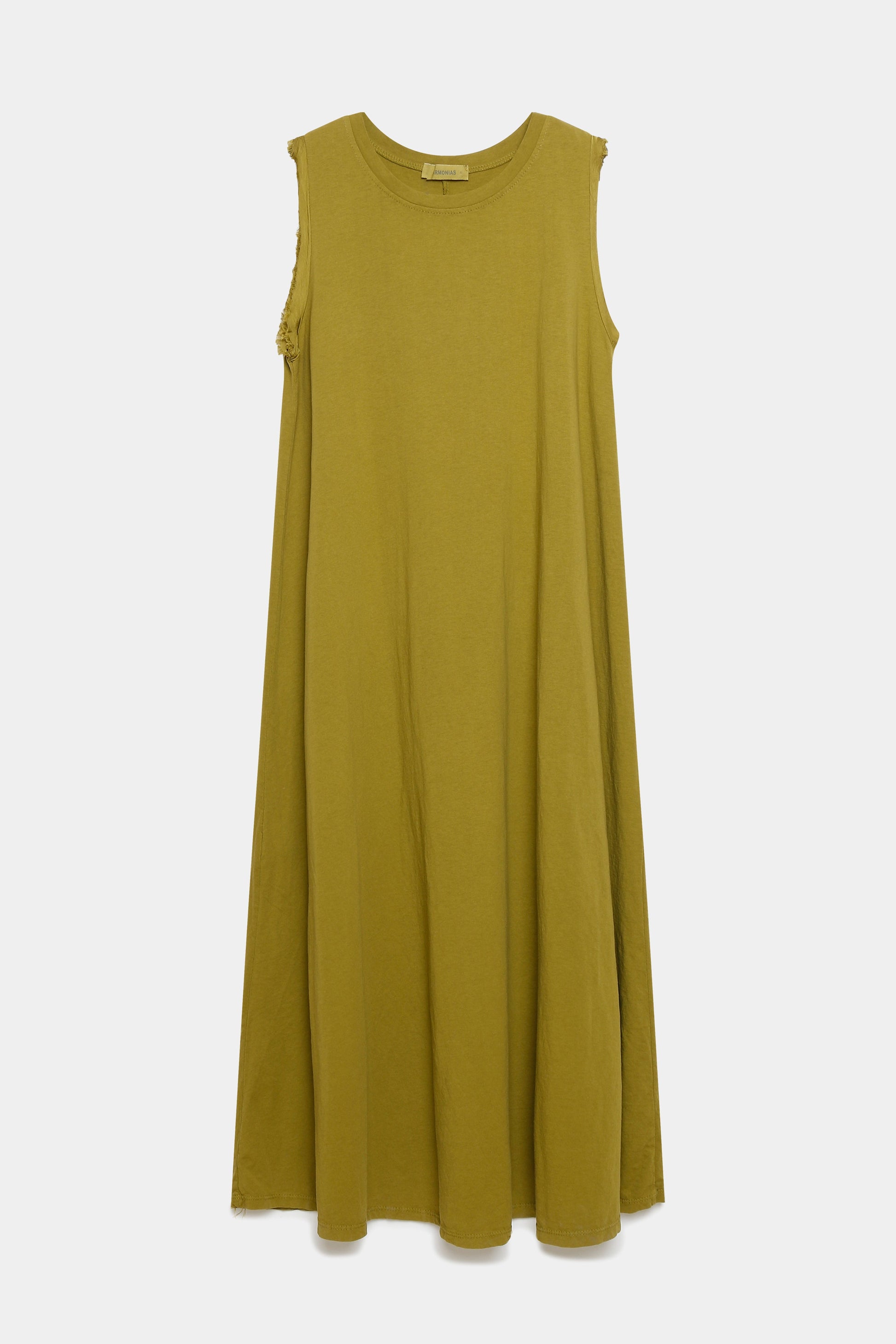 Tejido de algodón. Cuello redondo. Manga sisa. Diseño largo. Tejido raso combinado en la manga.