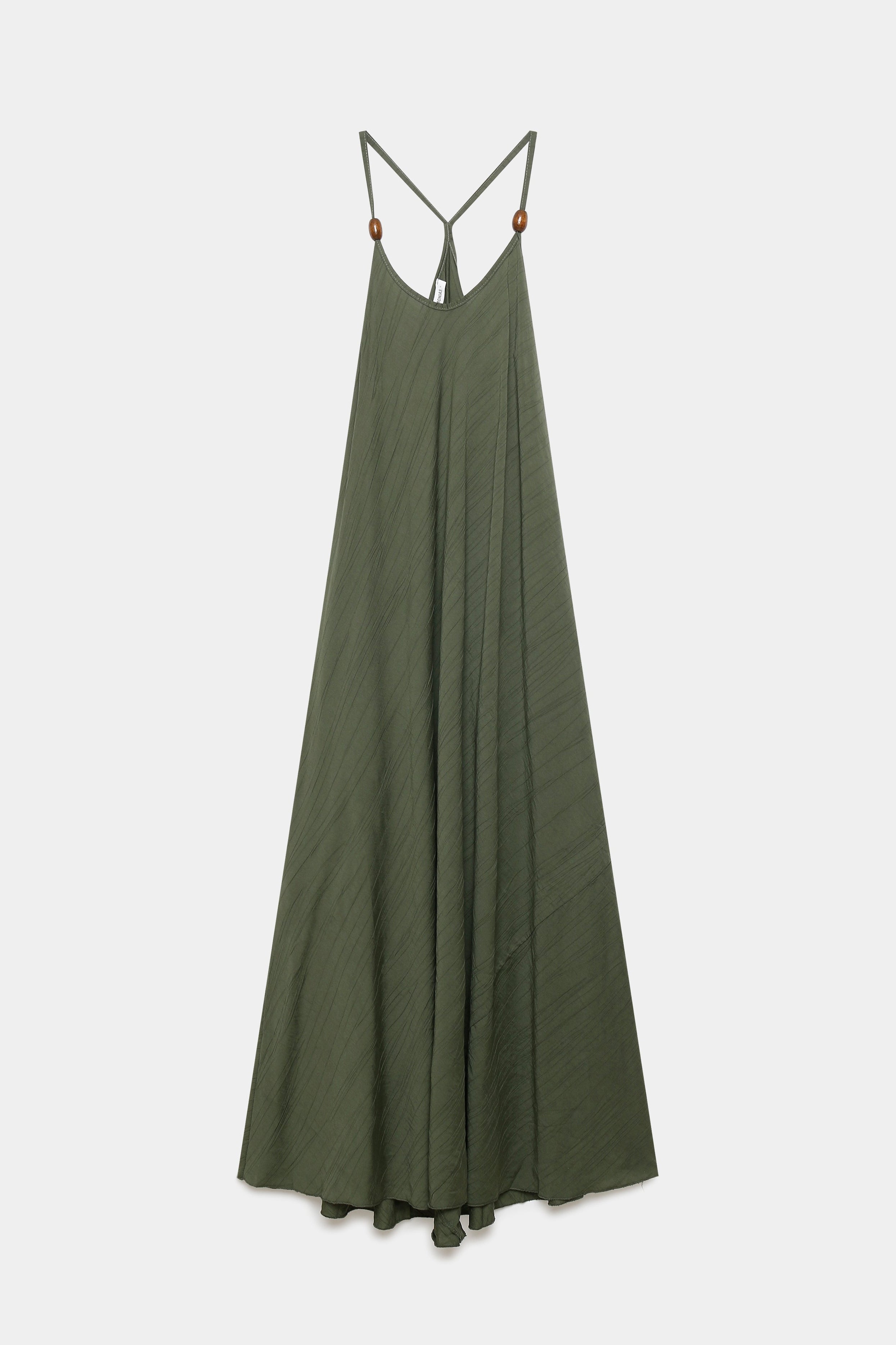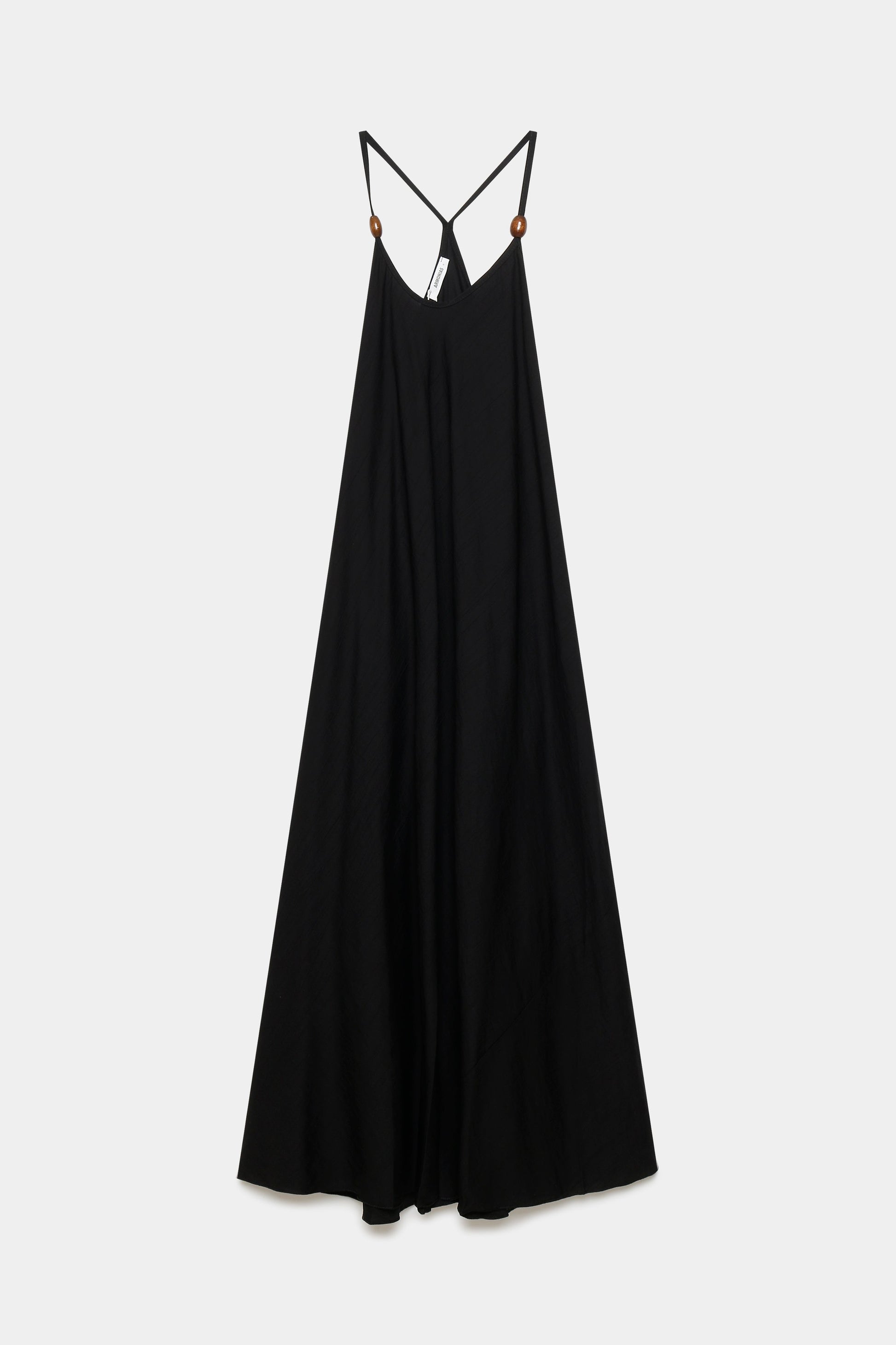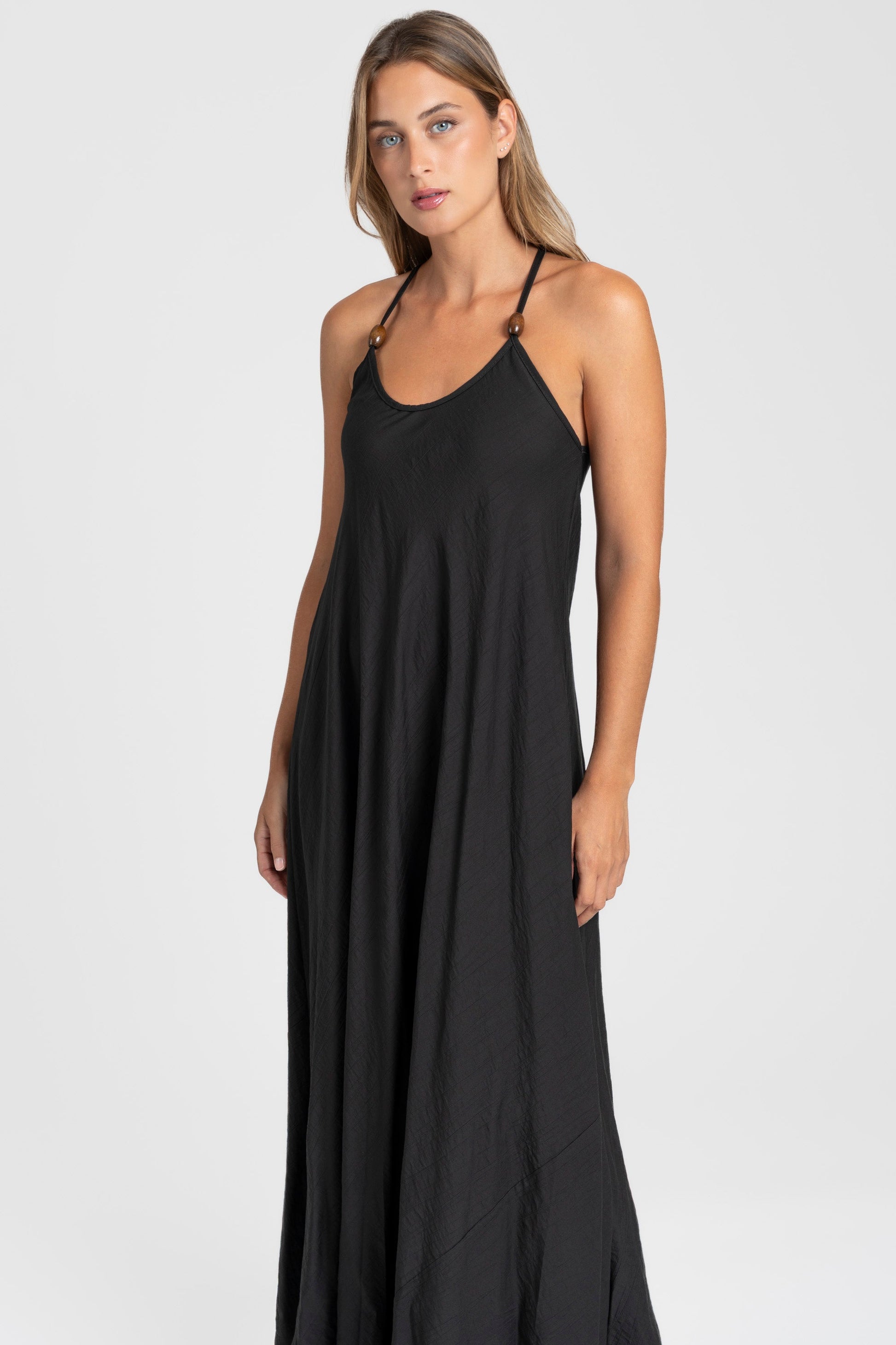 Tejido fluido. Tirantes finos. Escote redondo. Diseño largo.