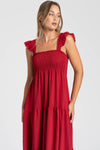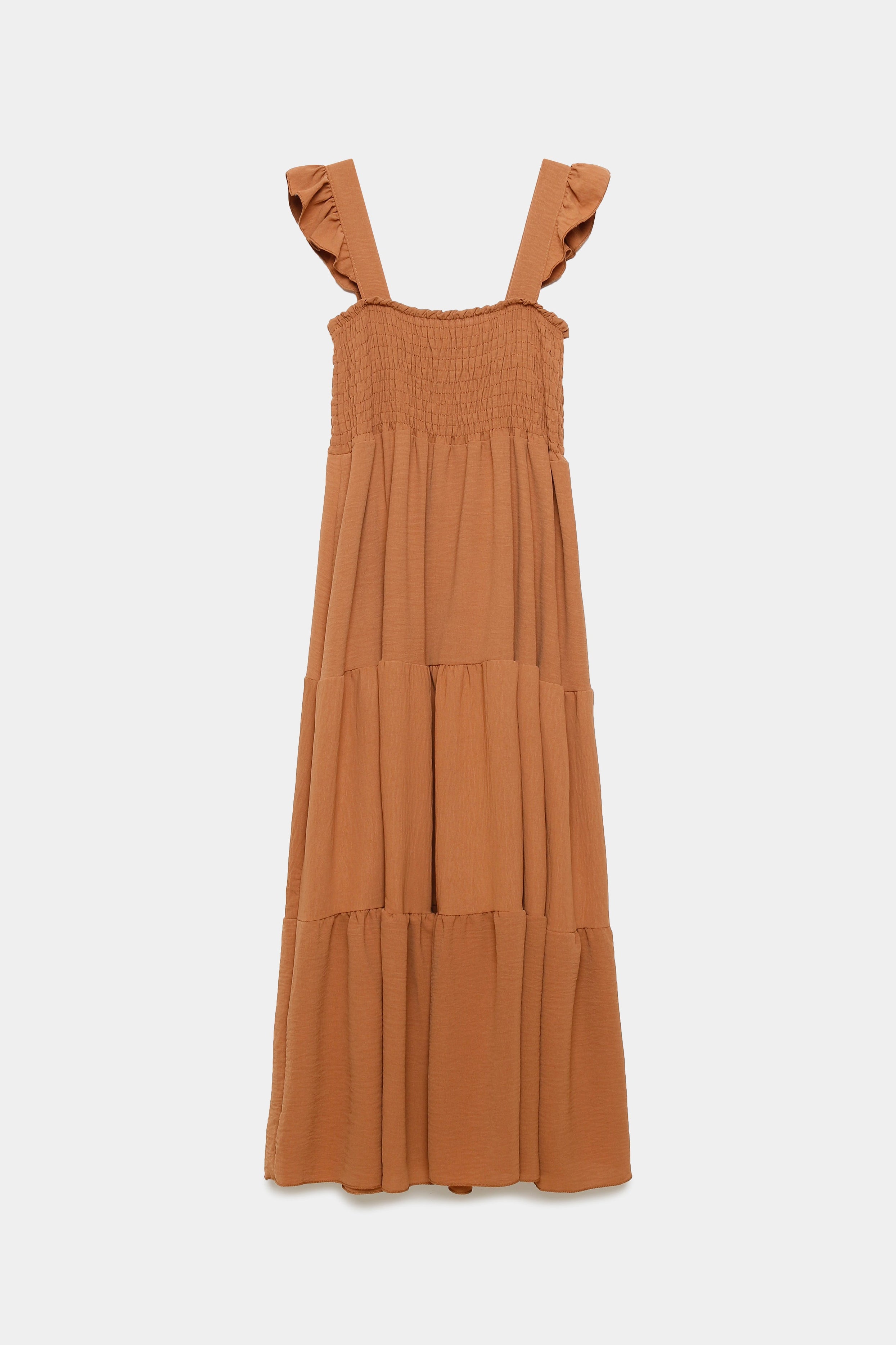 Tejido fluido. Diseño evasé. Diseño largo. Escote cuadrado.
