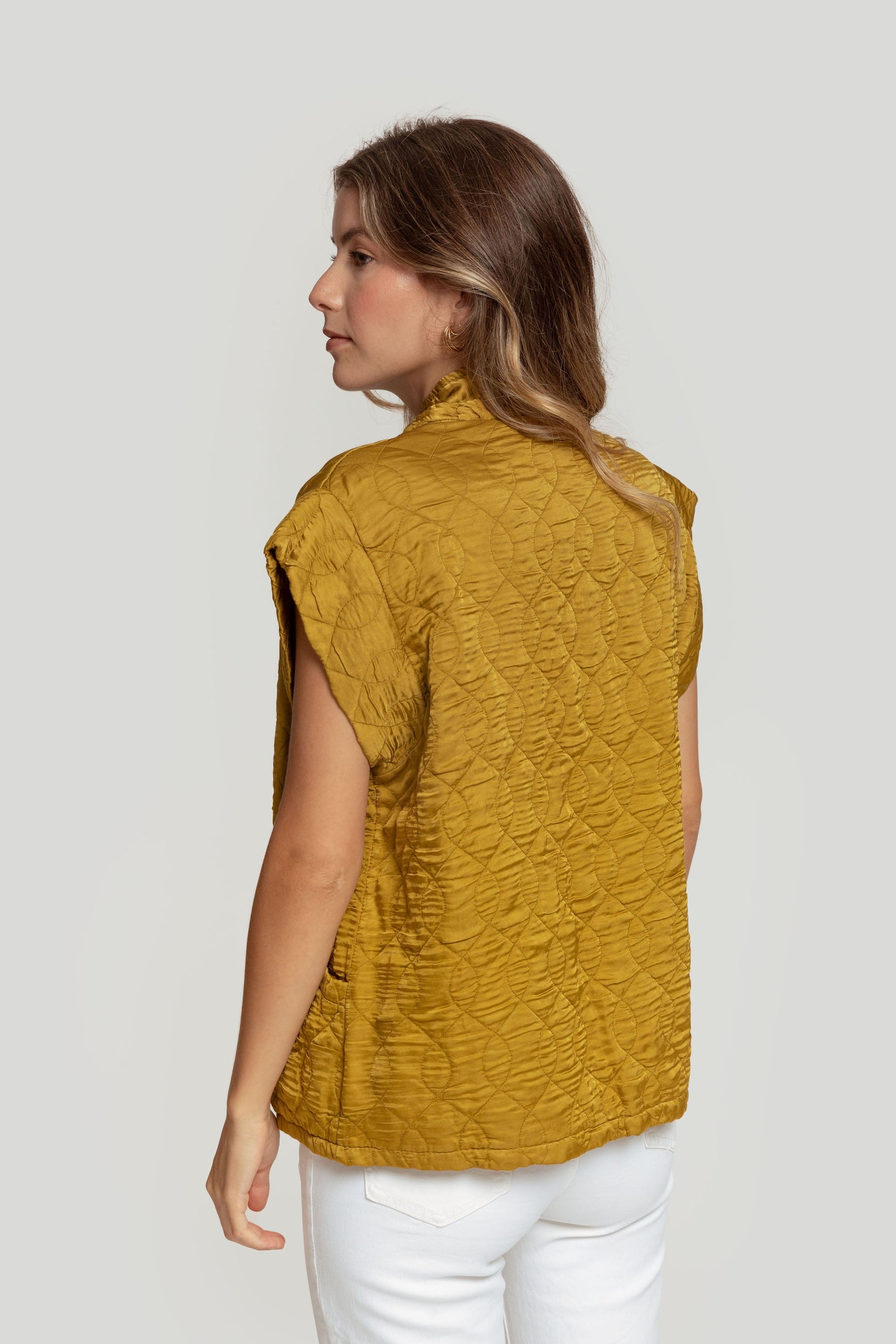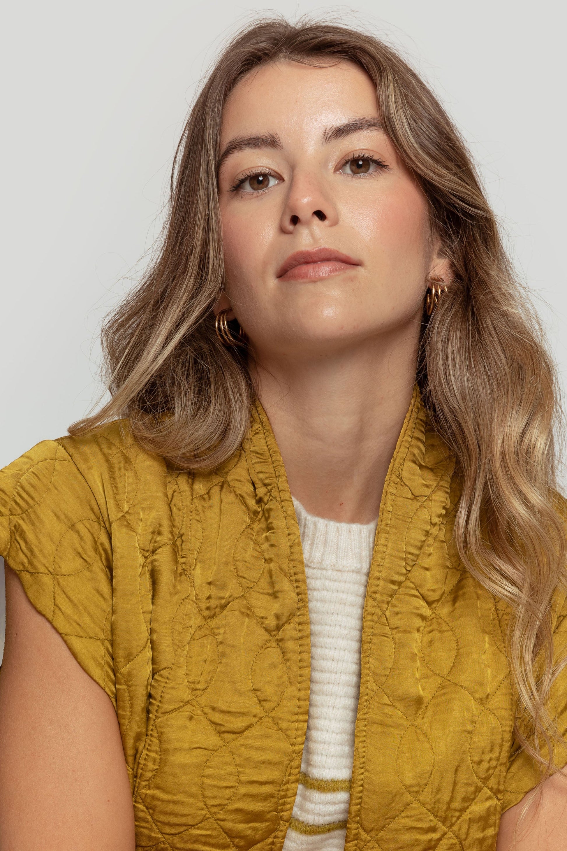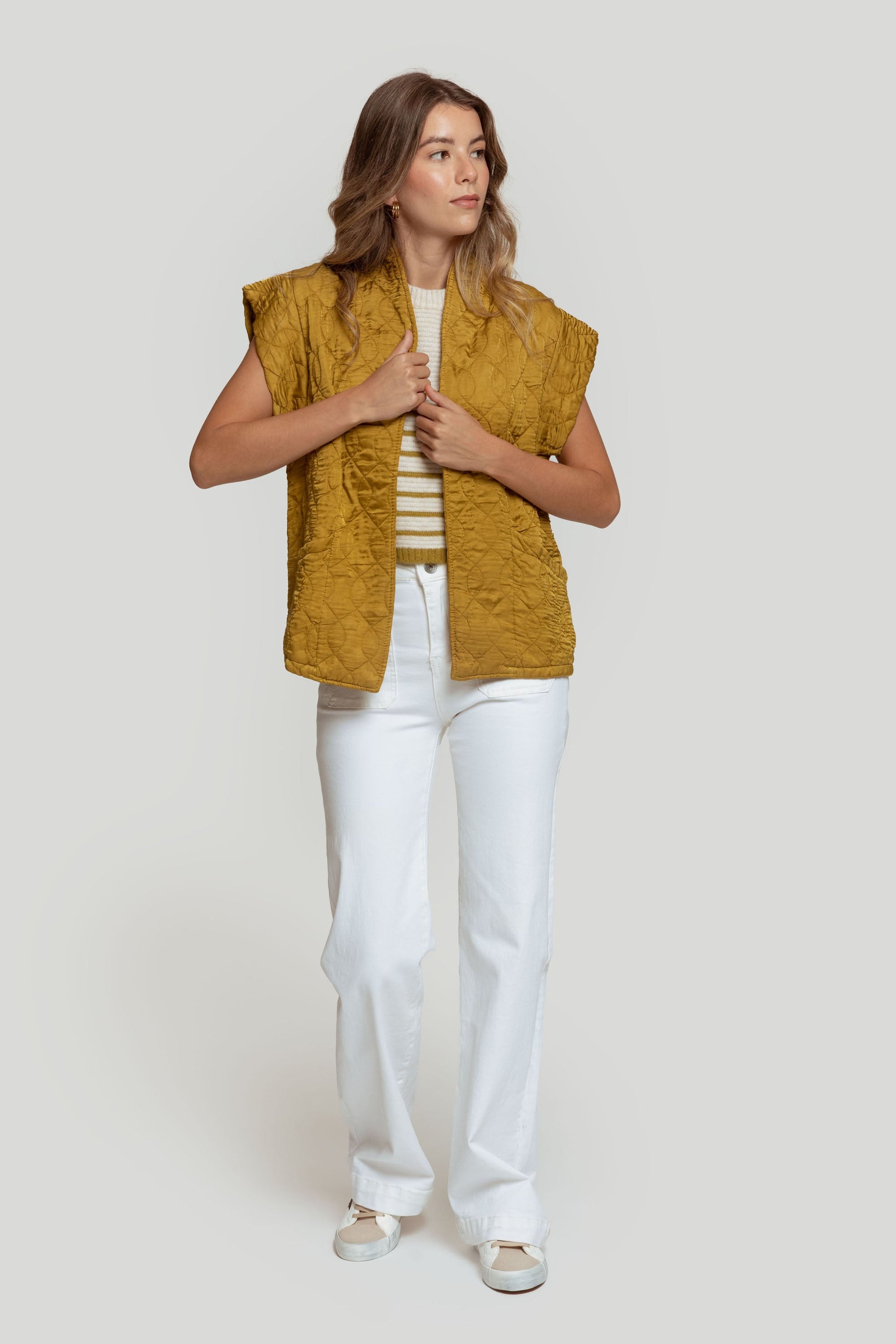 Diseño ligero. Diseño fluido. Cuello chimenea. Sin mangas. Hombros altos. Abierto. Forrado. Talla modelo: S. Altura modelo: 1,70 m.