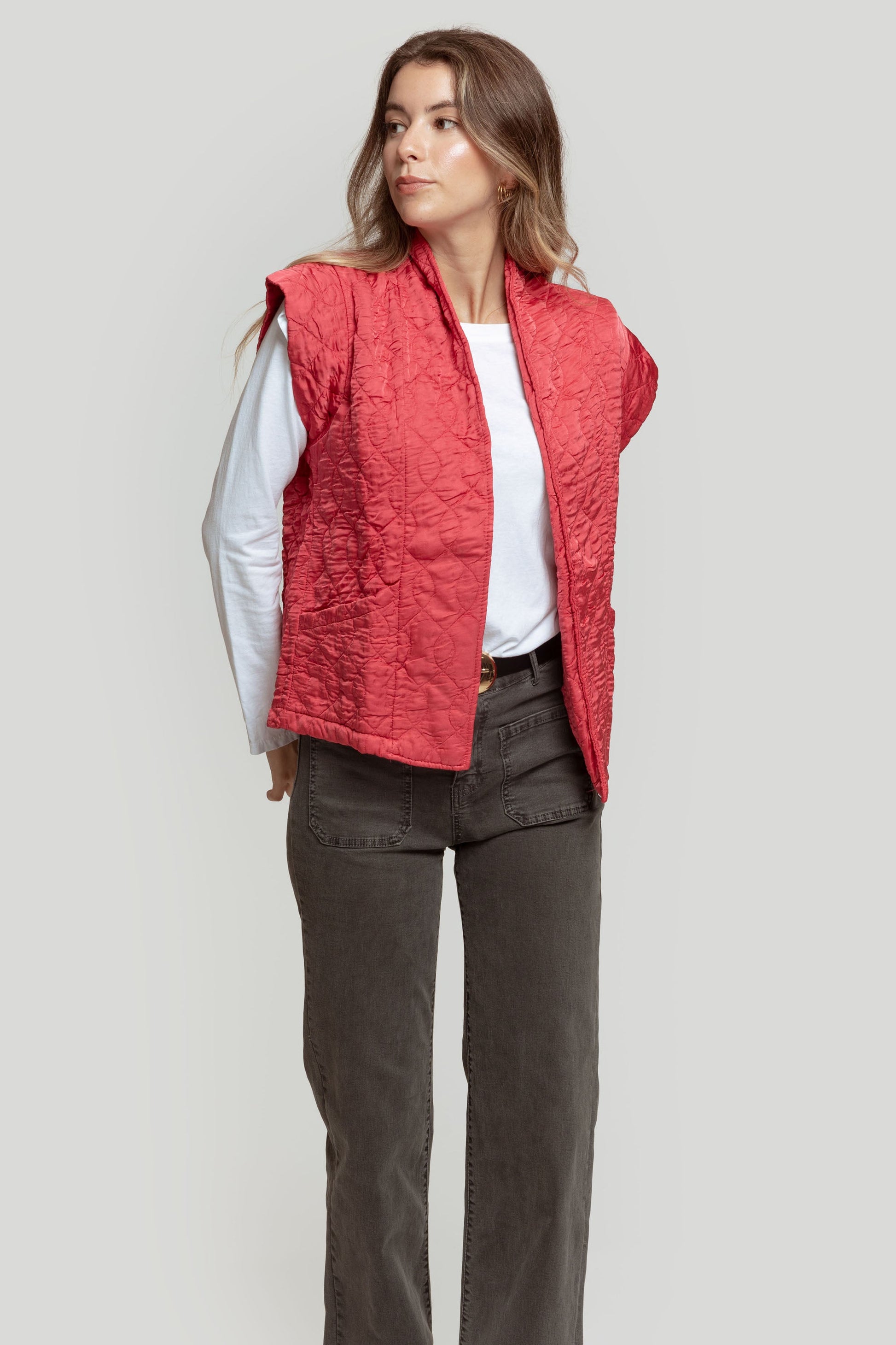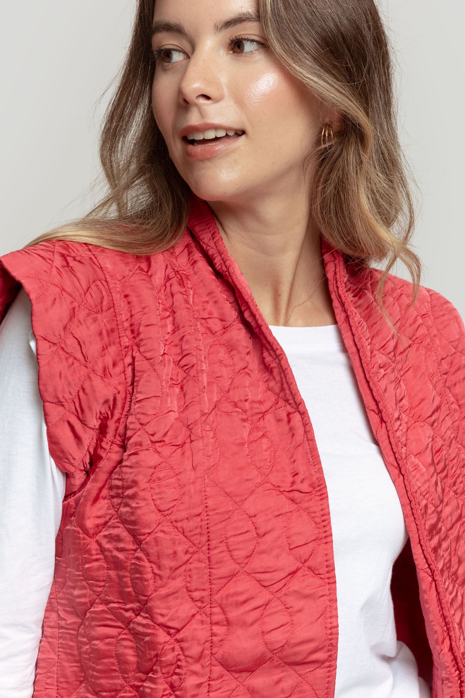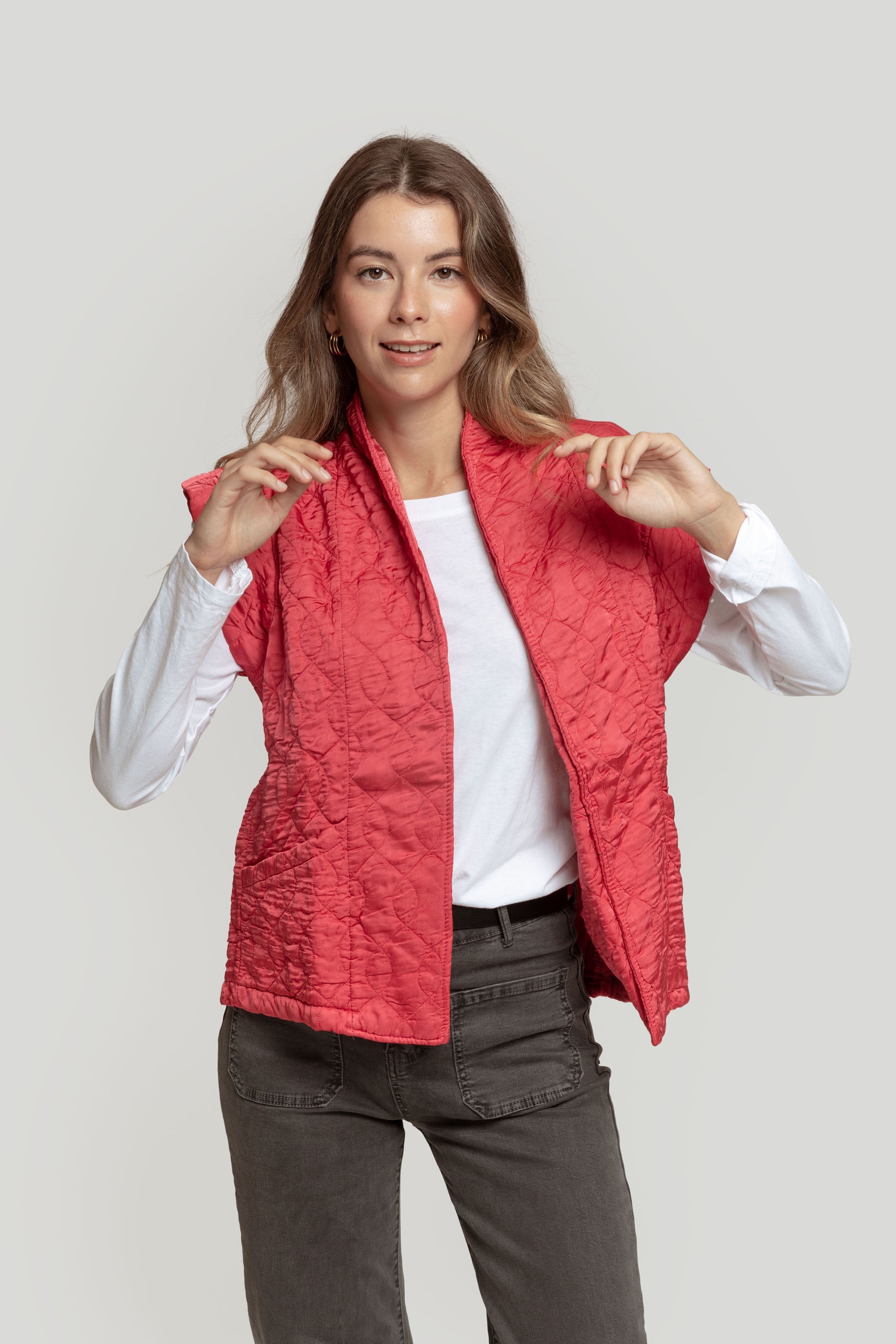 Diseño ligero. Diseño fluido. Cuello chimenea. Sin mangas. Hombros altos. Abierto. Forrado. Talla modelo: S. Altura modelo: 1,70 m.