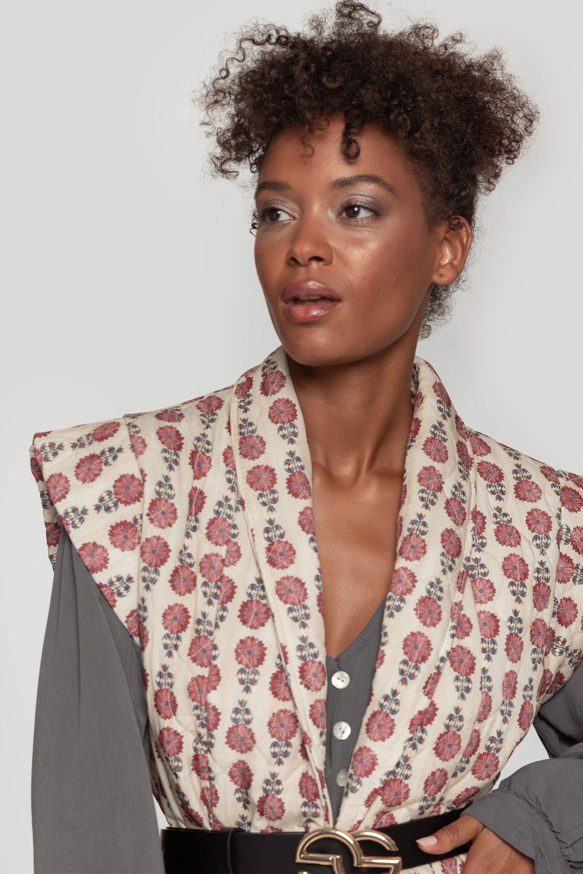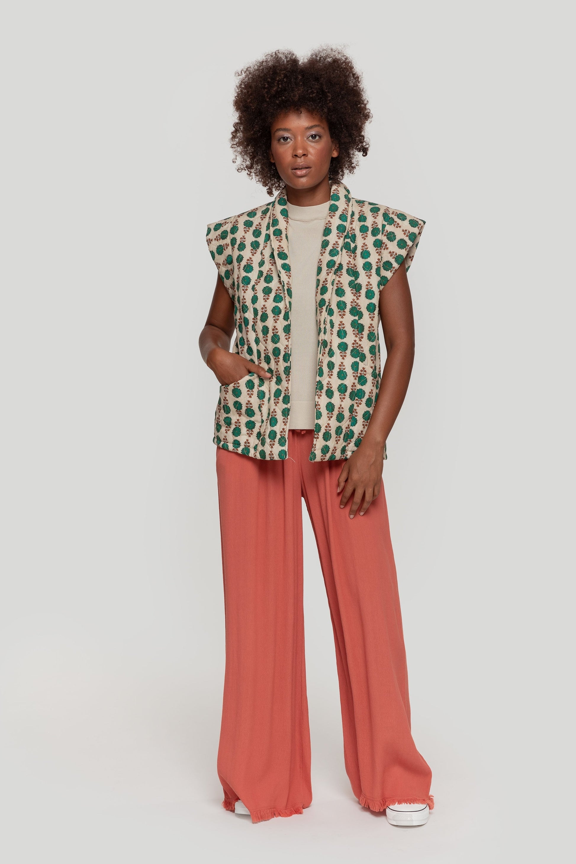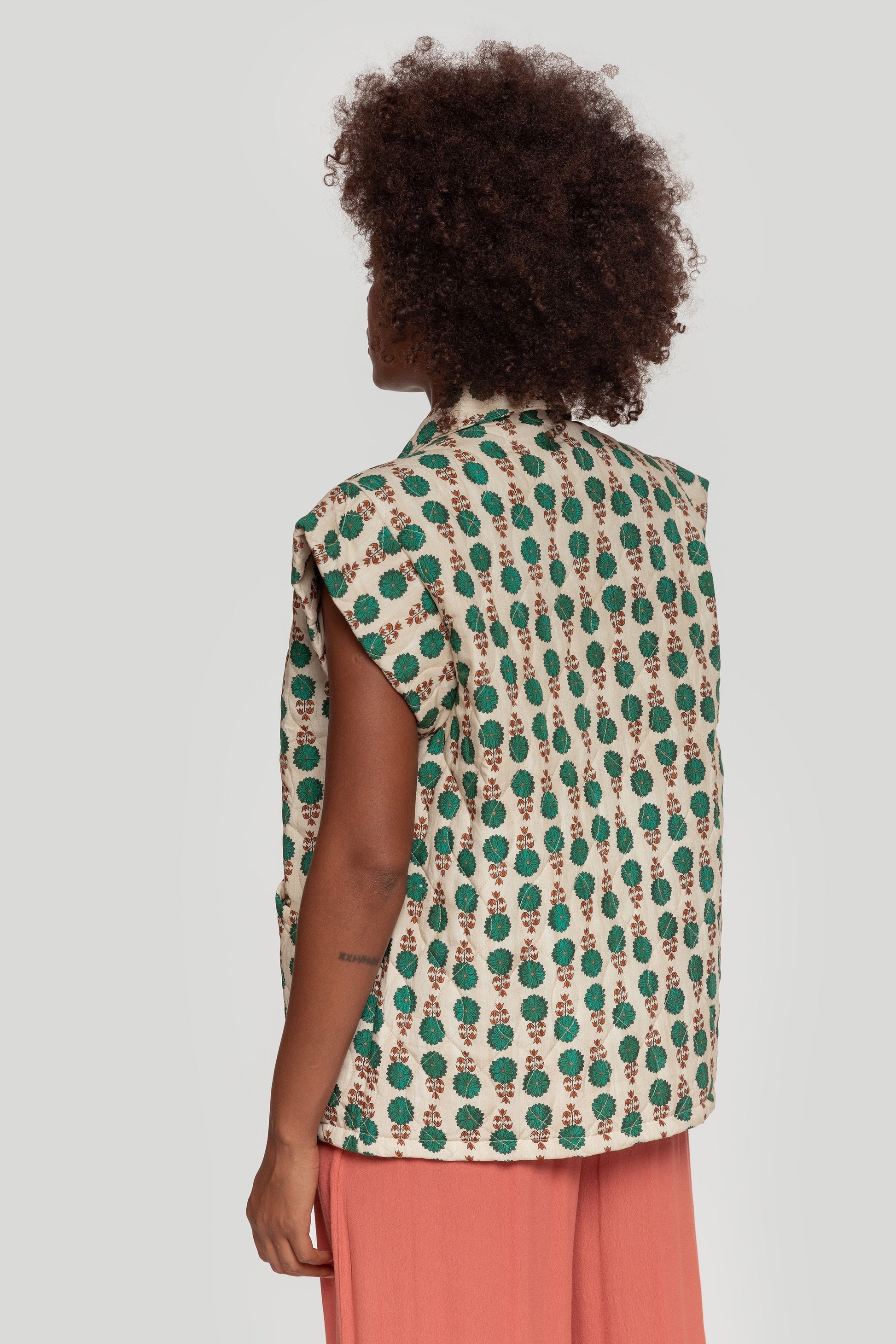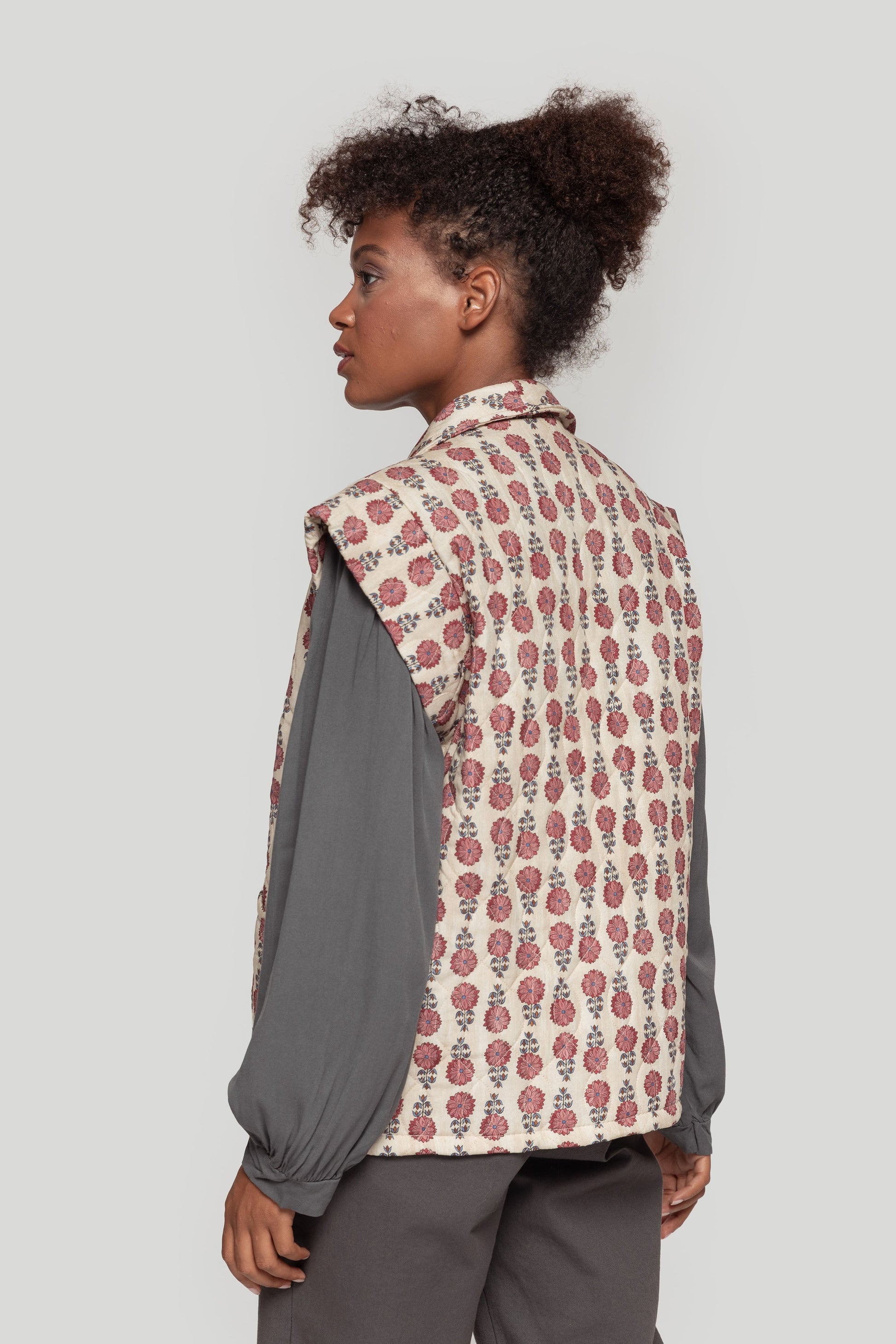 Tejido acolchado. Diseño estampado. Diseño entallado. Cuello solapas. Sin mangas. Abierto. Forrado. Talla modelo: S. Altura modelo: 1,70 m.
