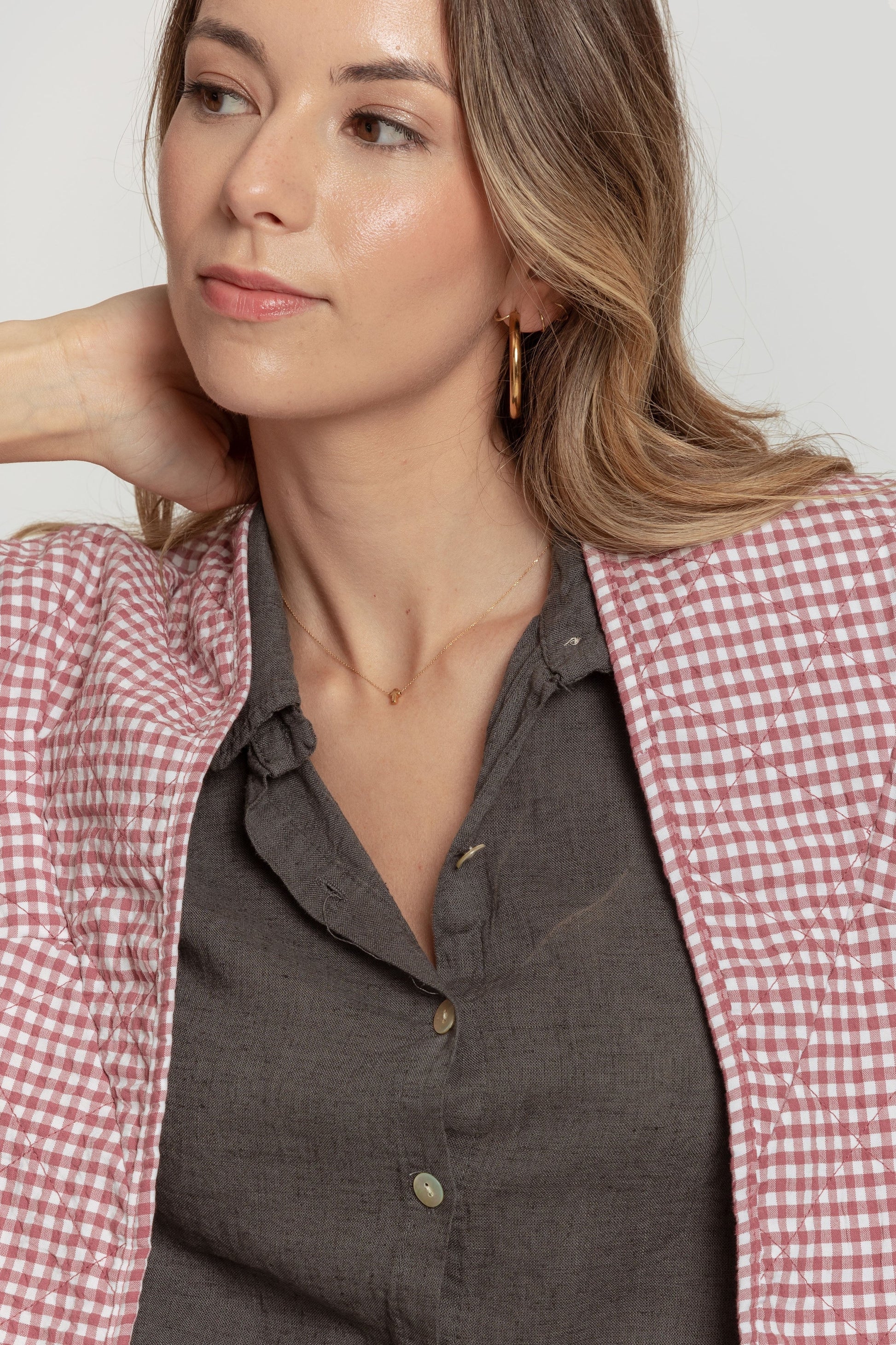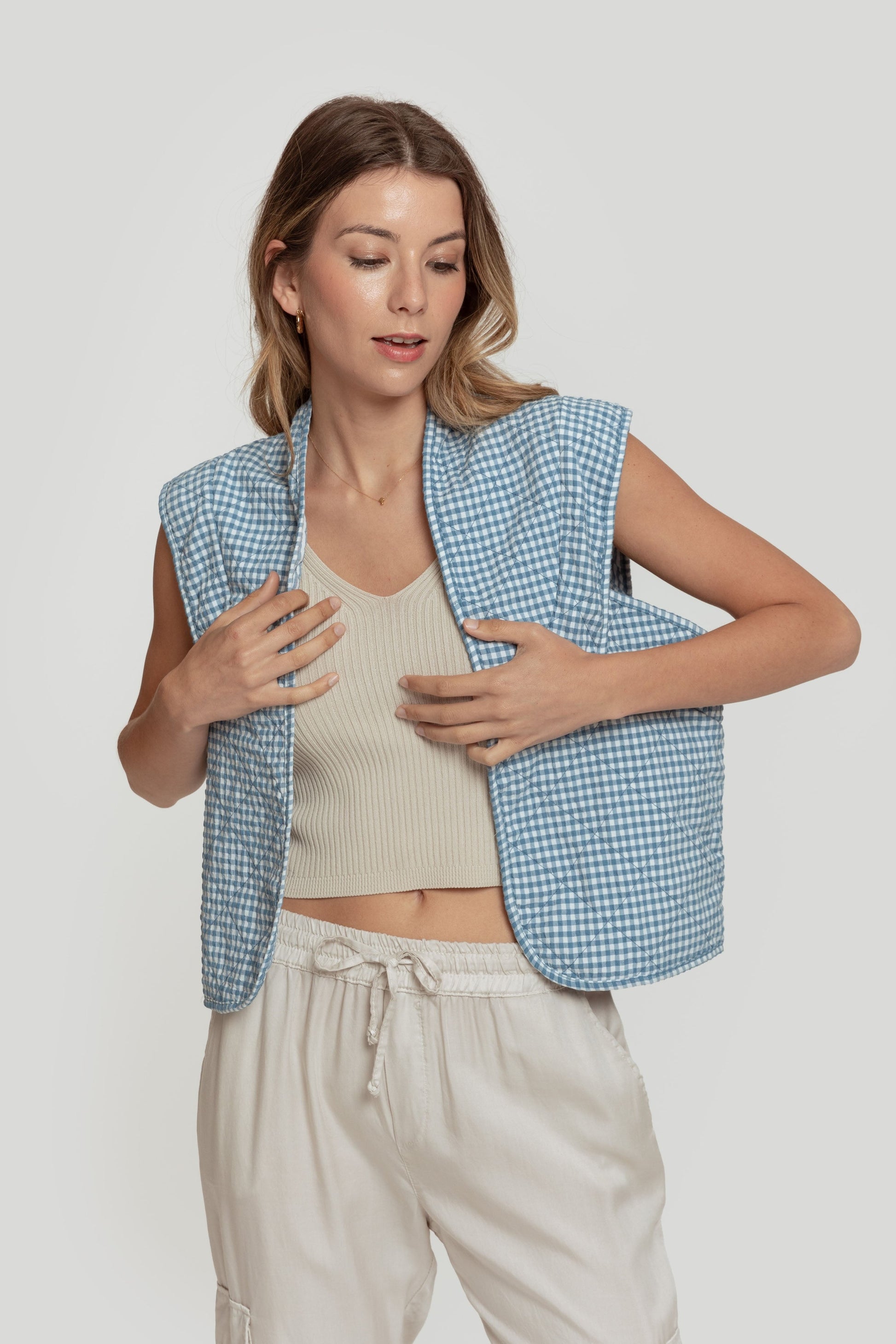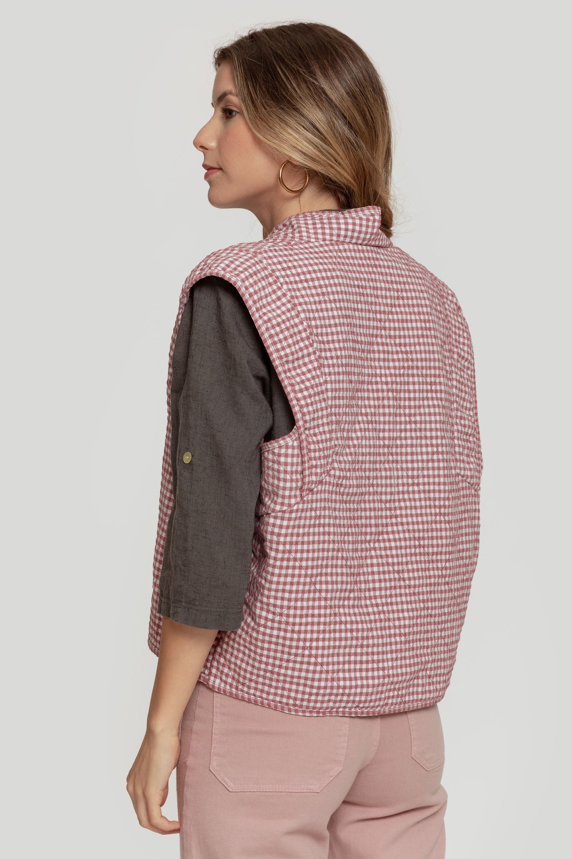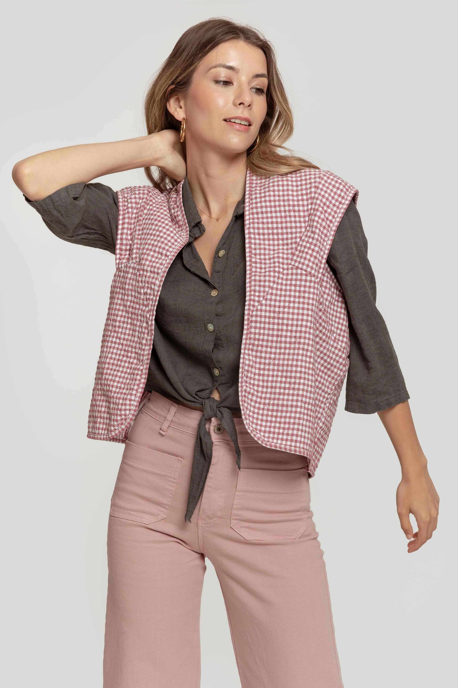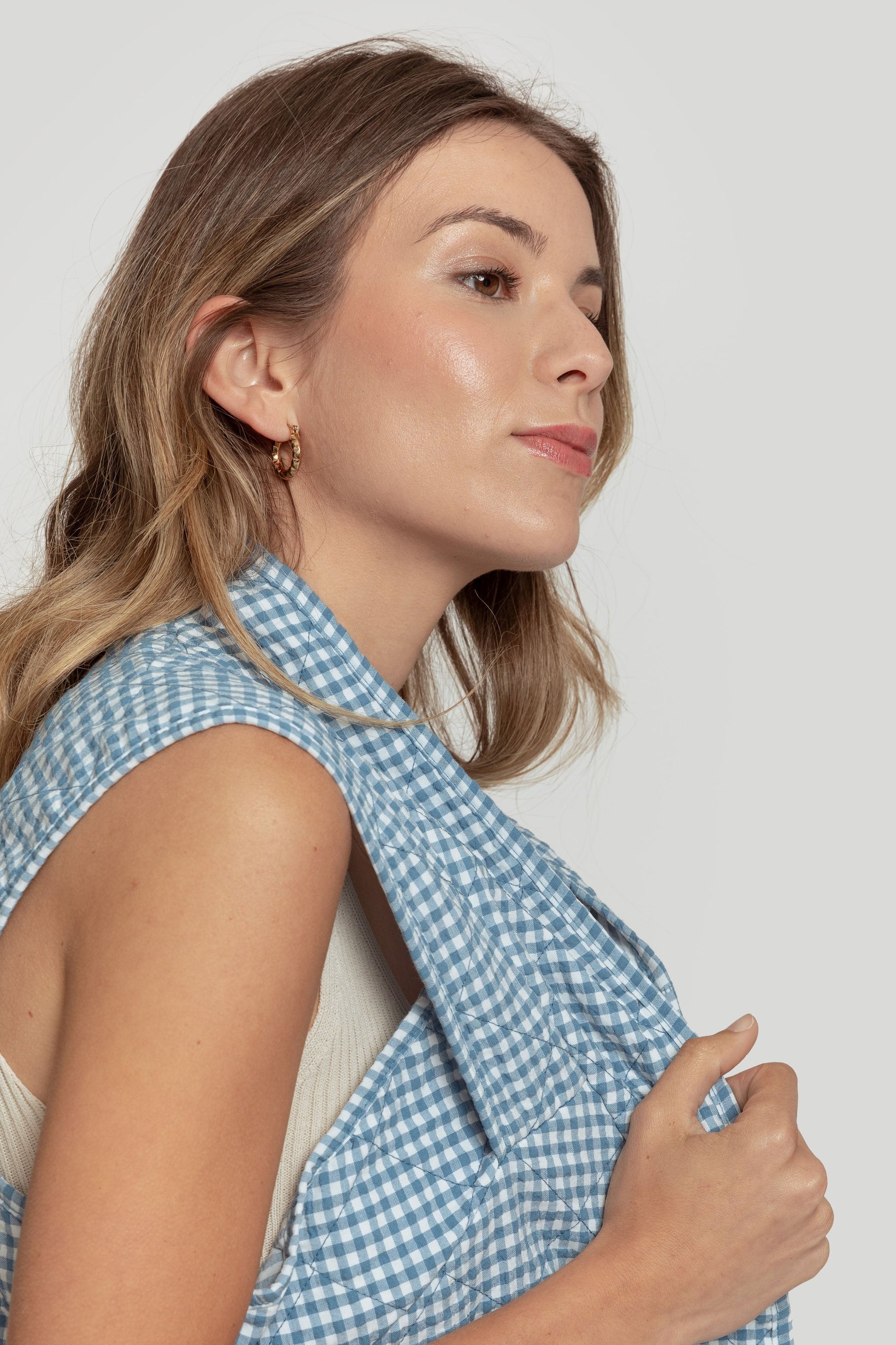 Tejido mezcla de algodón. Diseño estampado. Diseño recto. Cuello chimenea. Manga sisa. Hombros estructurados. Sin cierre. Talla modelo: M. Altura modelo: 1,70 m.