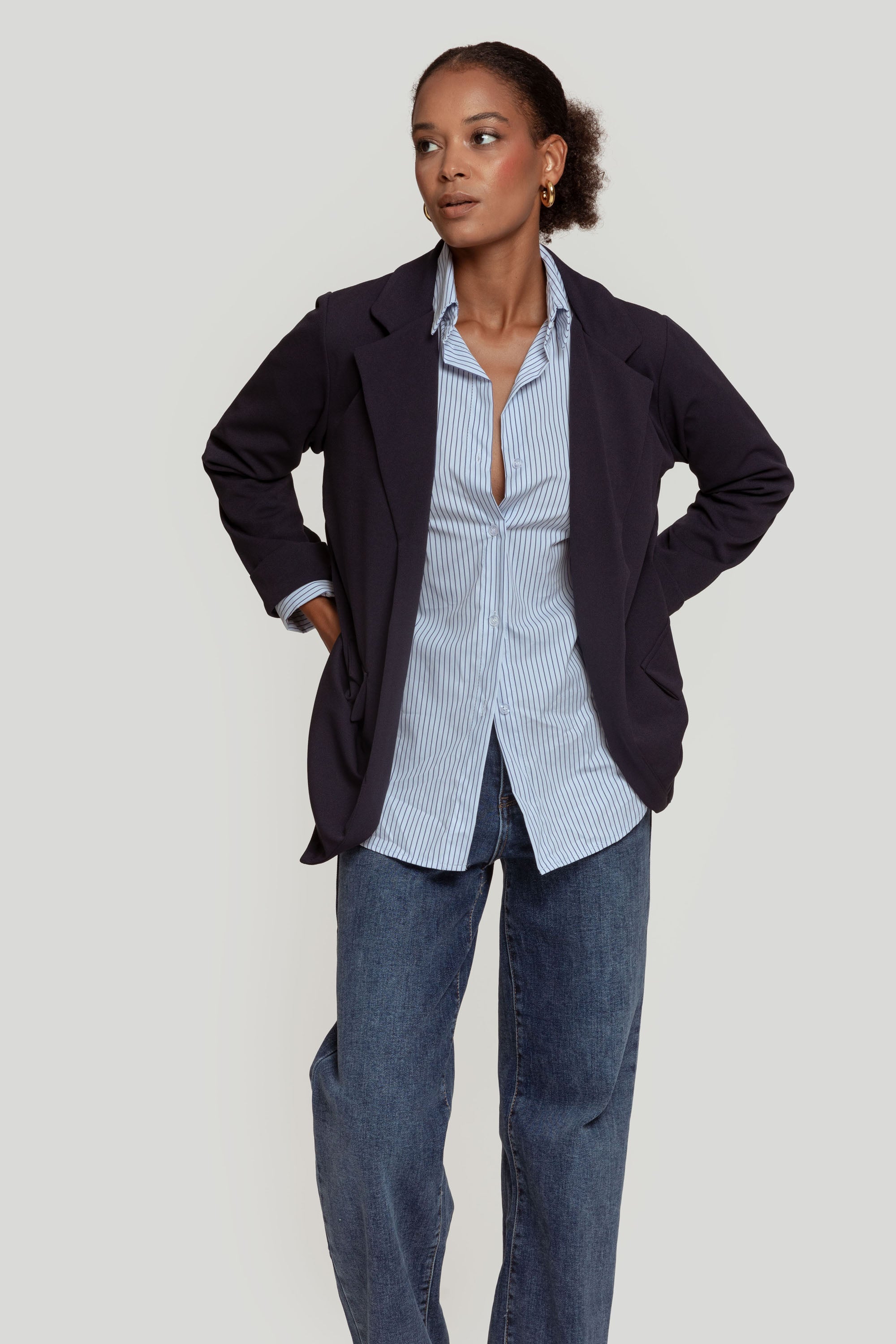 Tejido fluido. Diseño recto. Cuello solapa. Solapas con muesca. Manga larga. Puño remangado. Hombros estructurados. Solapas decorativas. Talla modelo: S. Altura modelo 1,66 m.