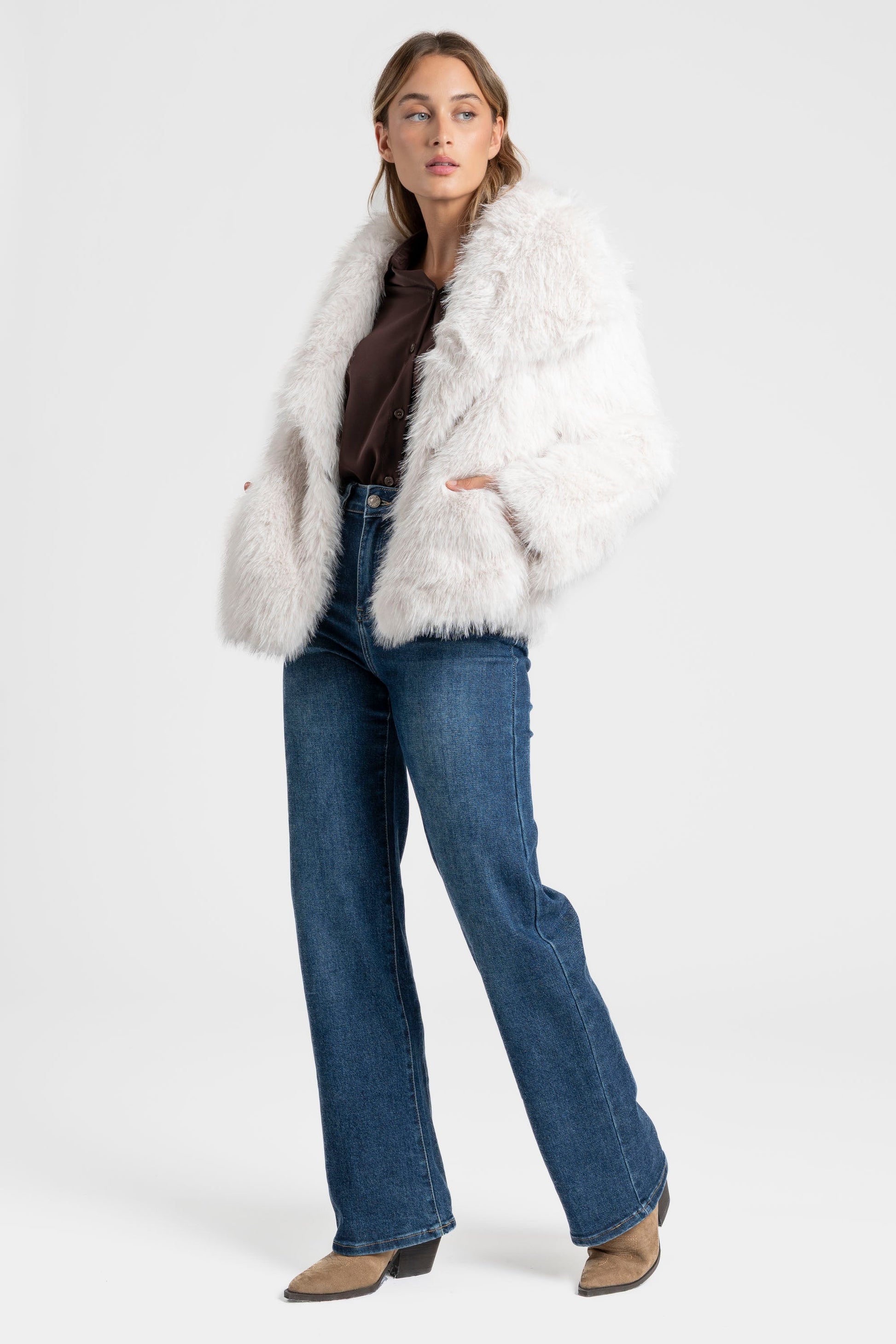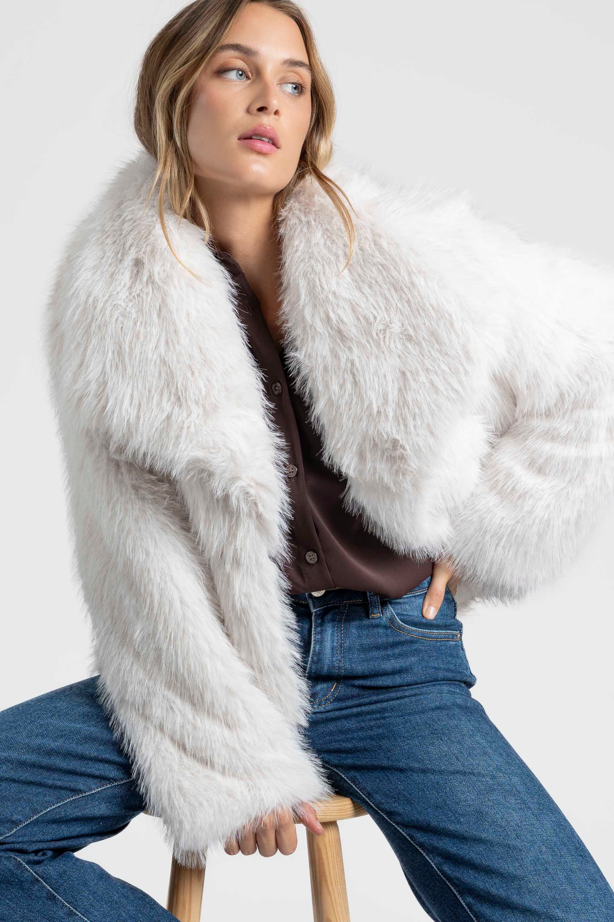Cuello solapa y manga larga. Bolsillos laterales ocultos. Cierre frontal con broches de presión.