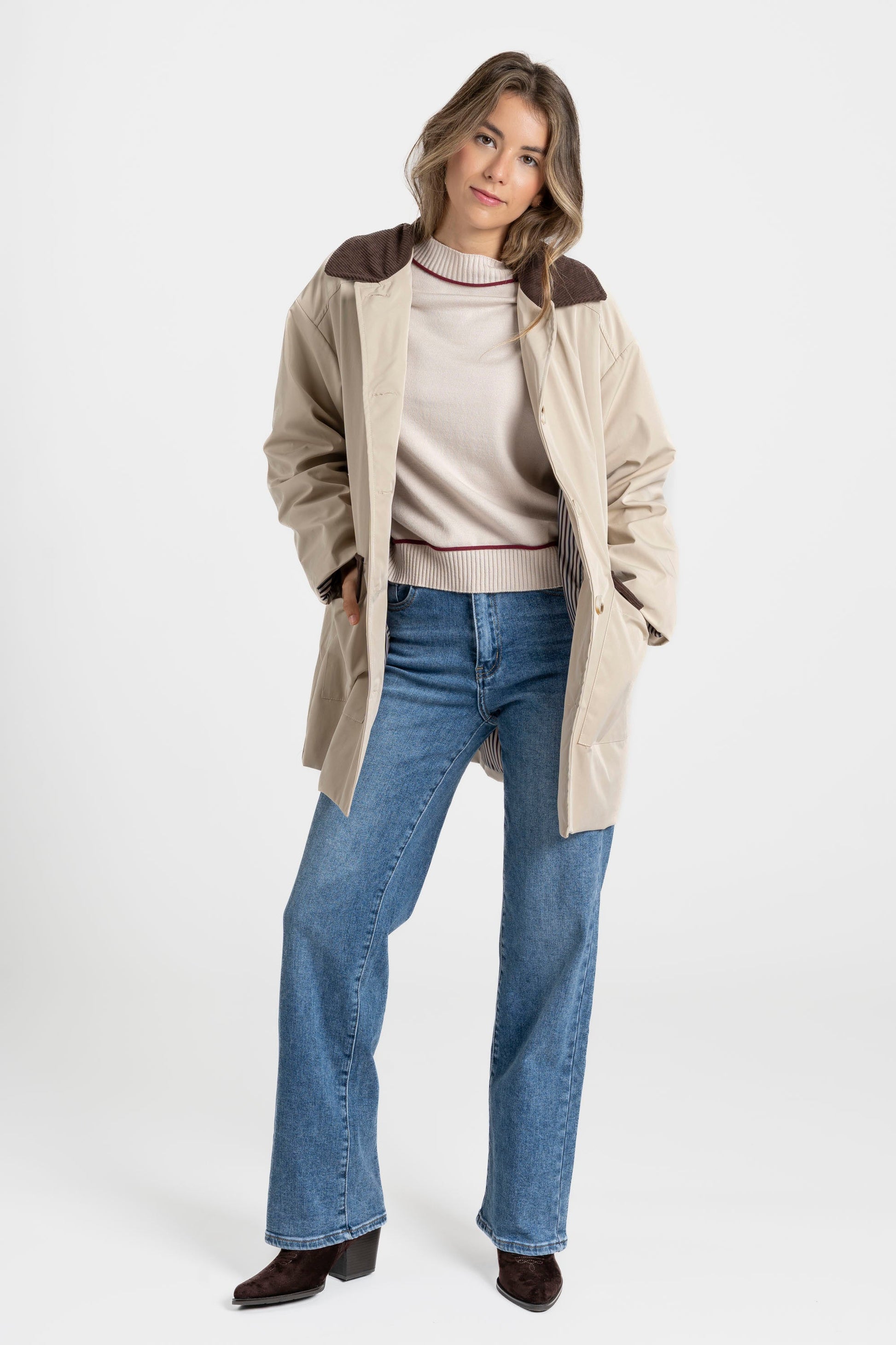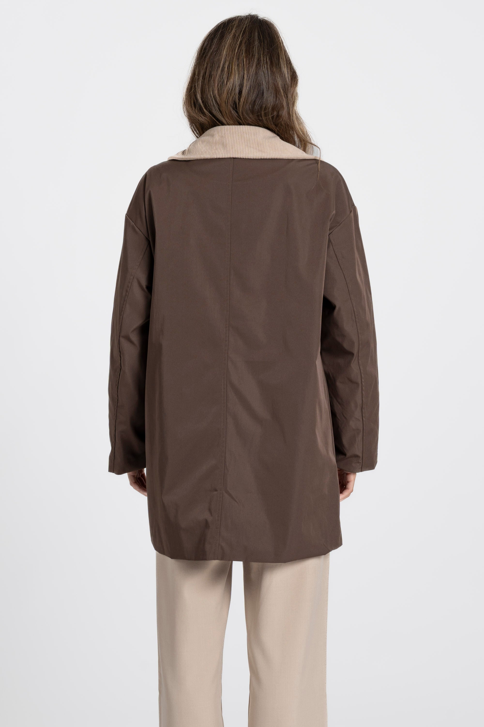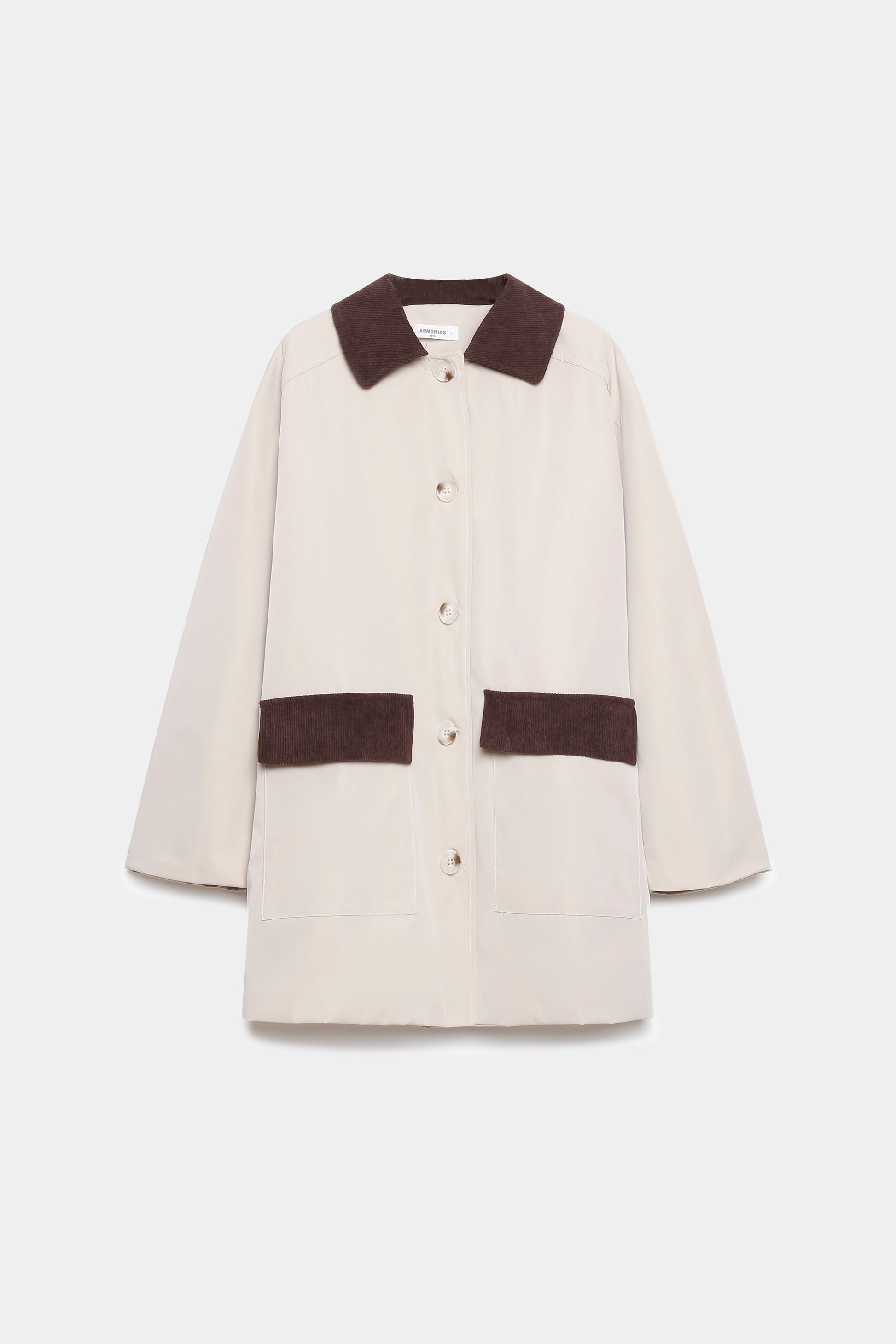 Cuello solapa de pana. Manga larga. Bolsillos frontales. Cierre de botones. Interior forrado.