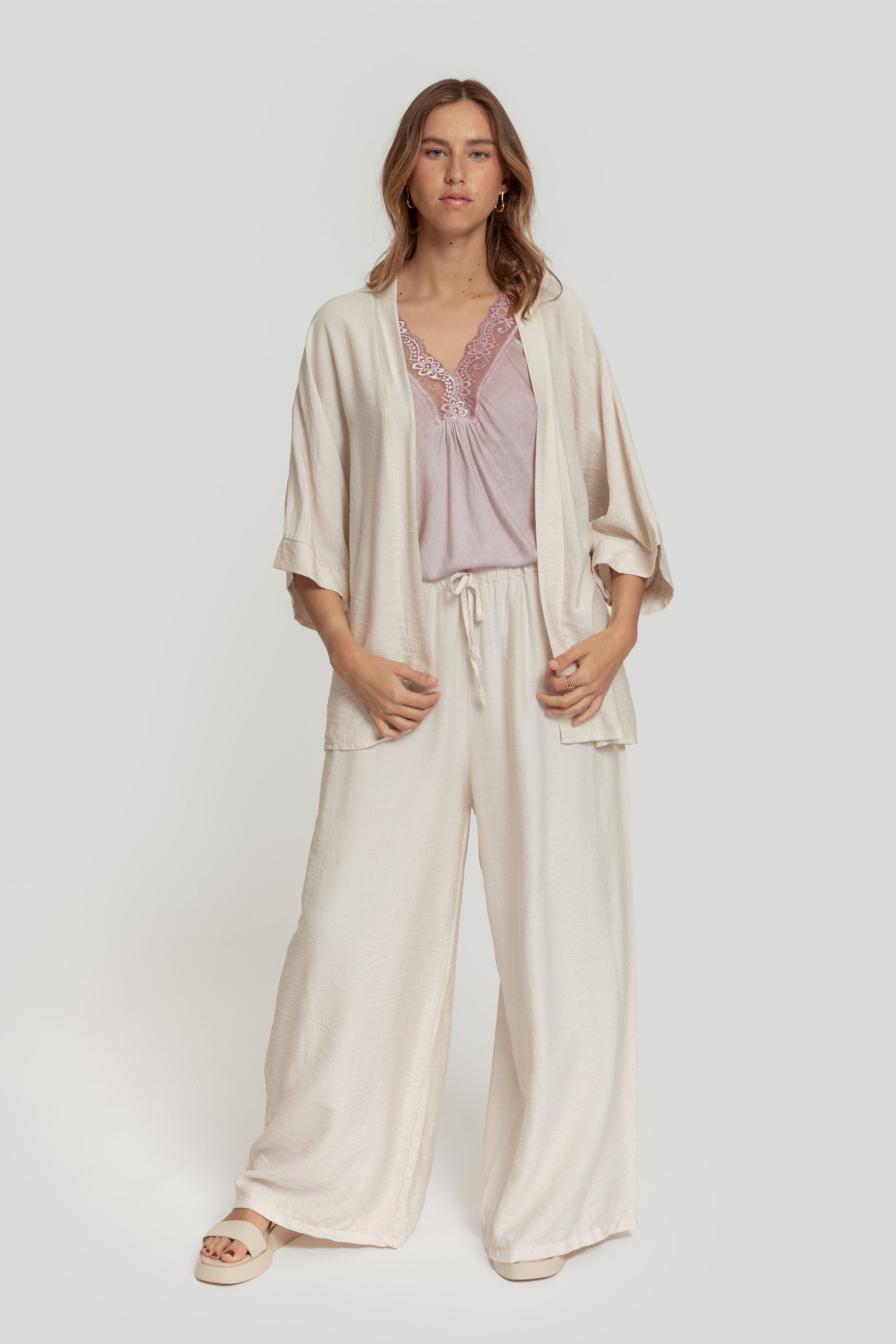 Tejido fluido. Diseño recto. Diseño amplio. Manga amplia. Abierta. Altura modelo: 1,66 m.