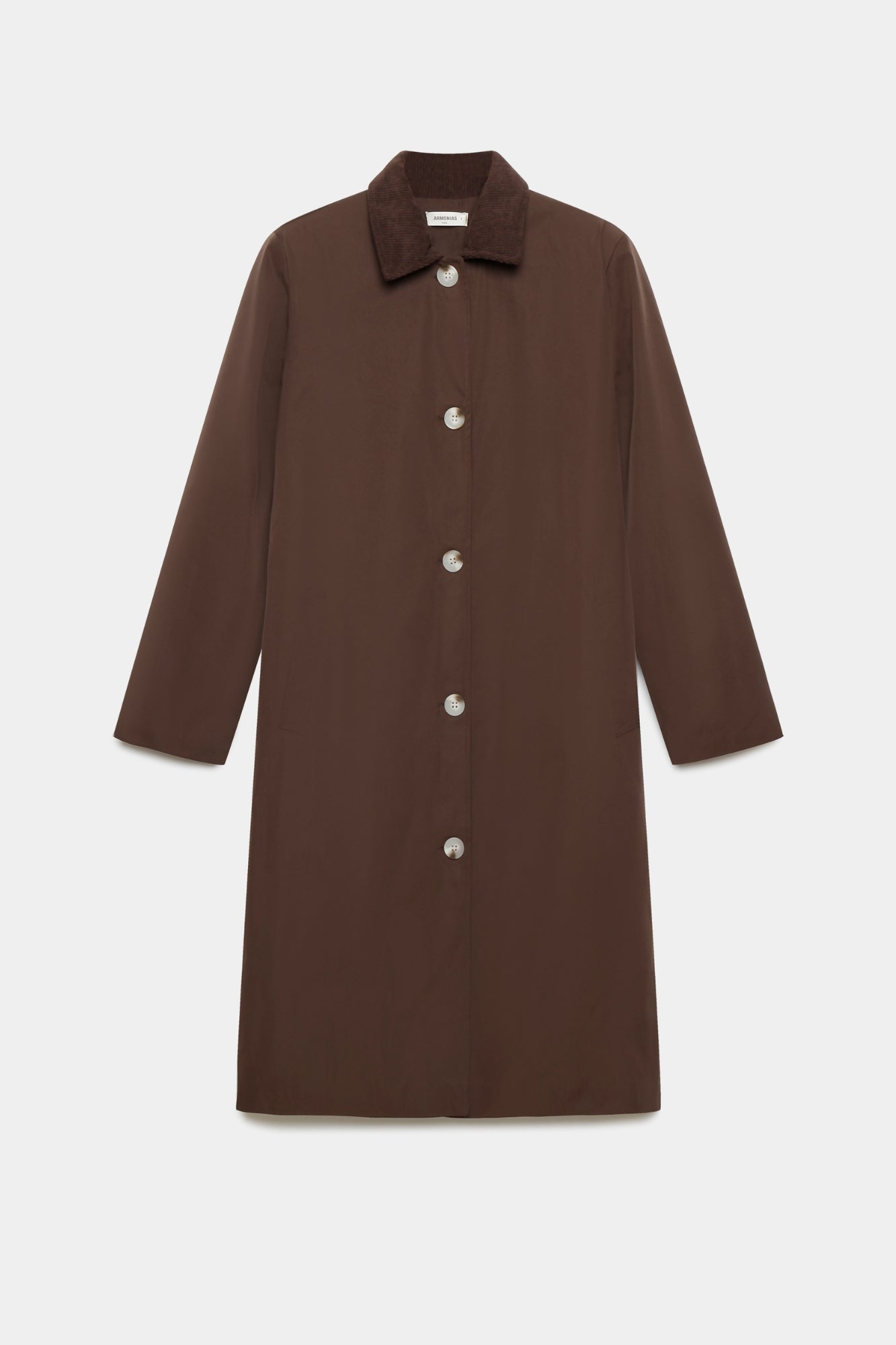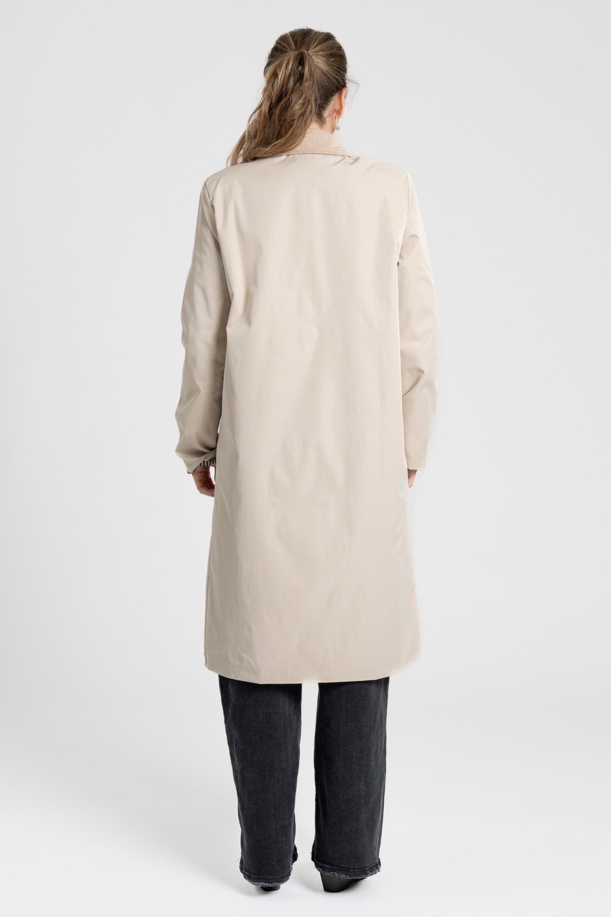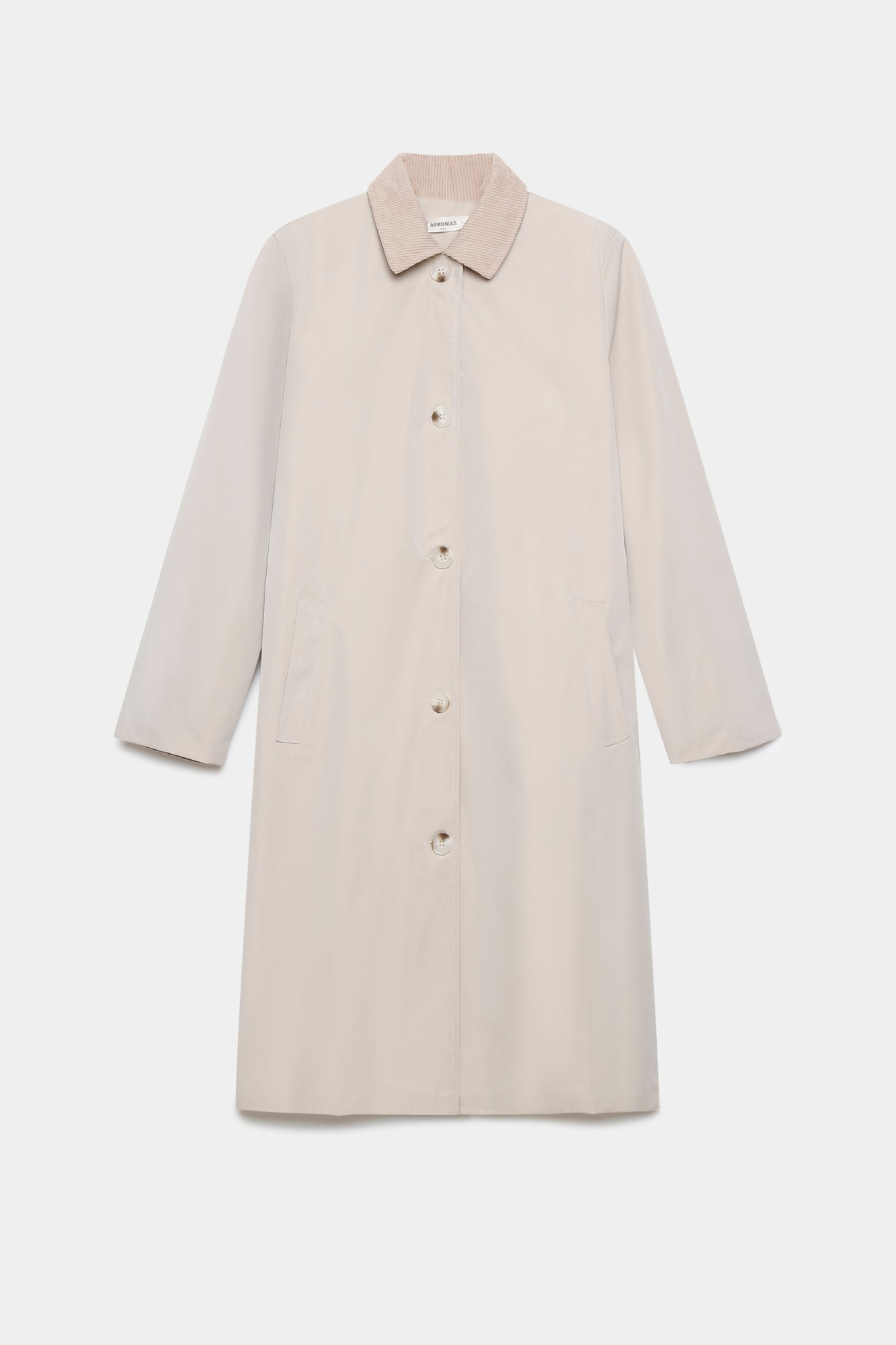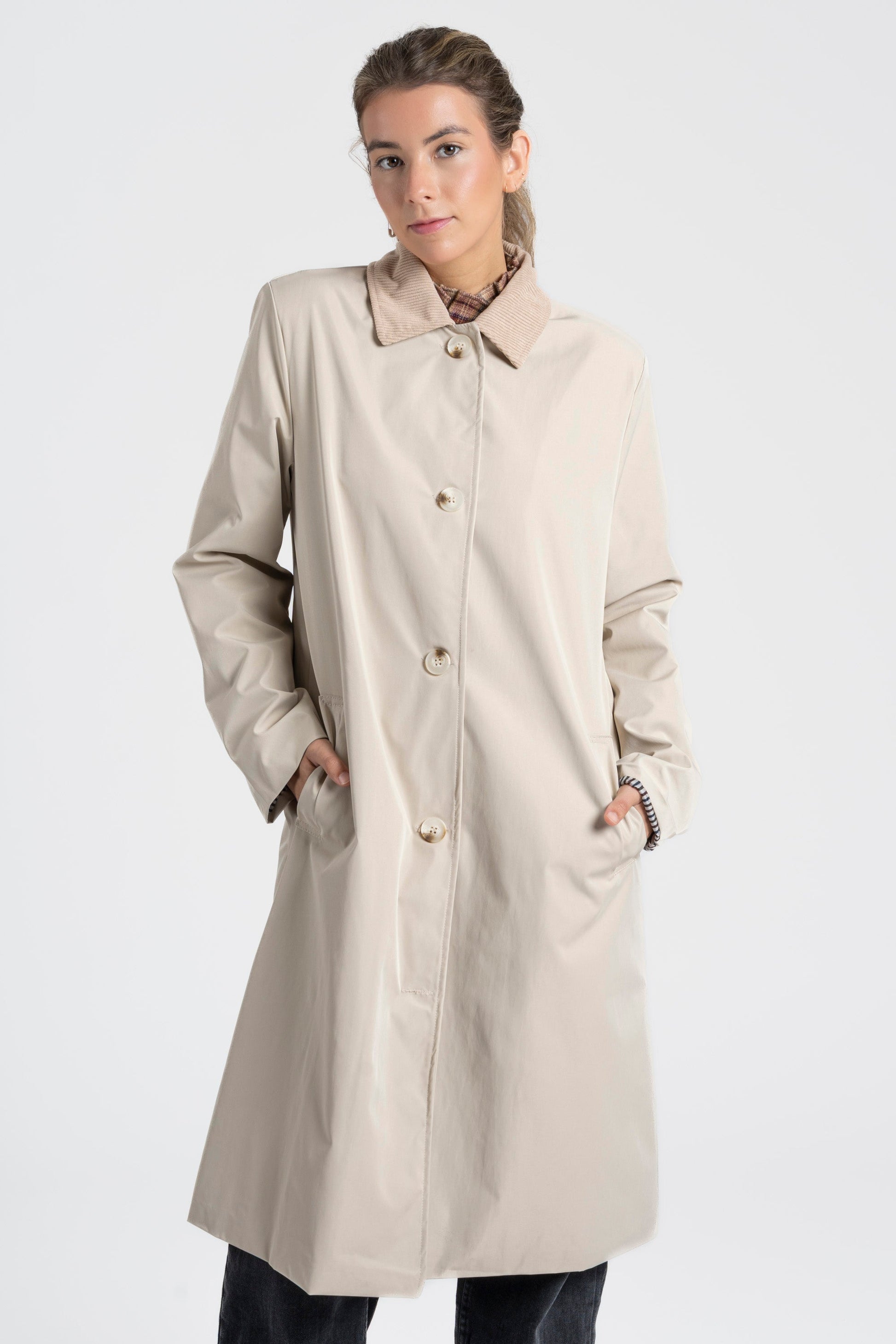 Tejido impermeable. Cuello solapa. Cierre con botones. Forro interior. Bolsillos laterales.