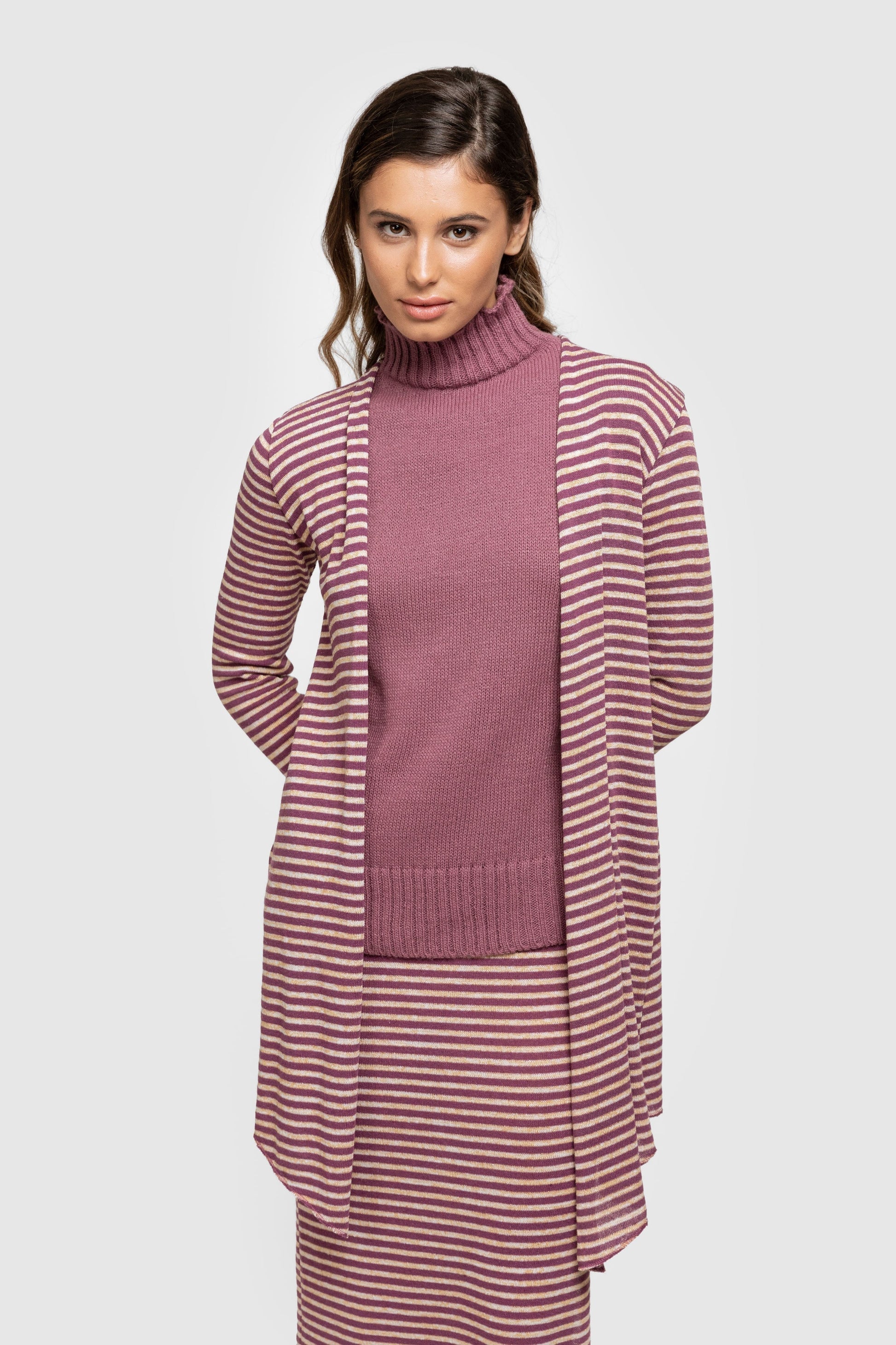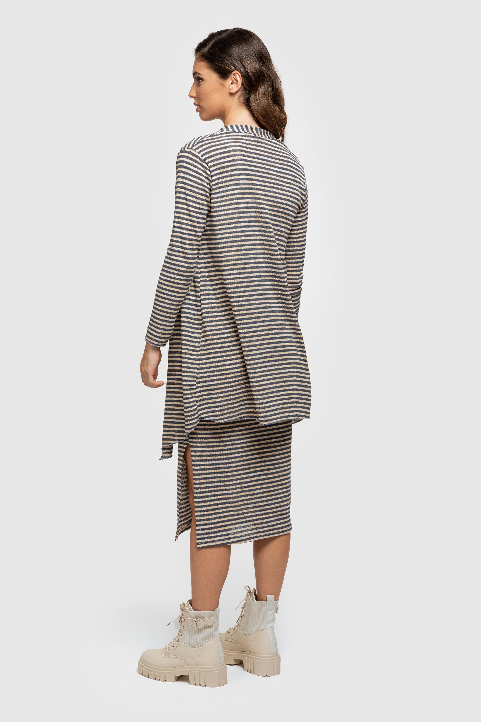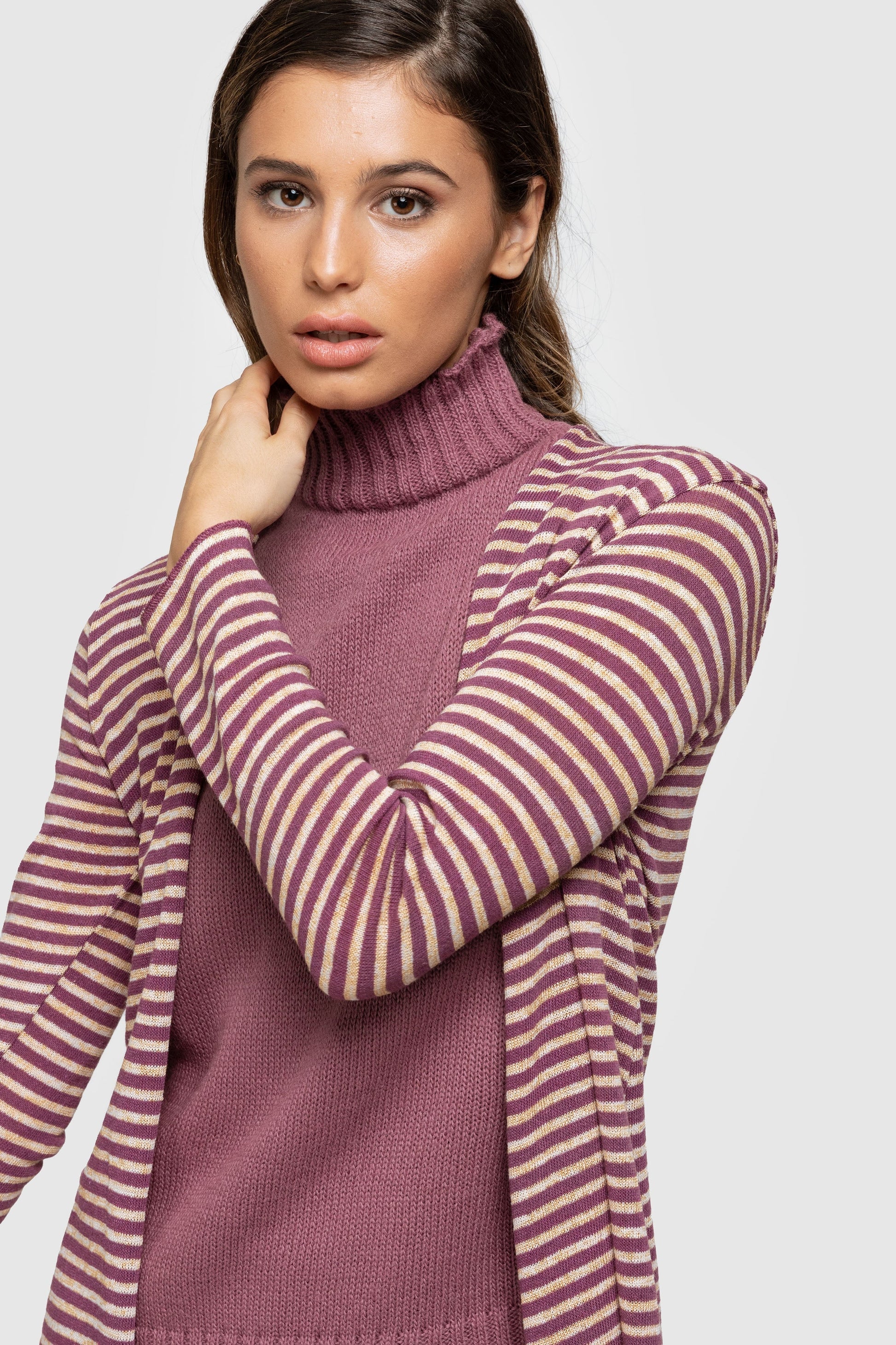 Rebeca larga. Diseño abierto. Tejido estampado. Manga larga. Corte recto. Talla modelo: S. Altura modelo: 1,76 m.
