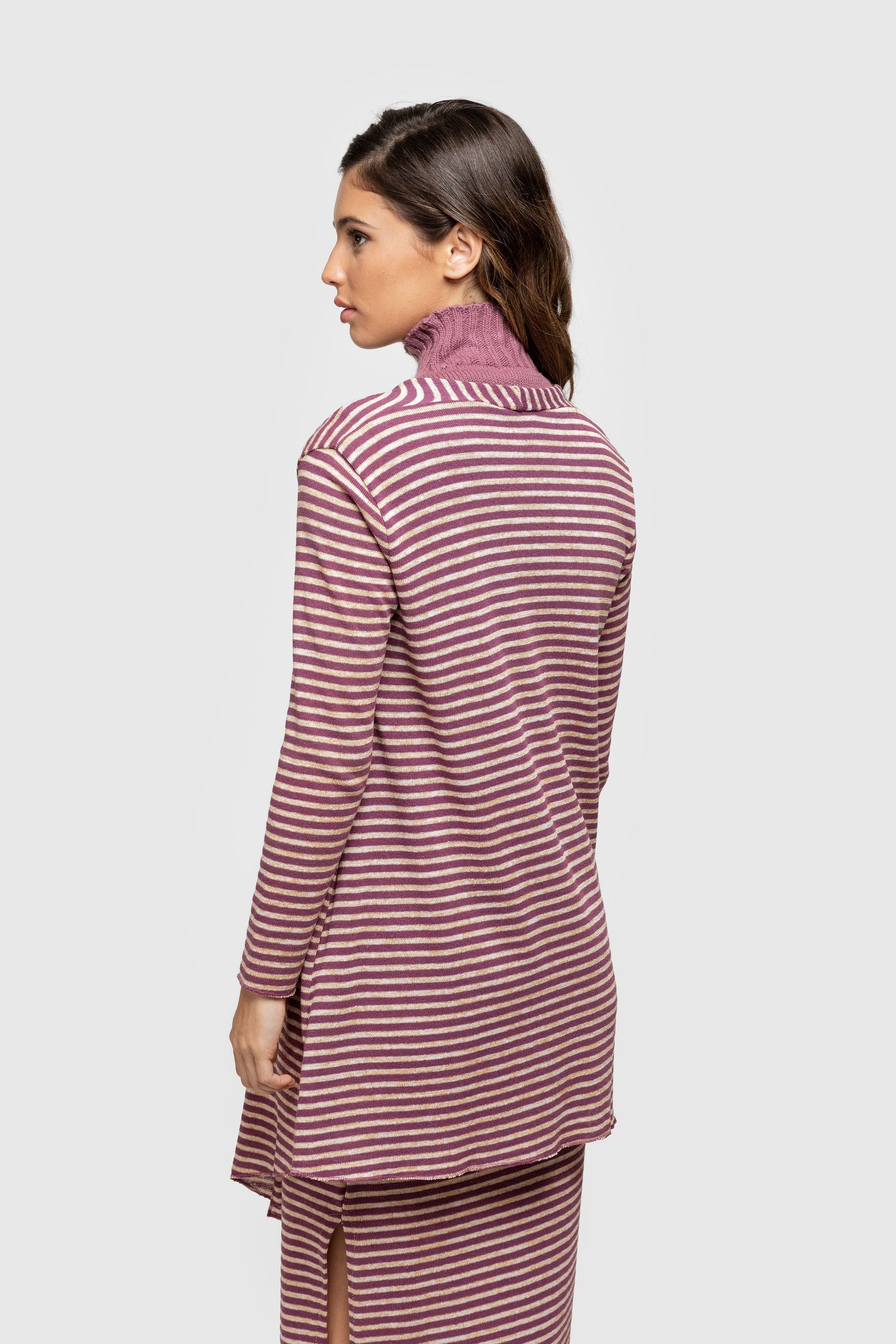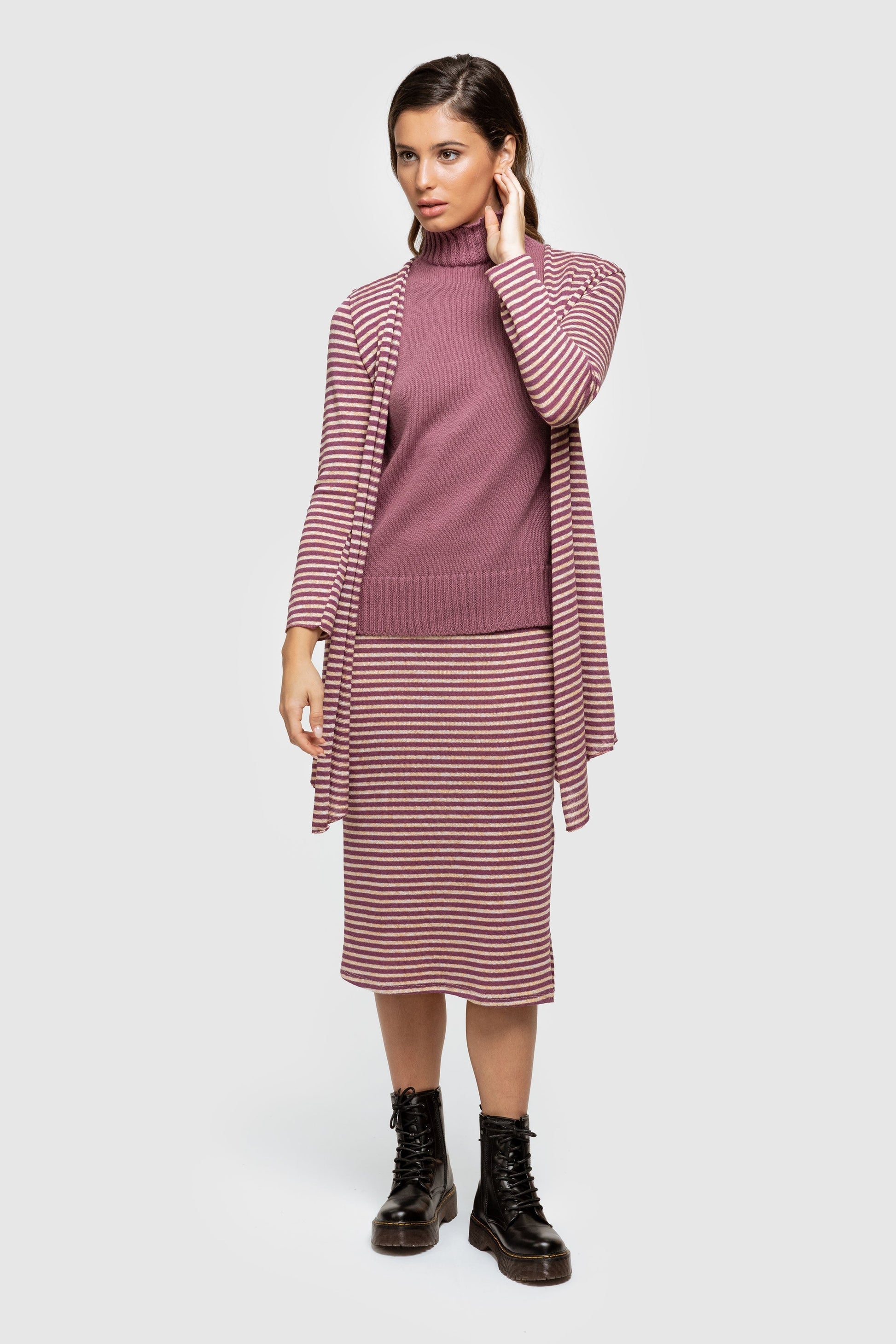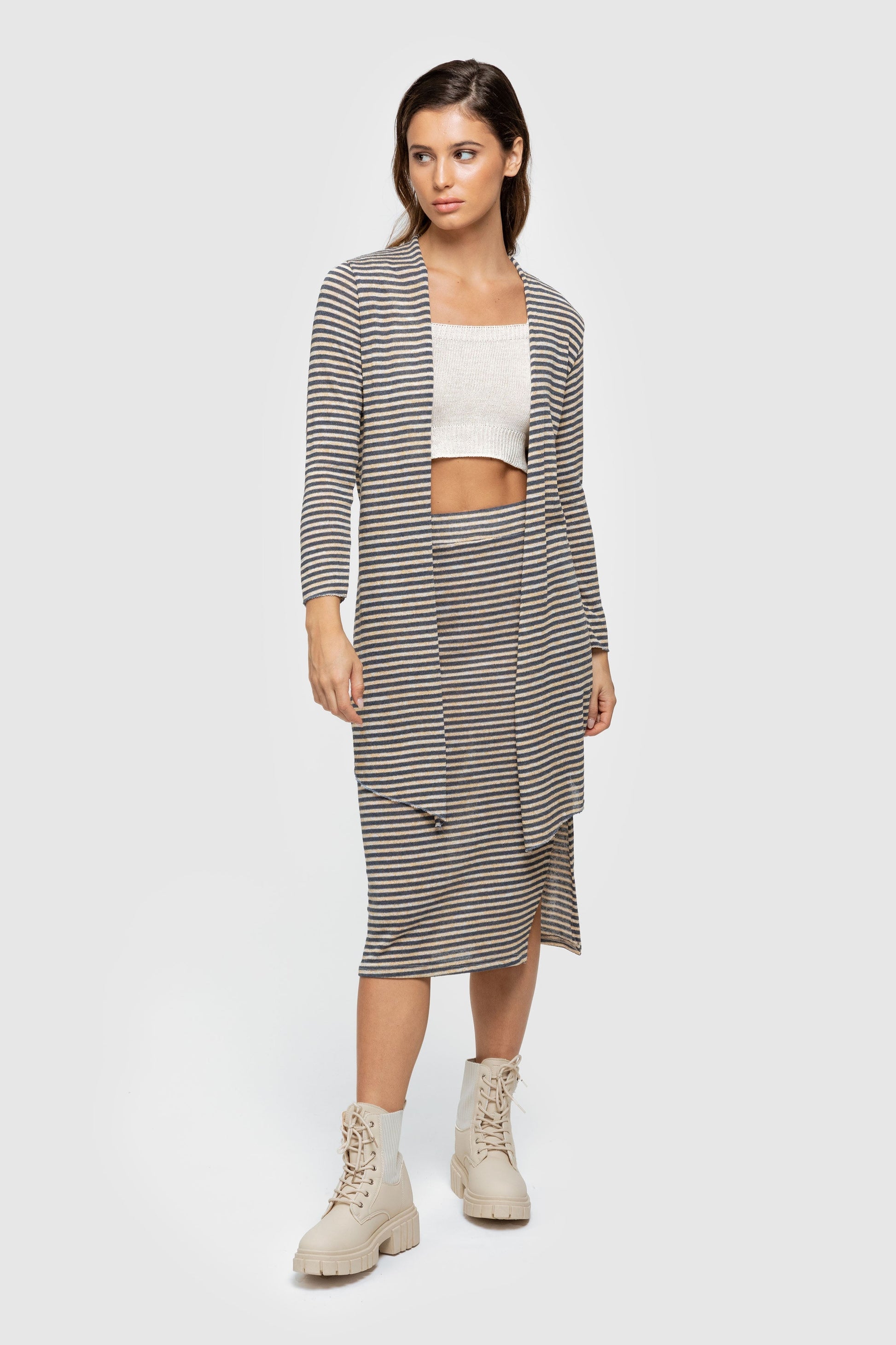 Rebeca larga. Diseño abierto. Tejido estampado. Manga larga. Corte recto. Talla modelo: S. Altura modelo: 1,76 m.