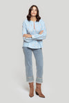 Tejido mezcla de algodón. Estilo tejano vaquero. Diseño Culotte. Diseño recto. Tiro alto. Cinco bolsillos. Cierre de cremallera y botón. Trabillas. Bajo con estampado y strass. Bajo sin rematar. Talla modelo: 36. Altura modelo 1,75 m.