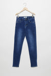 Tejido mezcla de algodón. Tejido estilo tejano vaquero. Tejido elástico. Tiro alto. Push up. Cinco bolsillos. Cierre de cremallera y botón. Trabillas. Talla modelo: 36. Altura modelo: 1,66 m.