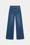 Tejido mezcla de algodón. Tiro medio. Cuatro bolsillos. Cierre cremallera y botón.