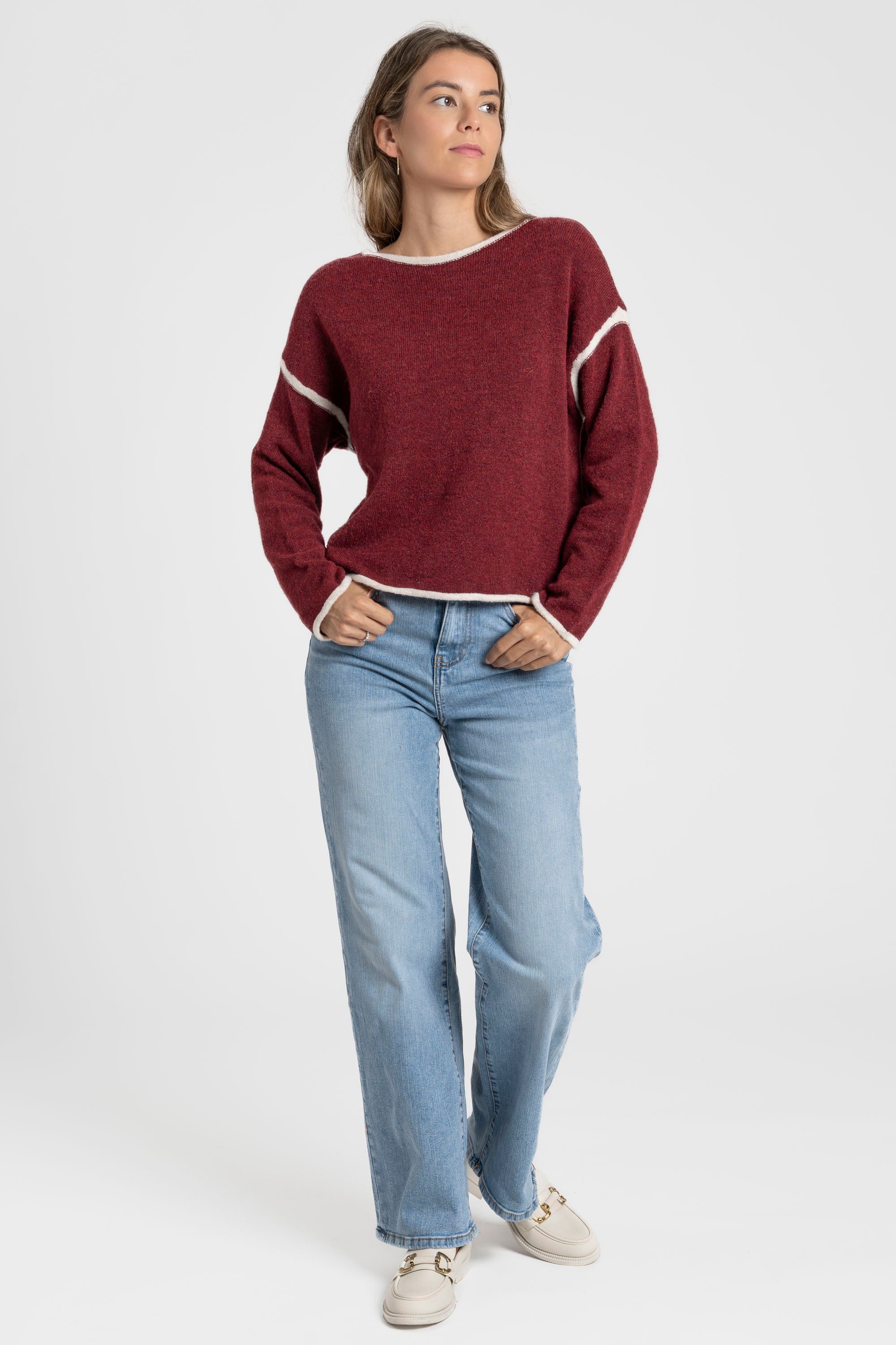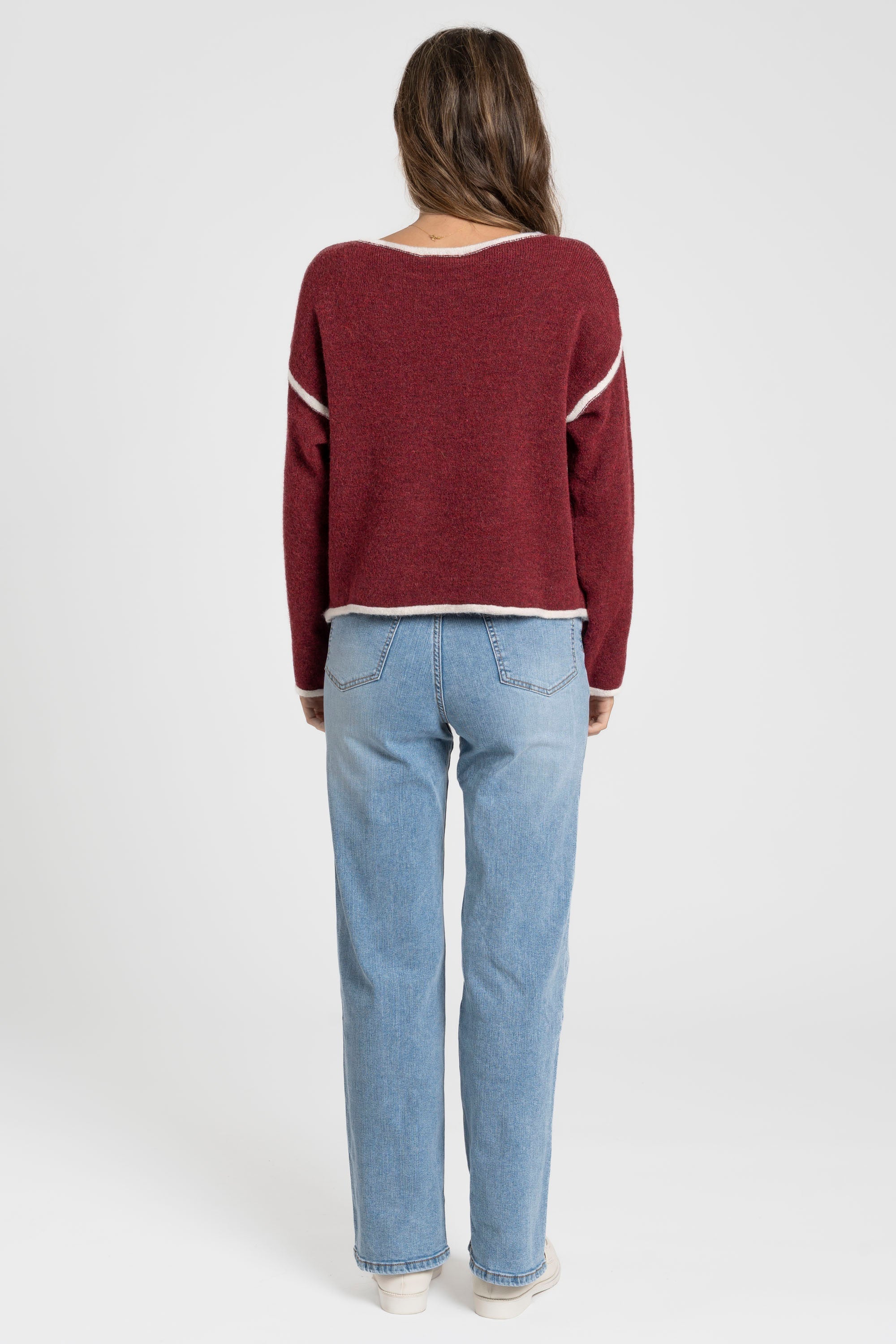Tejido mezcla de algodón. Tejido tejano vaquero. Tiro alto. Recto. Cinco bolsillos. Cierre de cremallera y botón. Trabillas.
