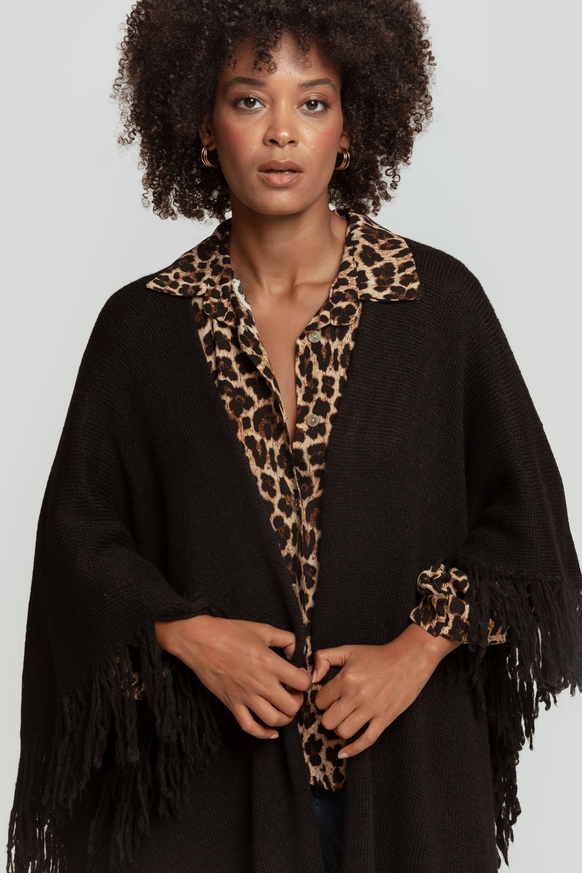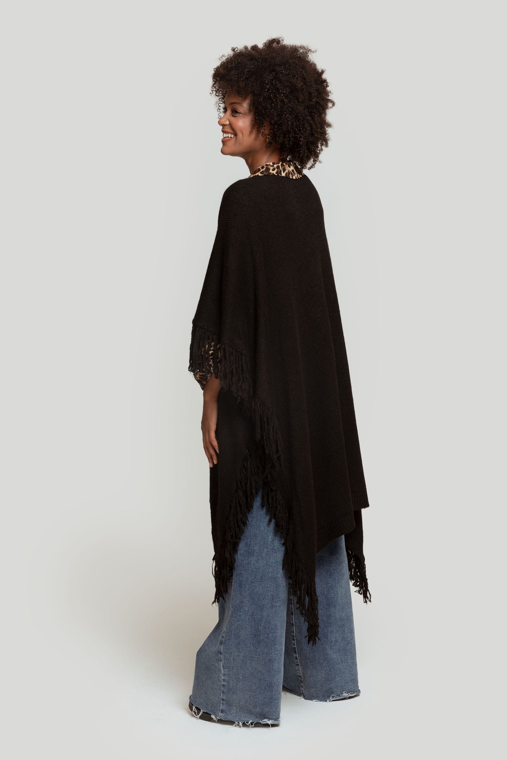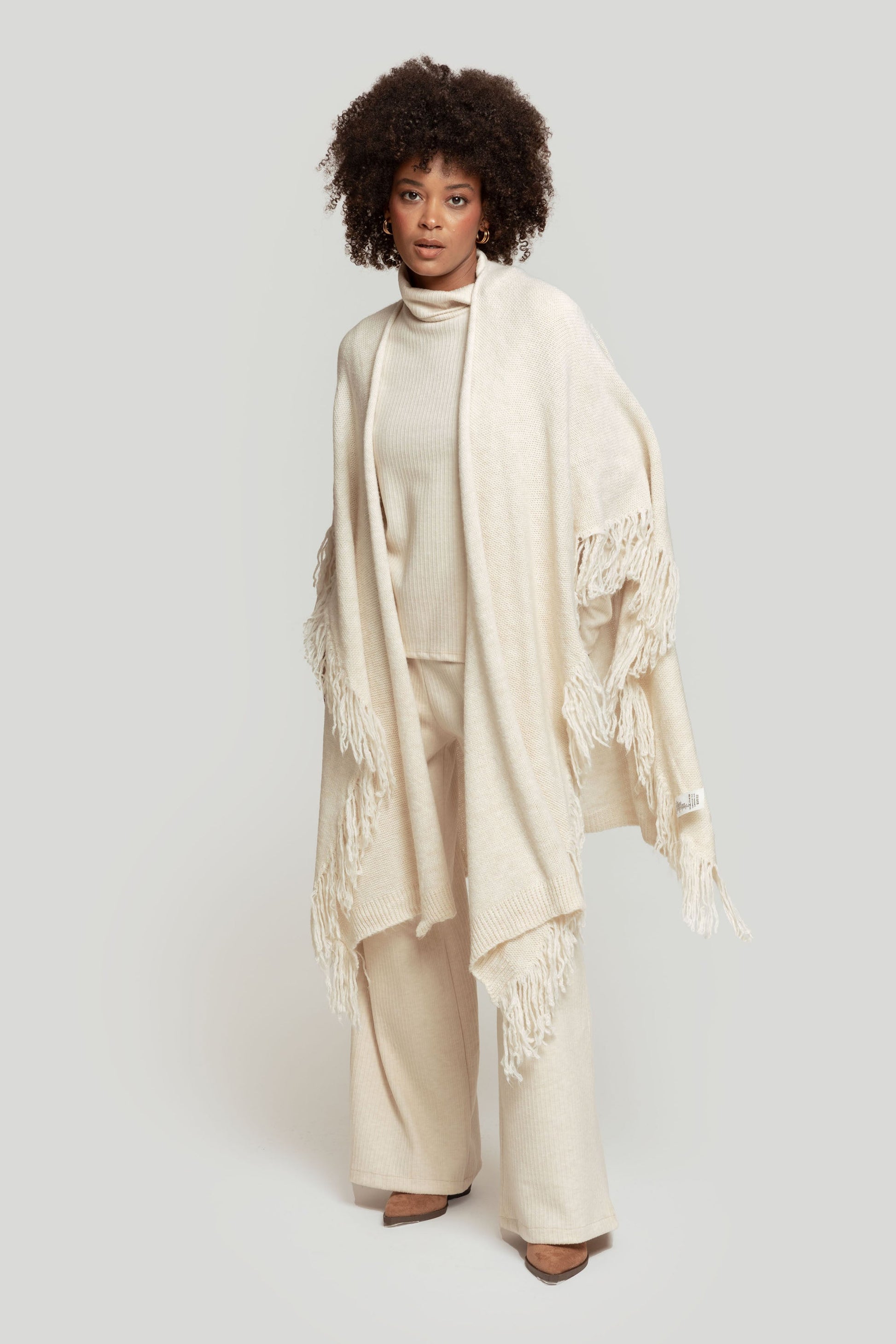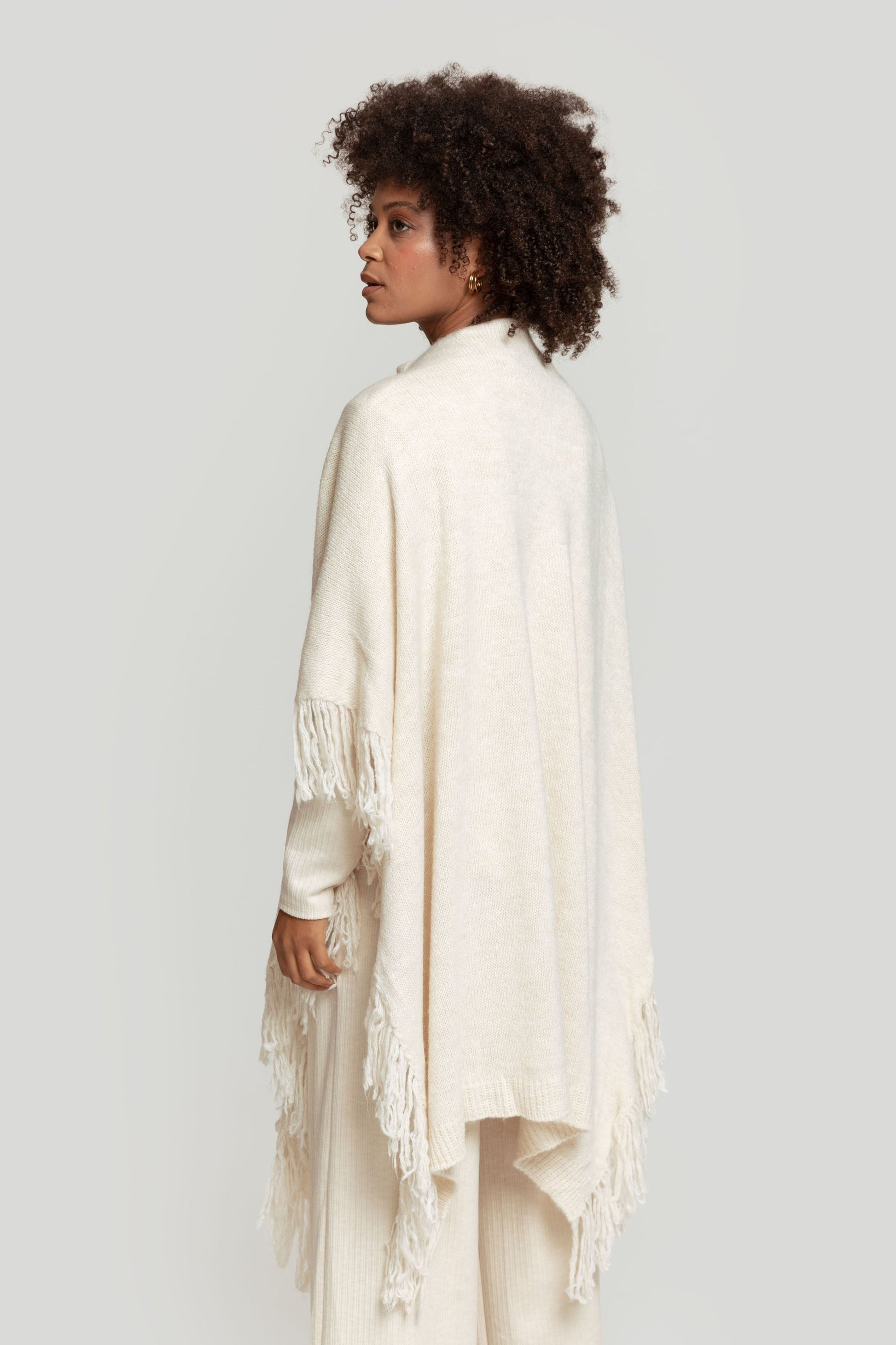 Tejido de punto. Diseño tipo cárdigan. Diseño largo. Sin mangas. Acabado flecos. Talla modelo: S. Altura modelo: 1,66 m.