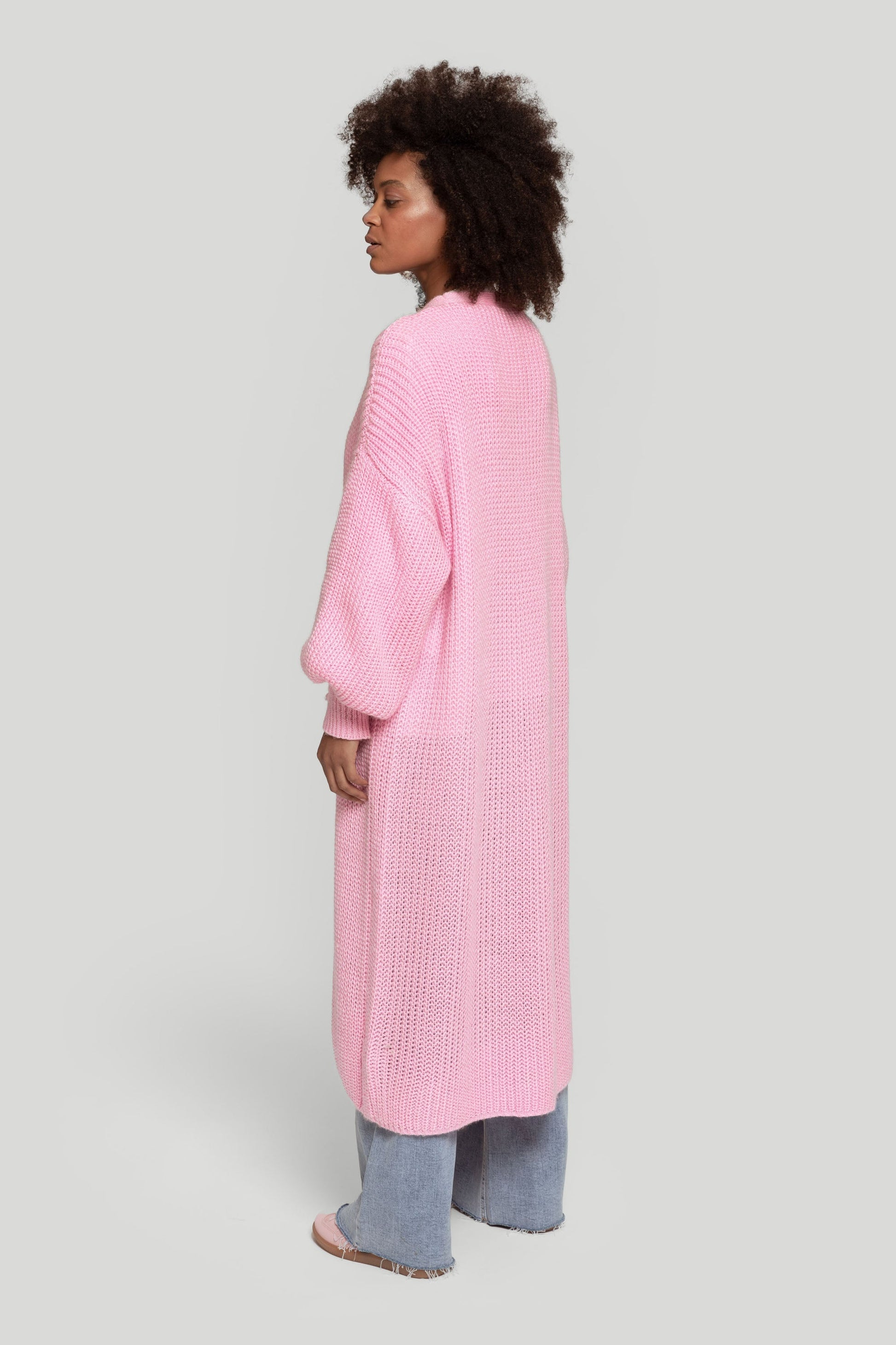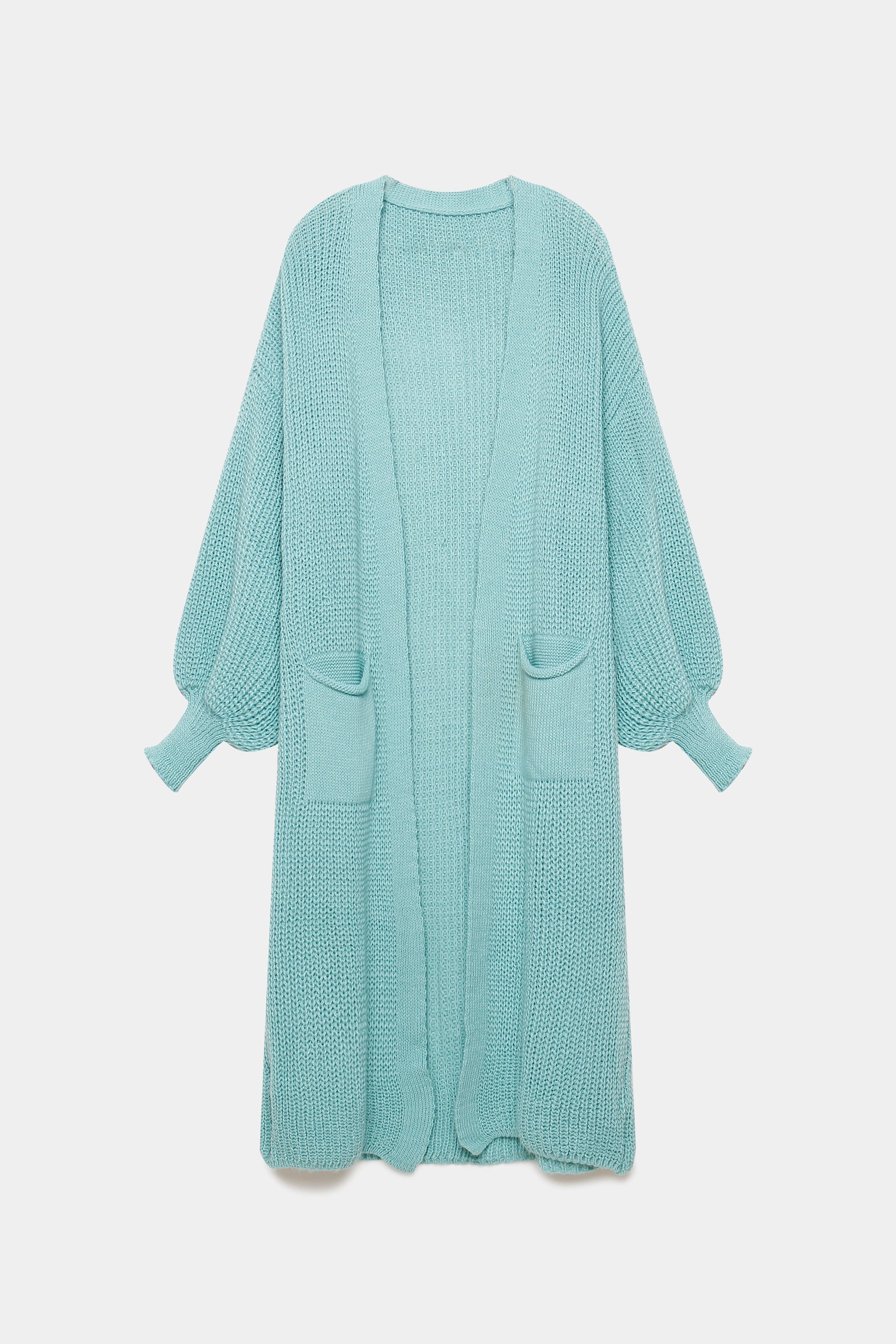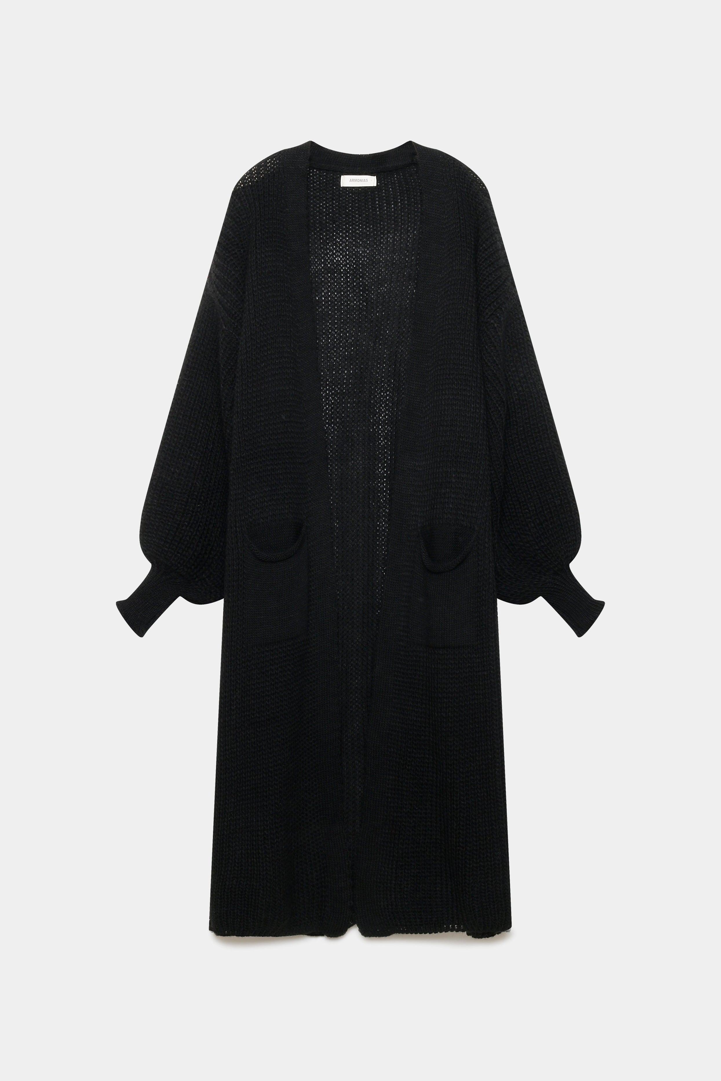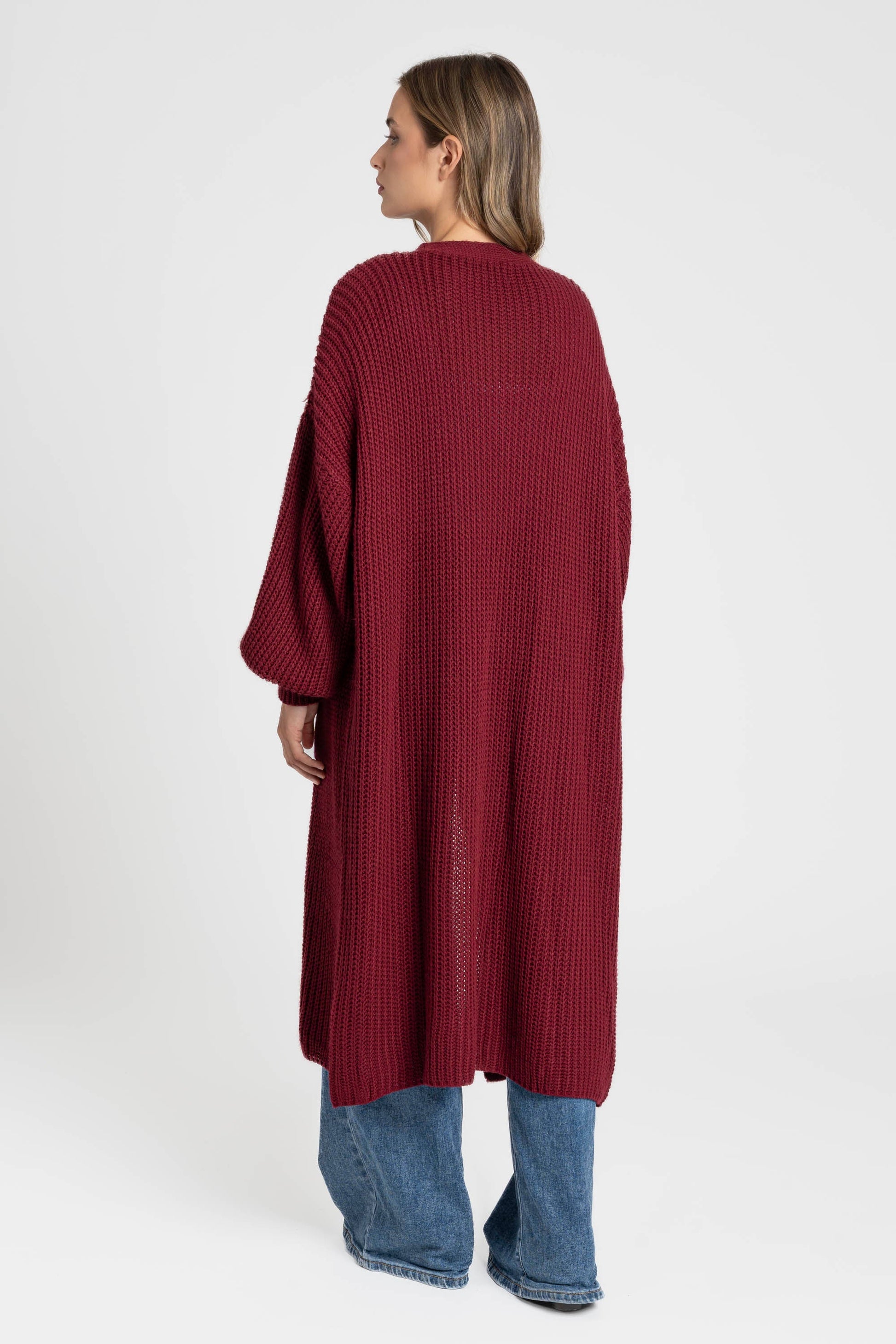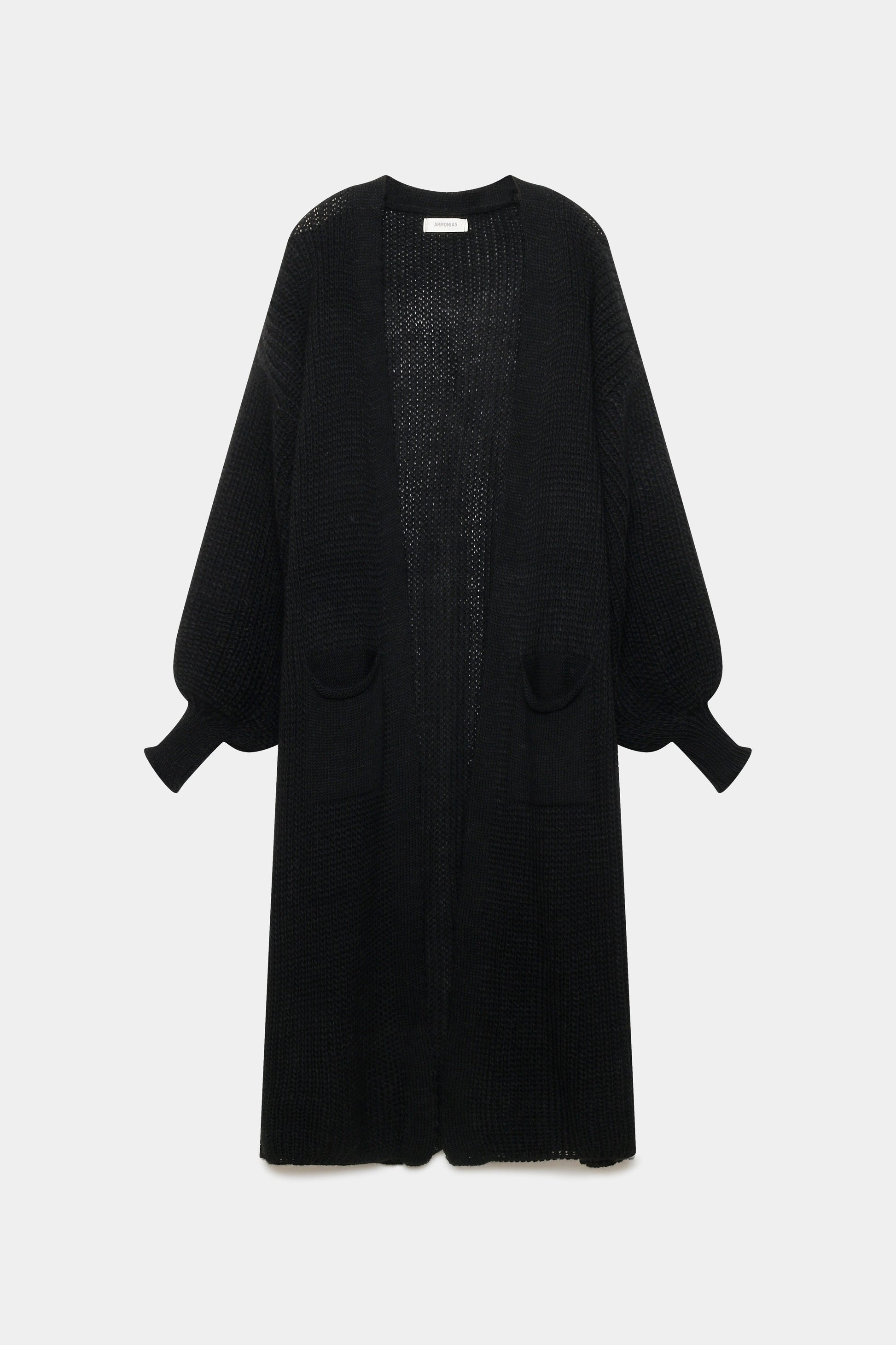 Tejido de punto. Diseño recto. Diseño largo. Cuello pico. Manga larga. Dos bolsillos. Sin cierre.