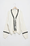 Tejido de punto. Punto medio. Diseño con trama a contraste. Cuello pico. Manga larga. Hombros caídos. Cierre de lazos. Acabado lana. Talla única. Altura modelo: 1,66 m.