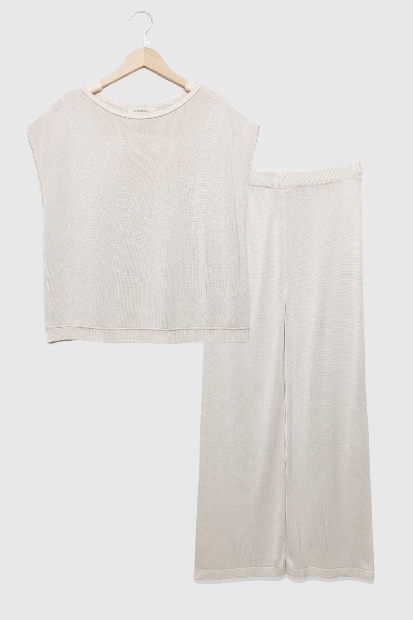 Conjunto de chaleco y pantalón. Disponible en varios colores. Chaleco de punto fino. cuello redondo. Manga sisa. Pantalón tejido de punto fino. Diseño recto. Tiro alto. Cintura elástica.