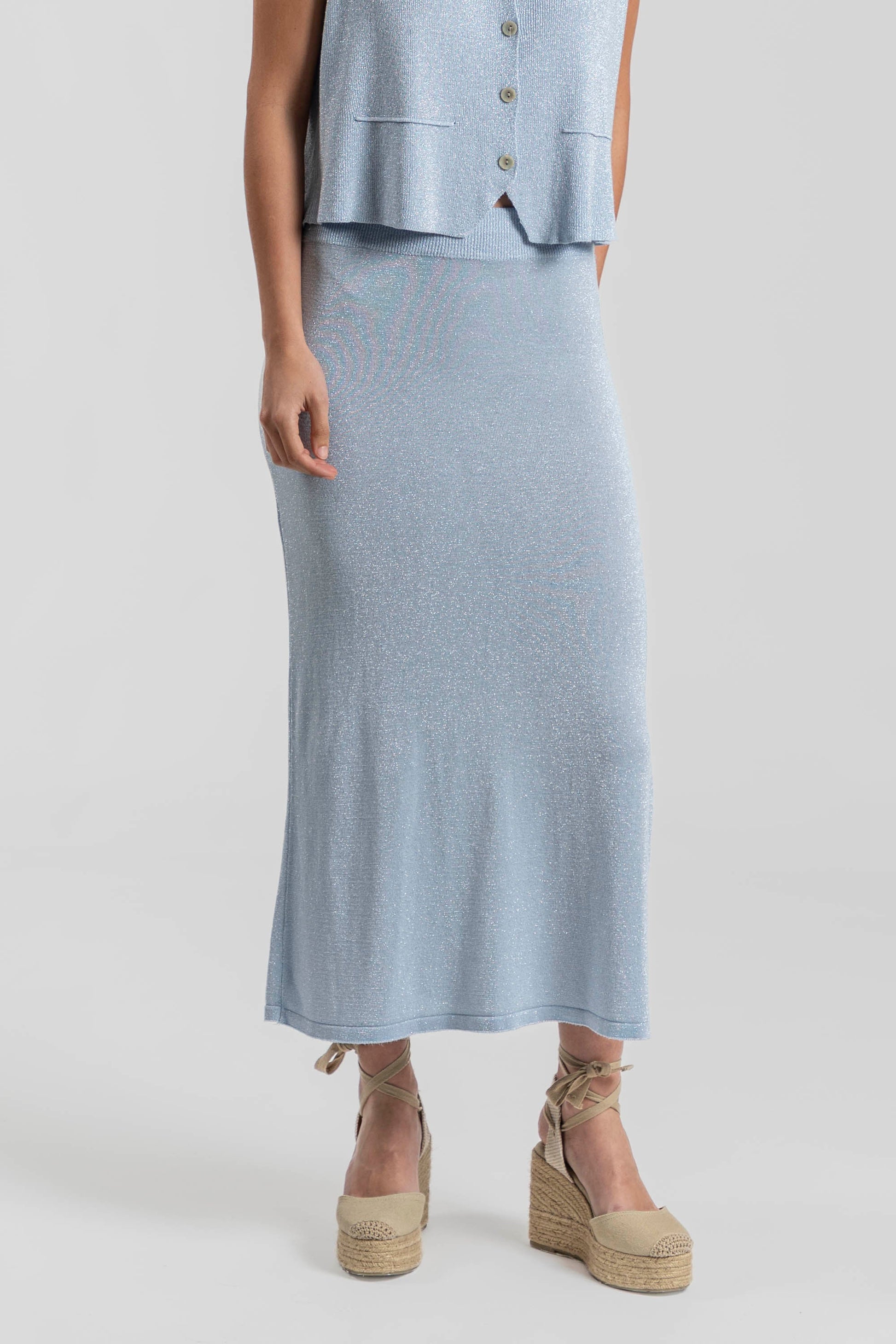 Falda tejido de brillo. Tejido de punto fino. Diseño recto. Diseño básico. Cintura elástica.