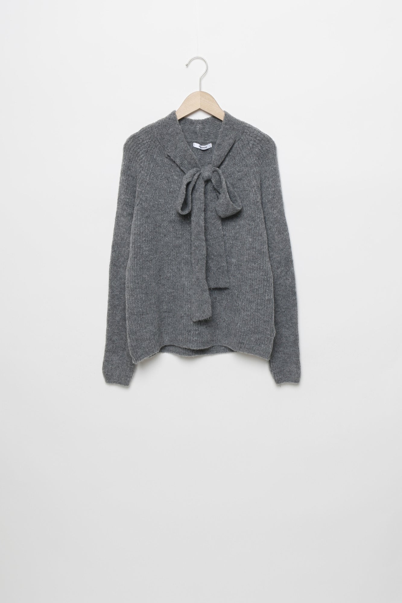 Tejido de punto. Tejido con lana. Diseño recto. Diseño lazada. Cuello alto. Hombros caídos. Manga larga. Talla modelo: S Altura modelo: 1,75 m.