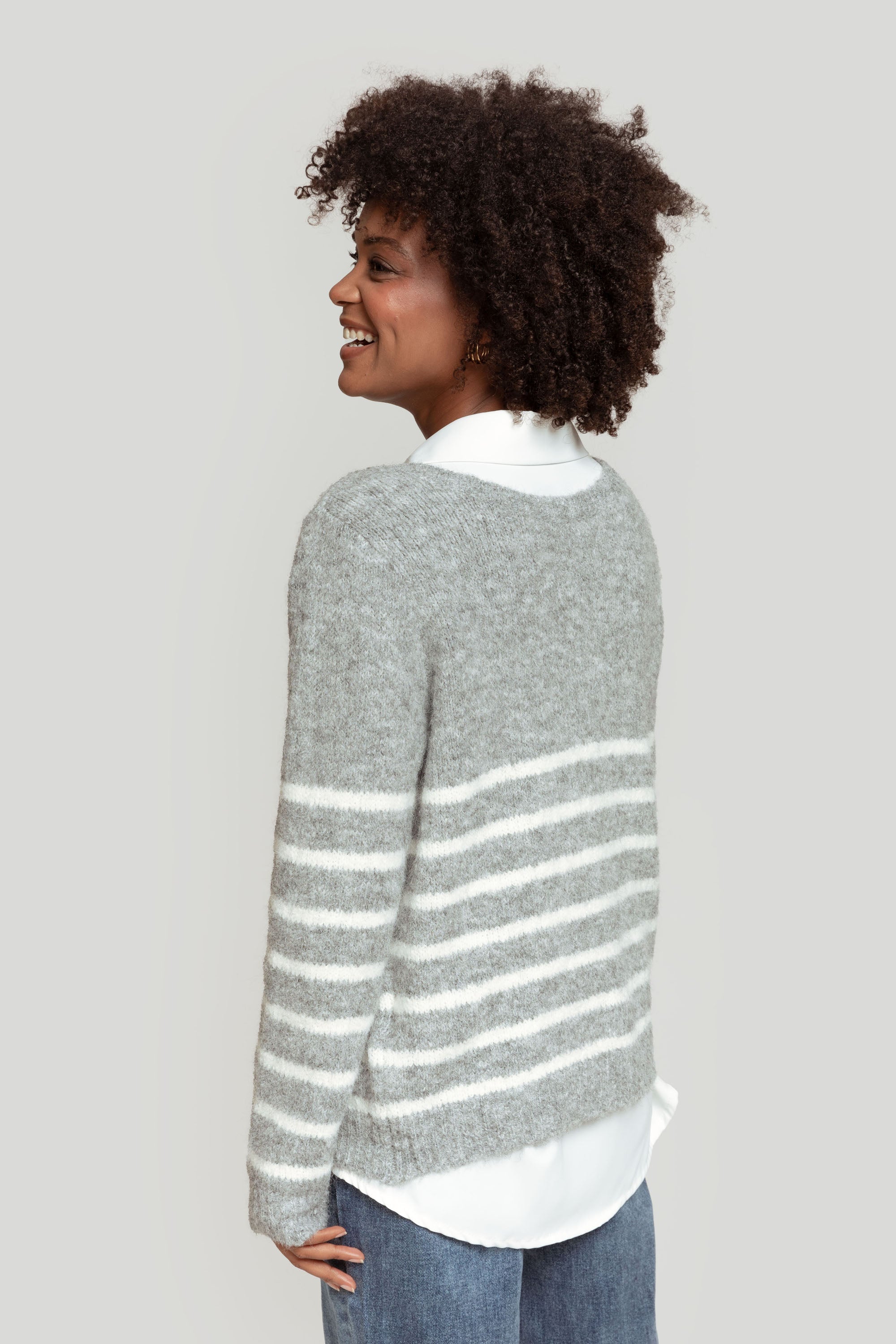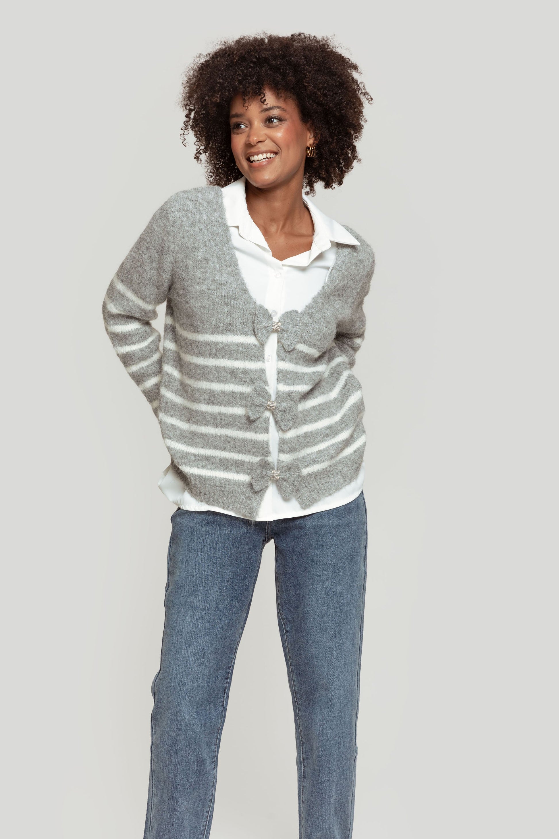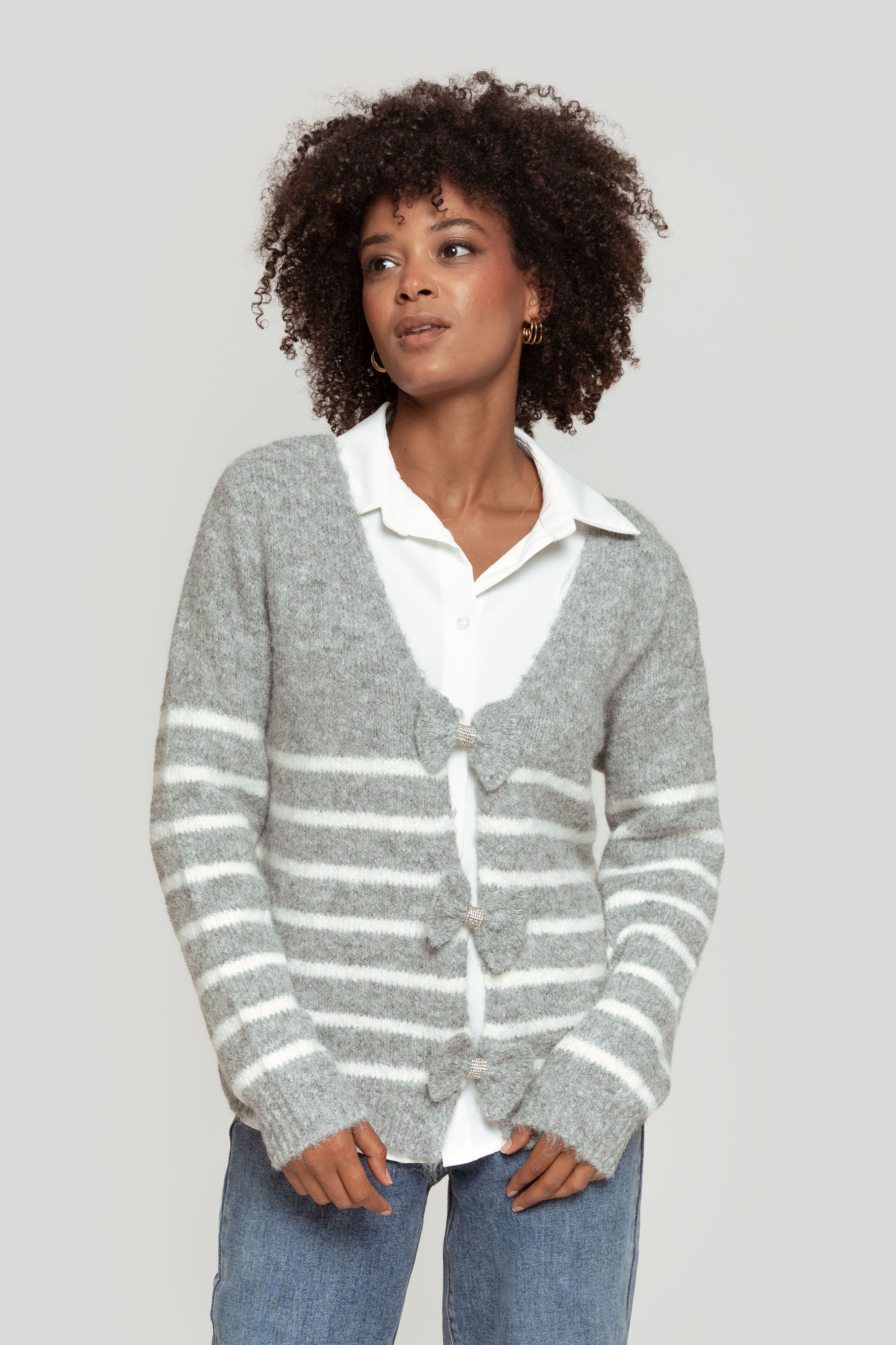 Tejido de punto. Punto medio. Diseño estampado. Diseño abertura frontal. Diseño recto. Cuello pico. Manga larga. Acabado lana. Lazos decorativos. Talla única. Altura modelo: 1,66 m.