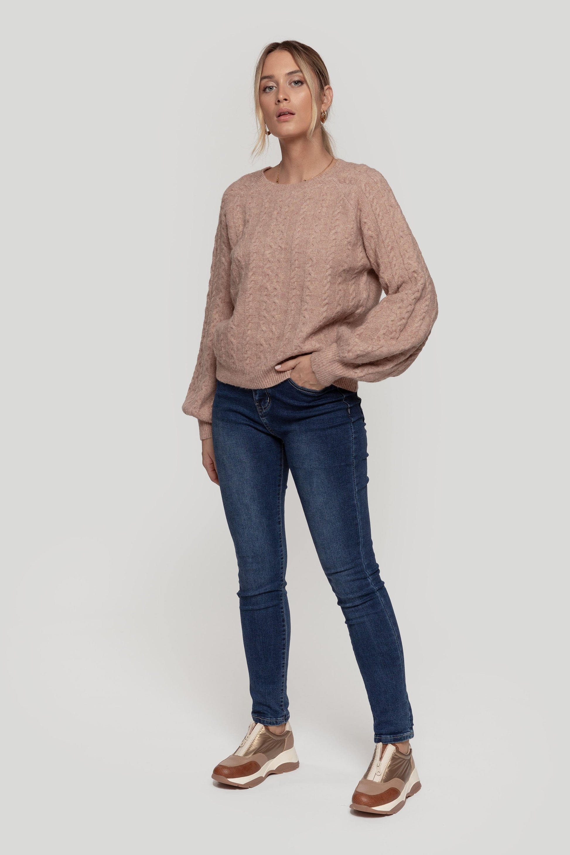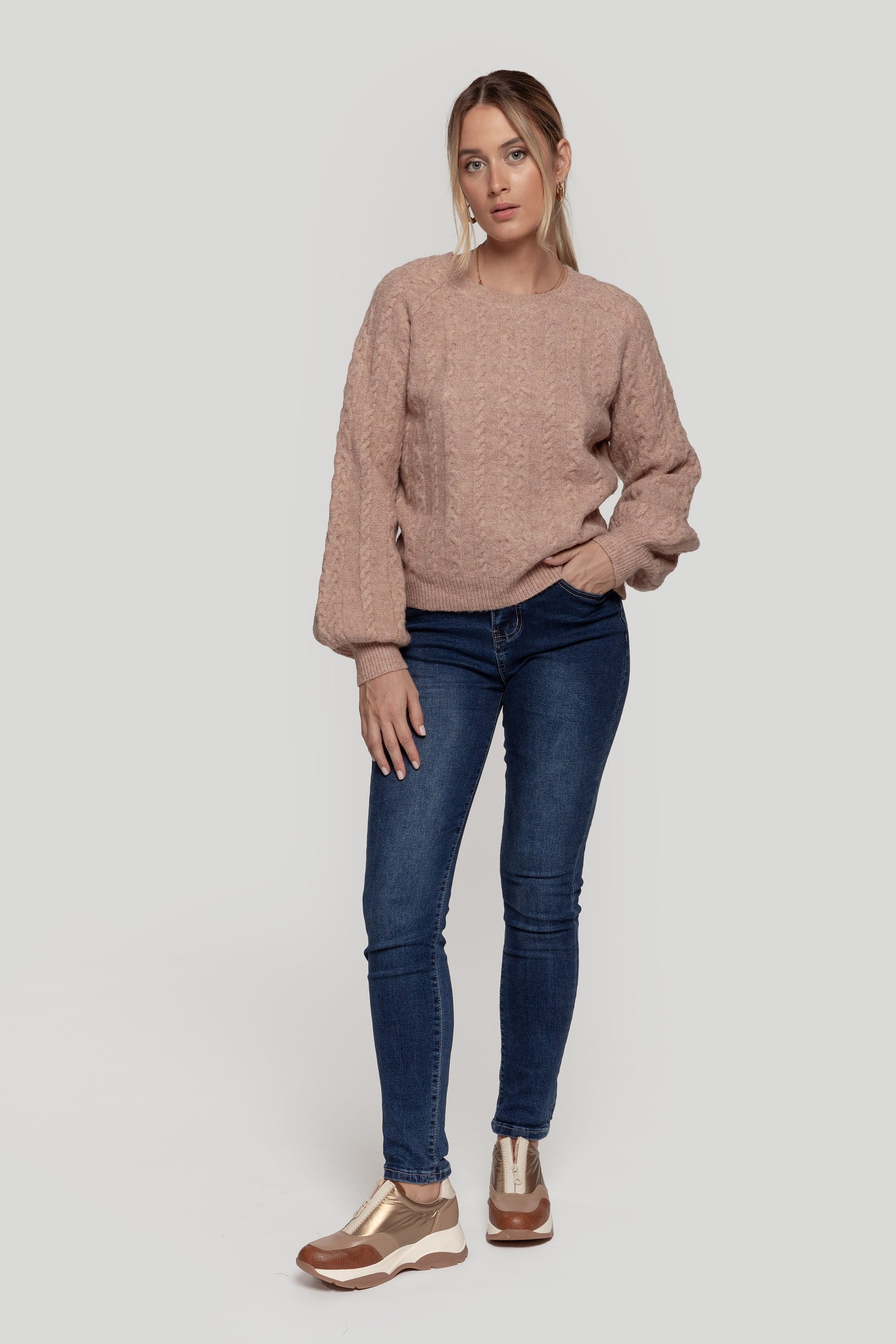 Tejido de punto. Punto ochos. Diseño recto. Diseño cropped. Cuello redondo. Manga larga. Terminaciones en rib. Talla única. Altura modelo 1,66 m