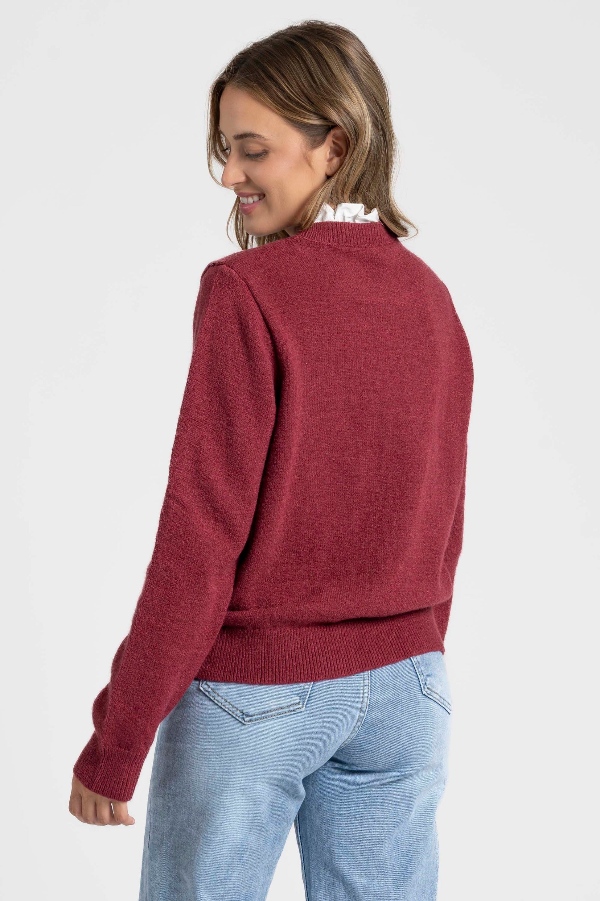 Cuello redondo subido. Efecto doble. Manga larga. Oso efecto 3D.