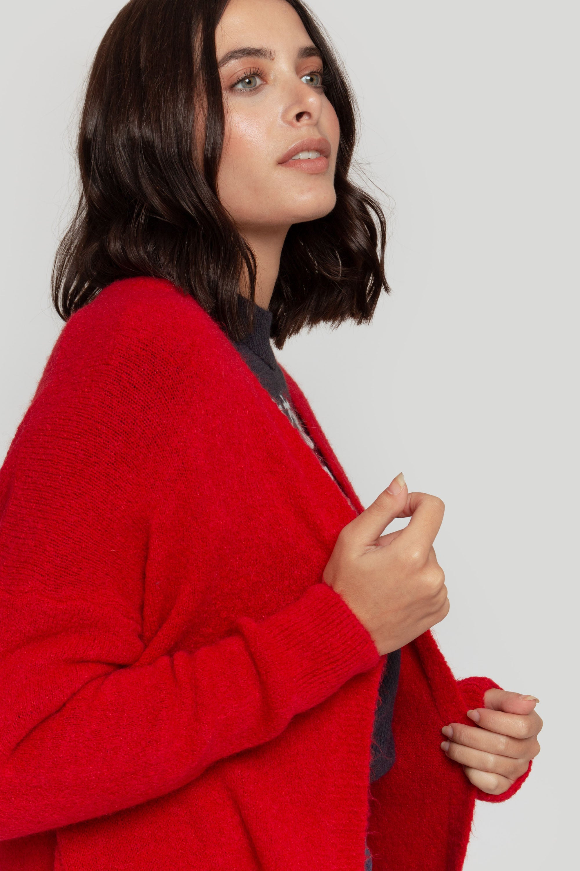 Tejido de punto. Diseño largo. Diseño recto. Manga larga. Acabado pelitos. Terminaciones en rib. Talla modelo: S Altura modelo: 1,66 m.
