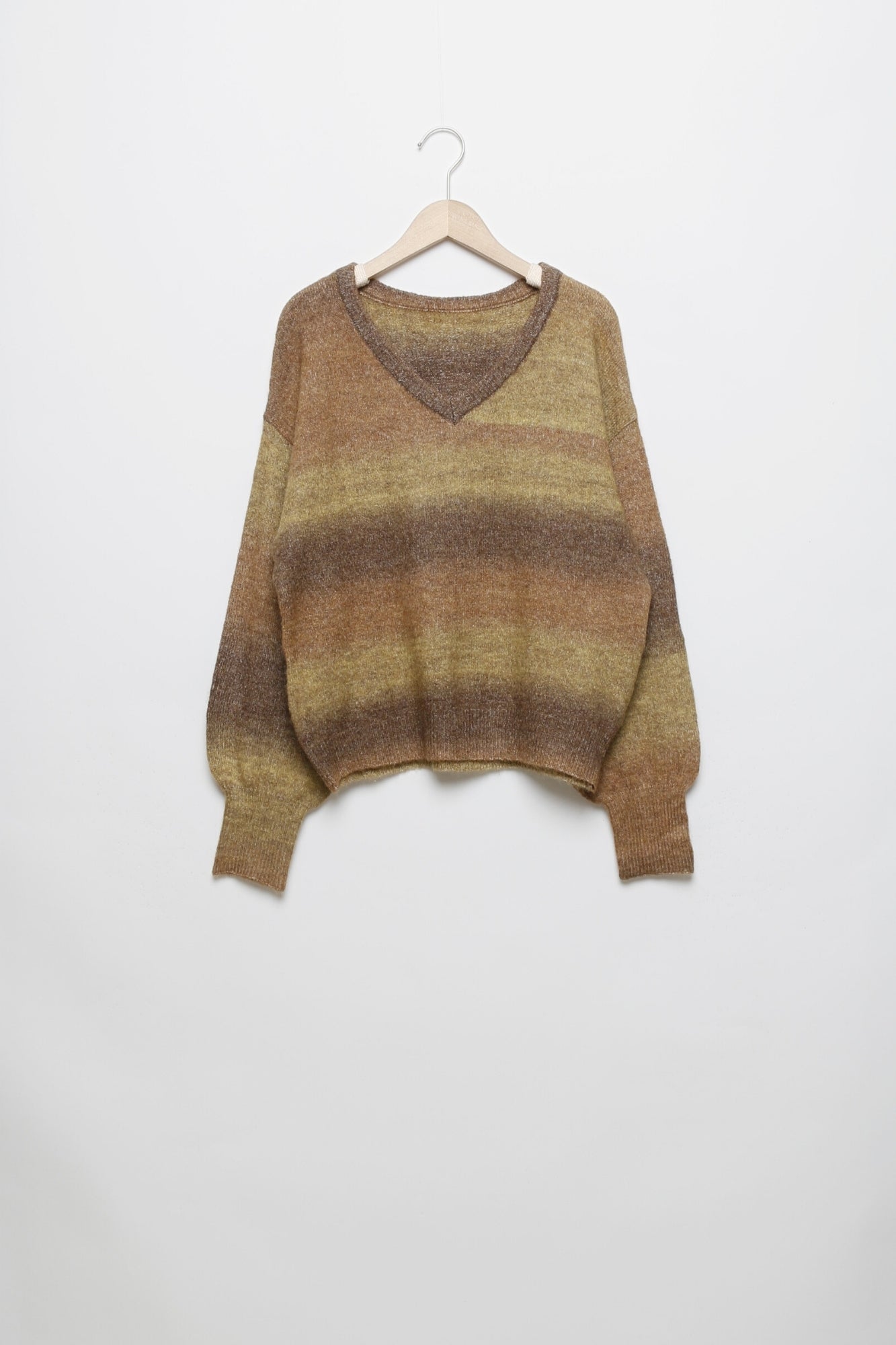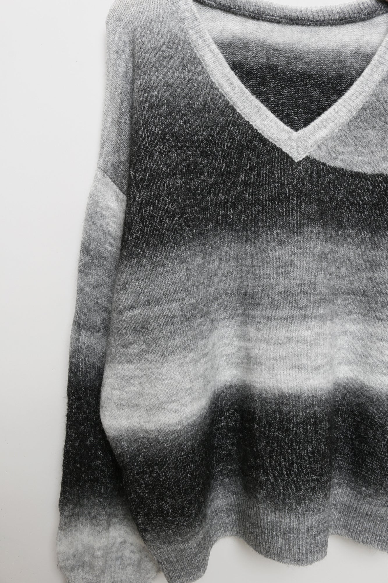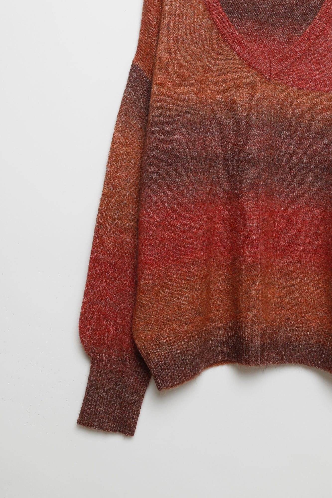 Tejido de punto. Diseño estampado. Diseño recto. Cuello pico. Manga larga. Hombros caídos. Terminaciones en rib. Talla única.