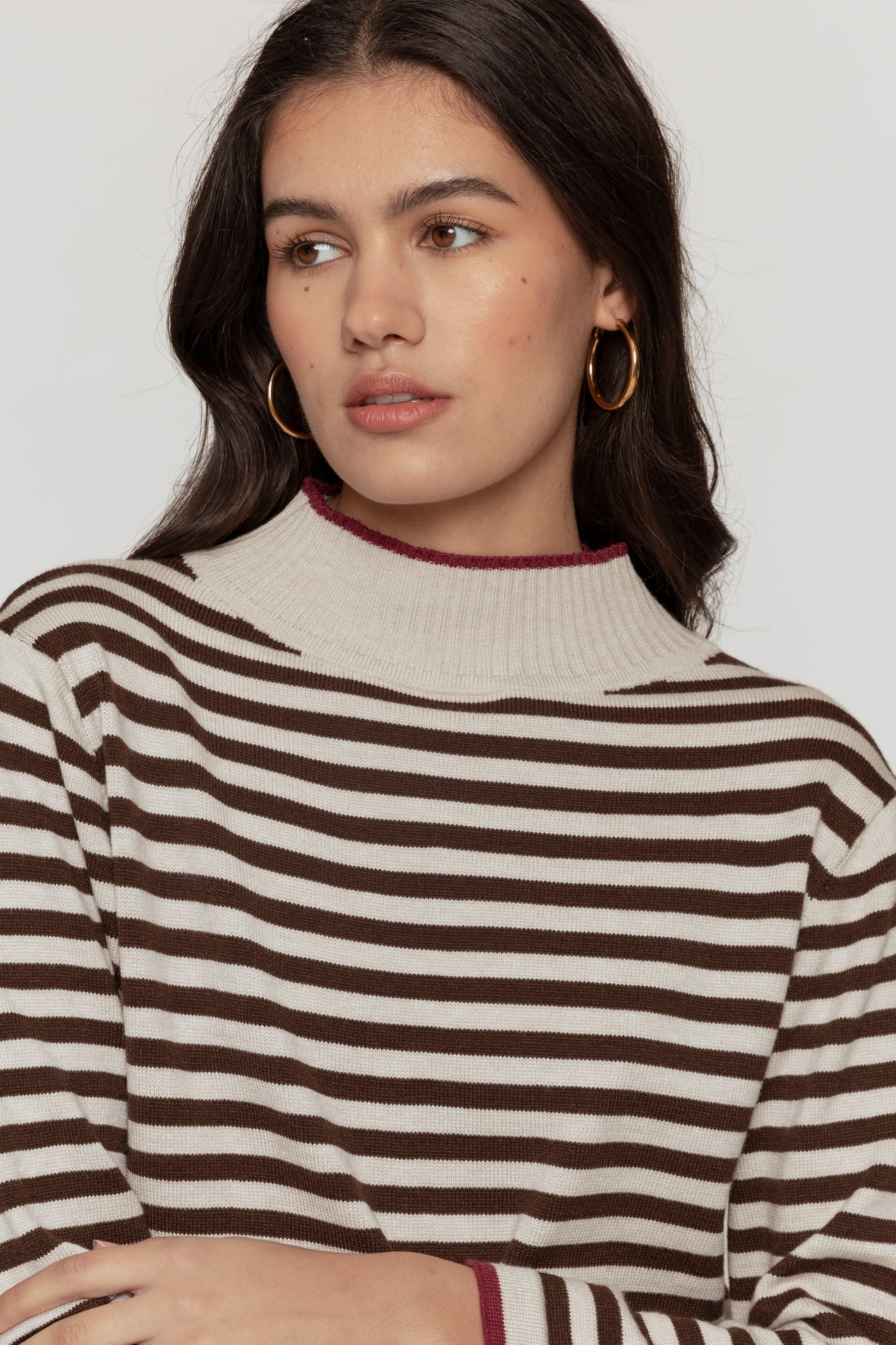Tejido de punto. Diseño estampado. Diseño recto. Cuello perkins. Manga larga. Hombros caídos. Terminaciones en rib. Talla modelo: S. Altura modelo: 1.70 m.